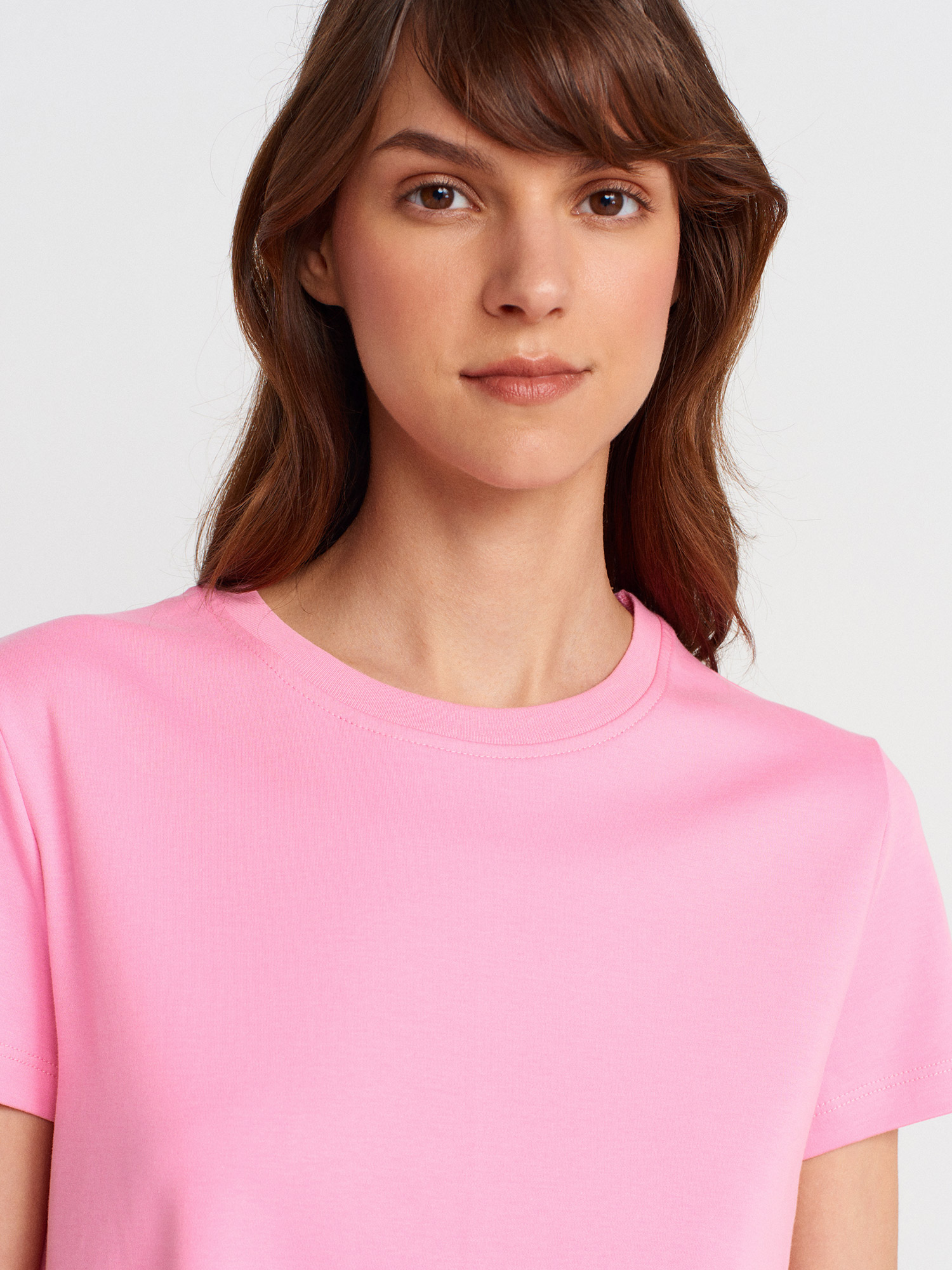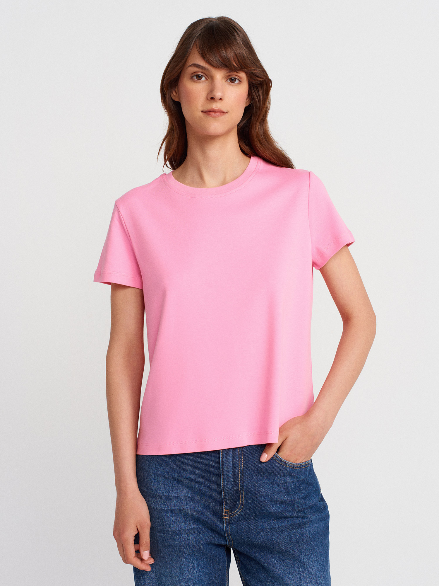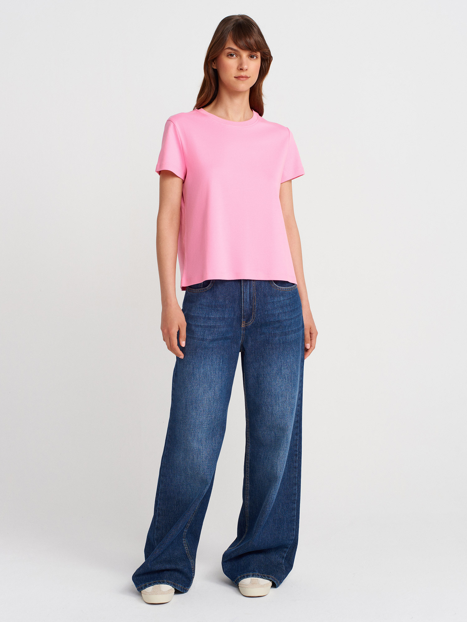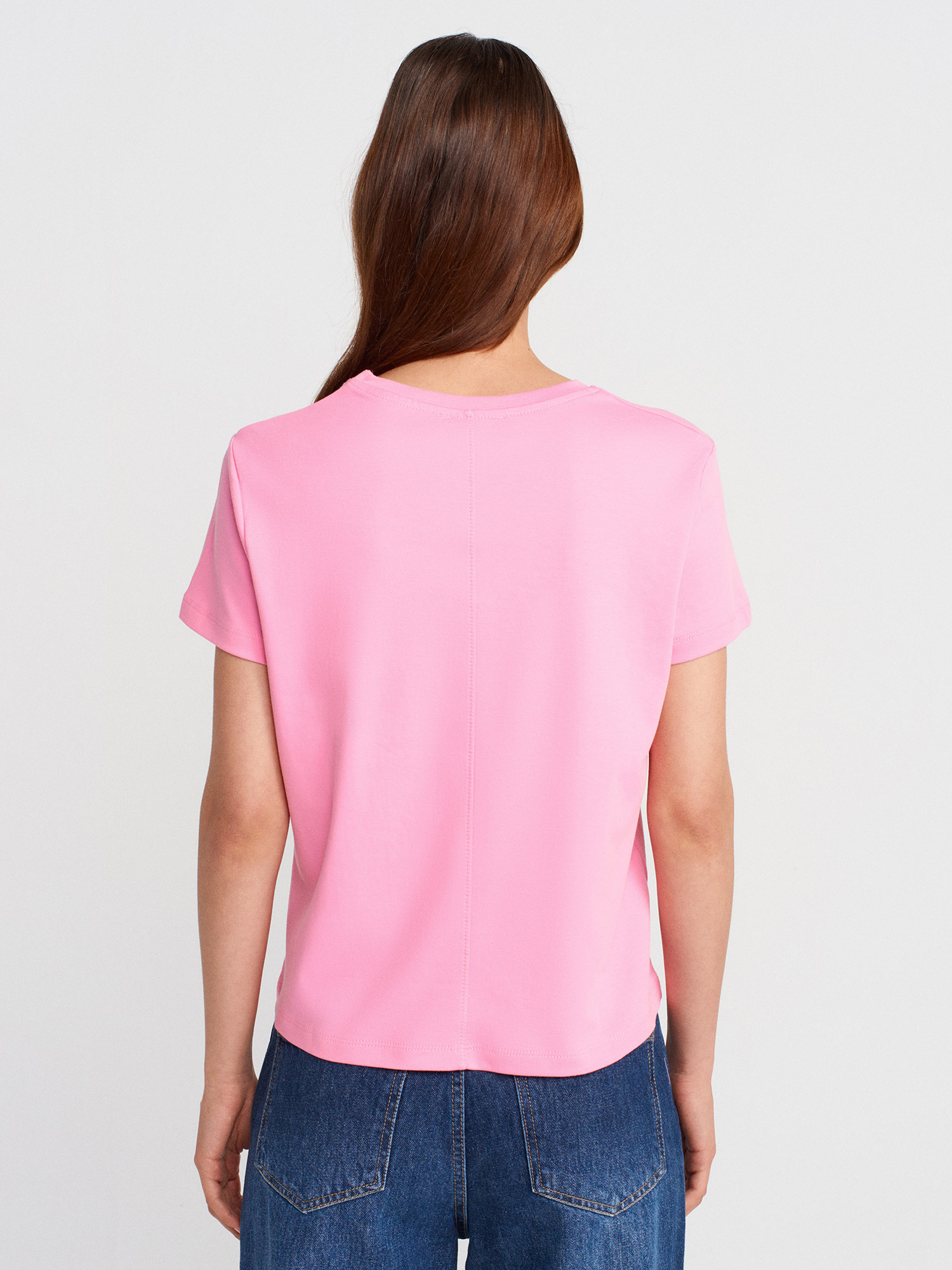 31757 Bisiklet Yaka Dikiş Detaylı T-shirt-Pembe
