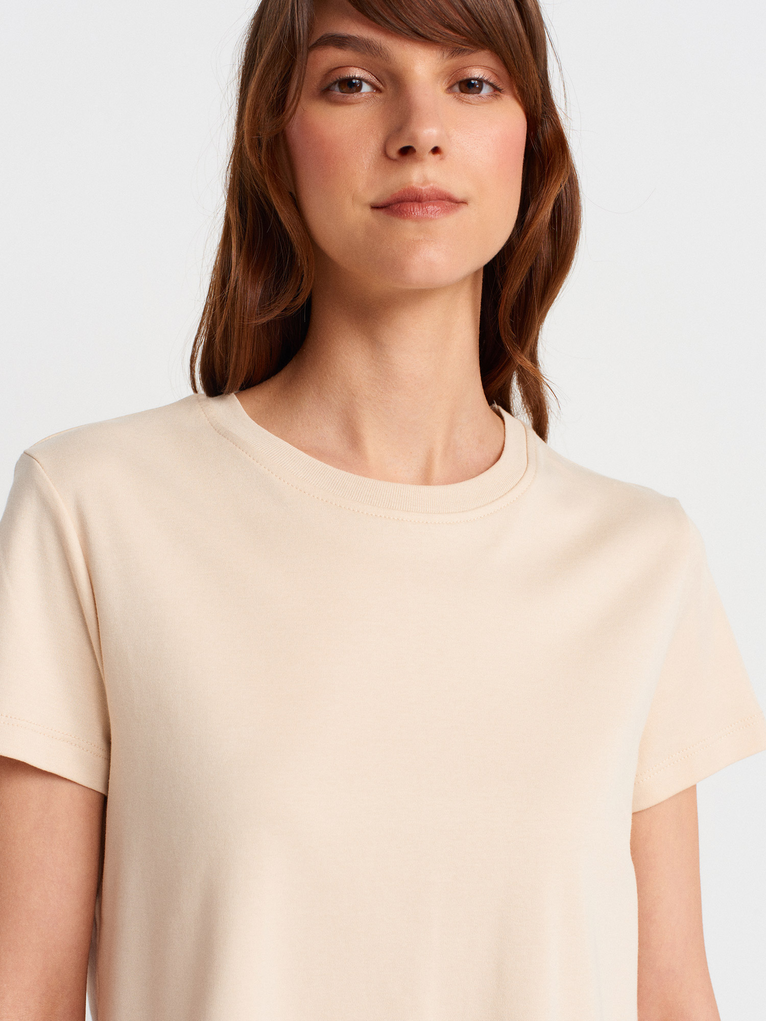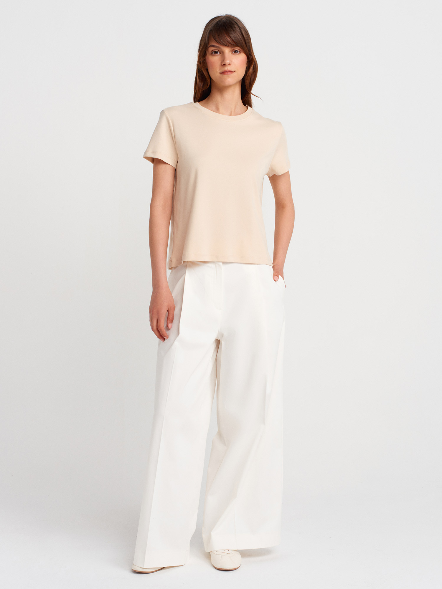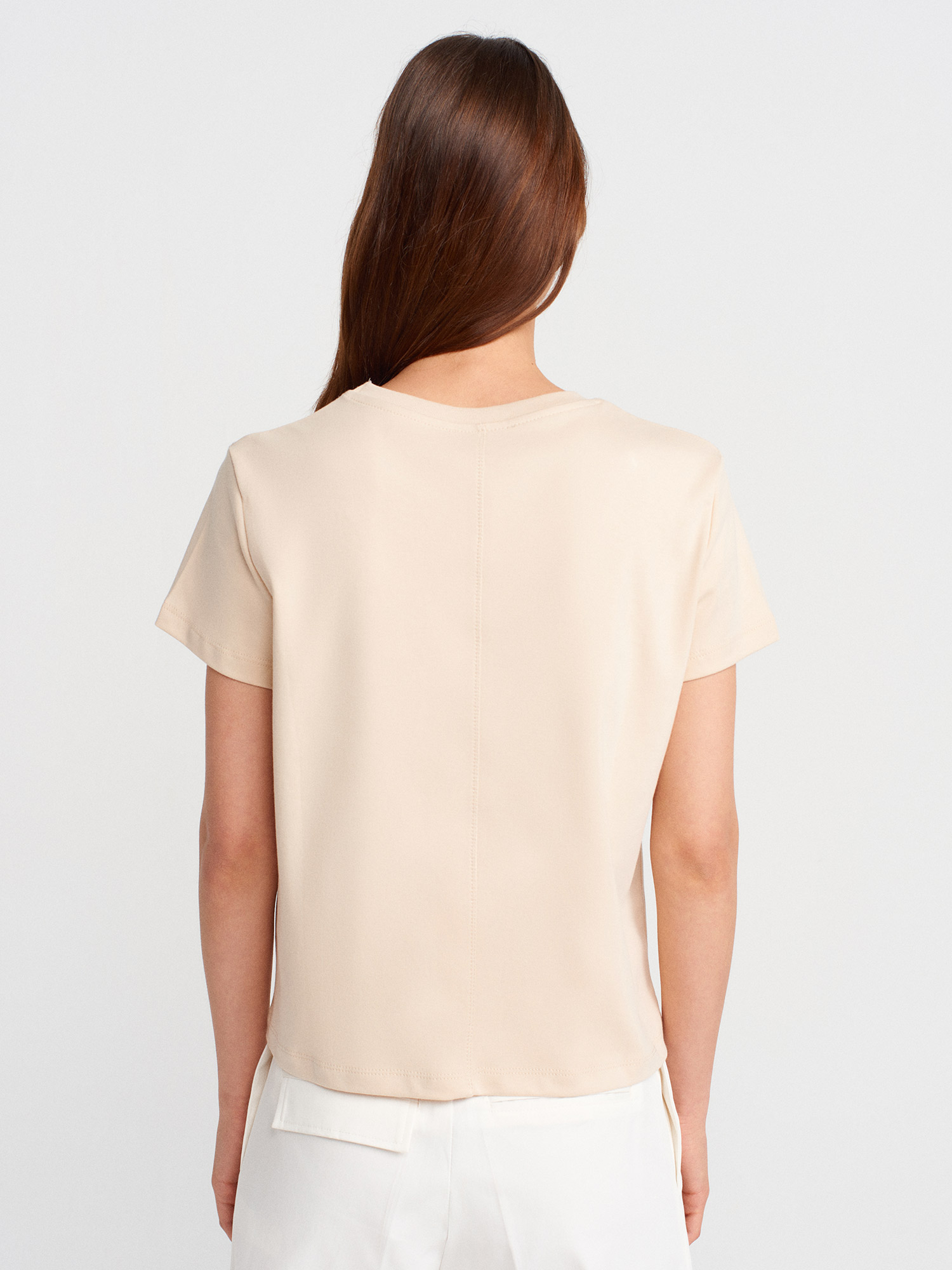 31757 Bisiklet Yaka Dikiş Detaylı T-shirt-Taş