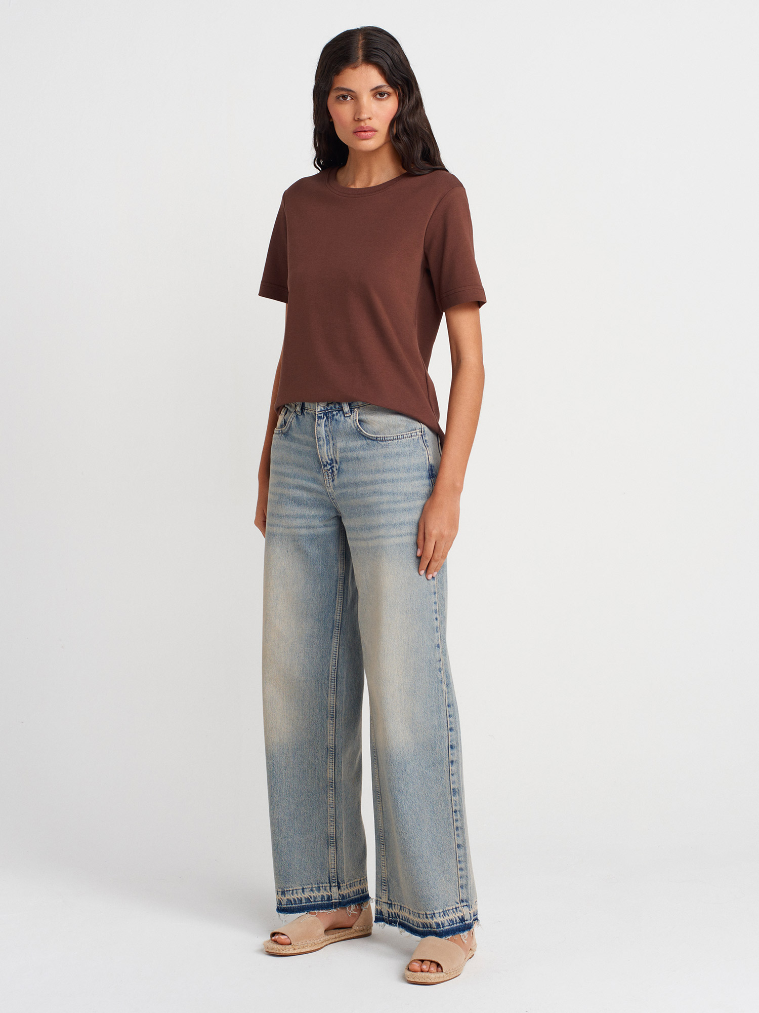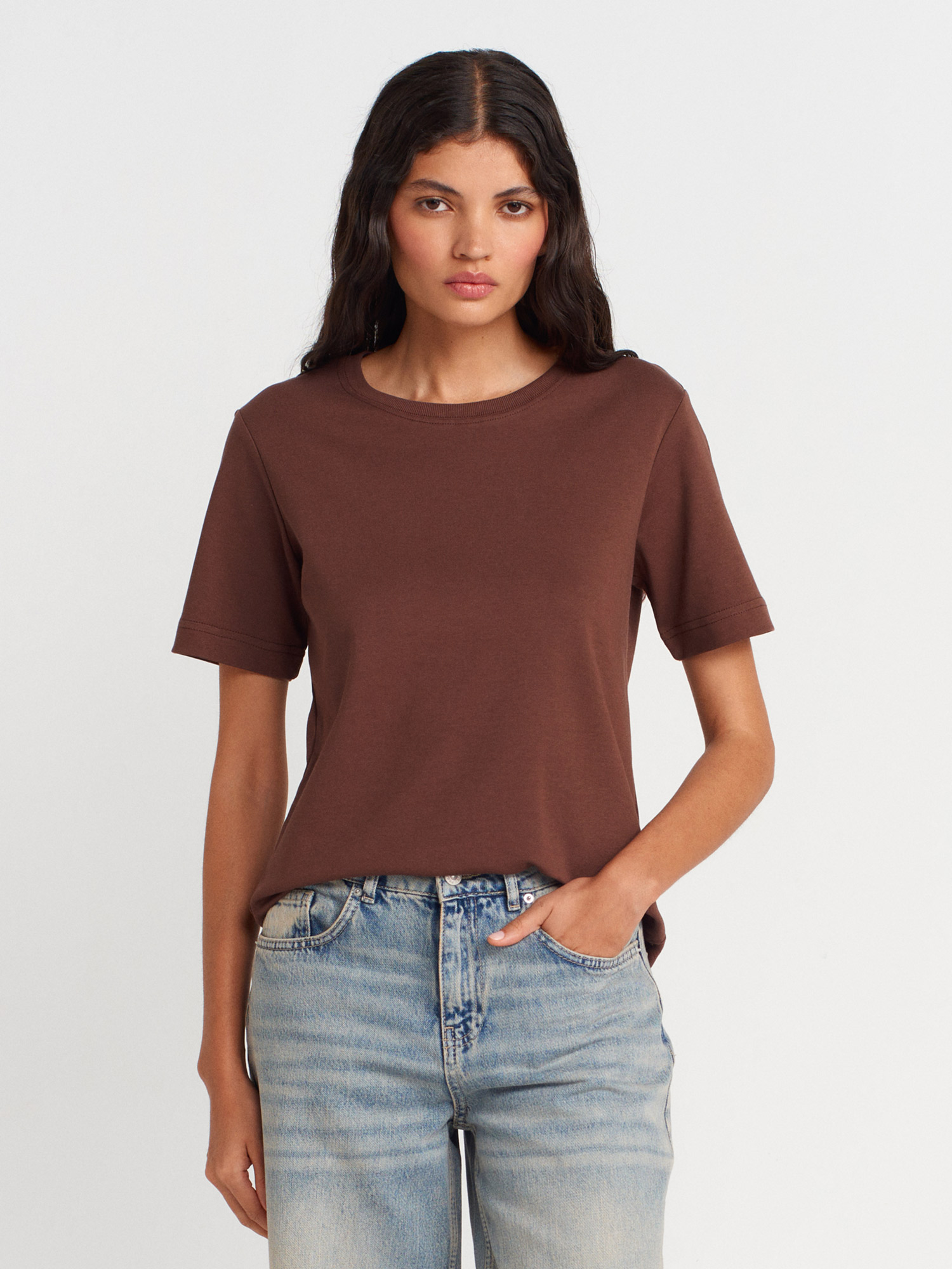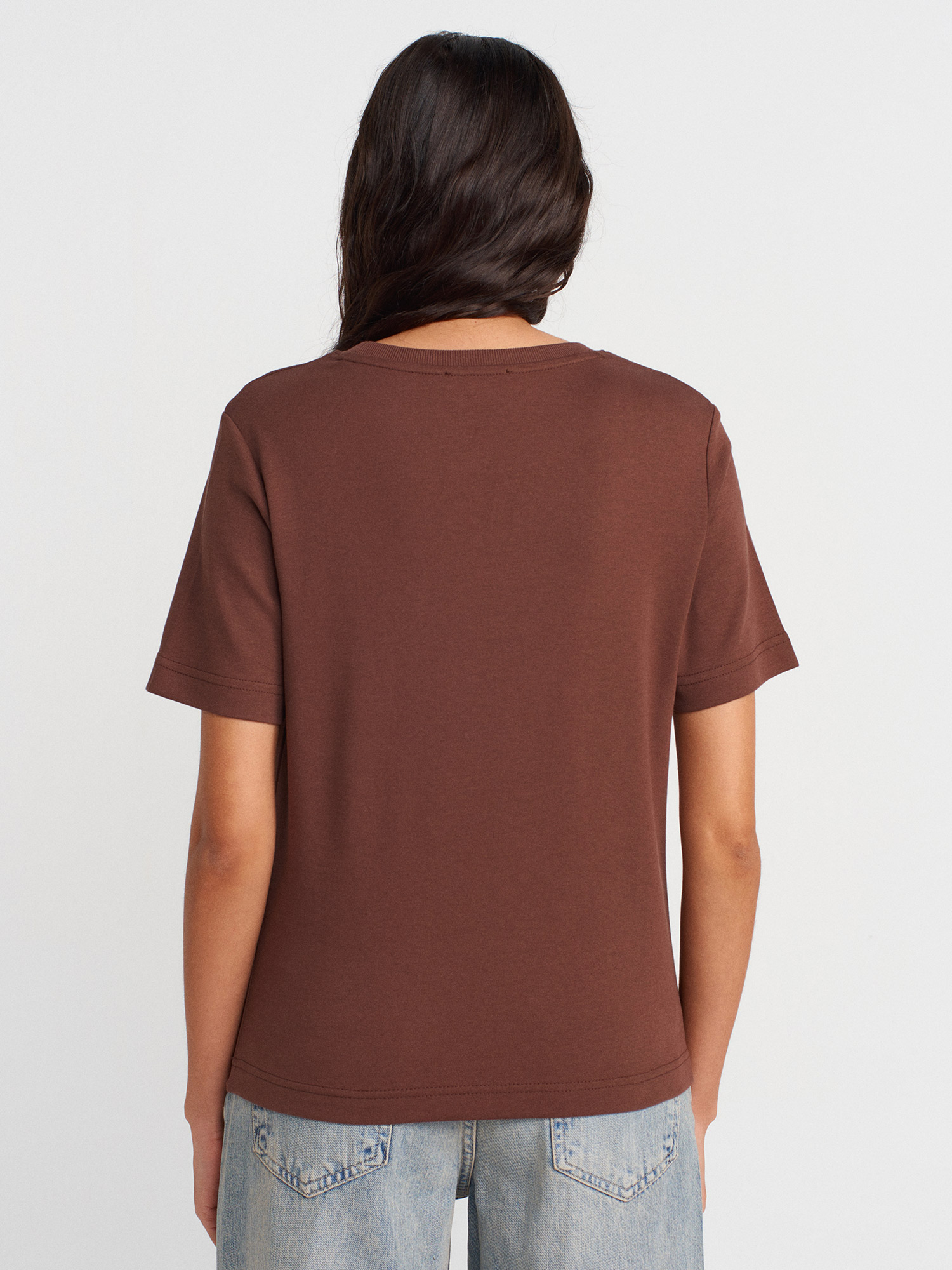 31763 Bisiklet Yaka T-shirt-Açık Kahve