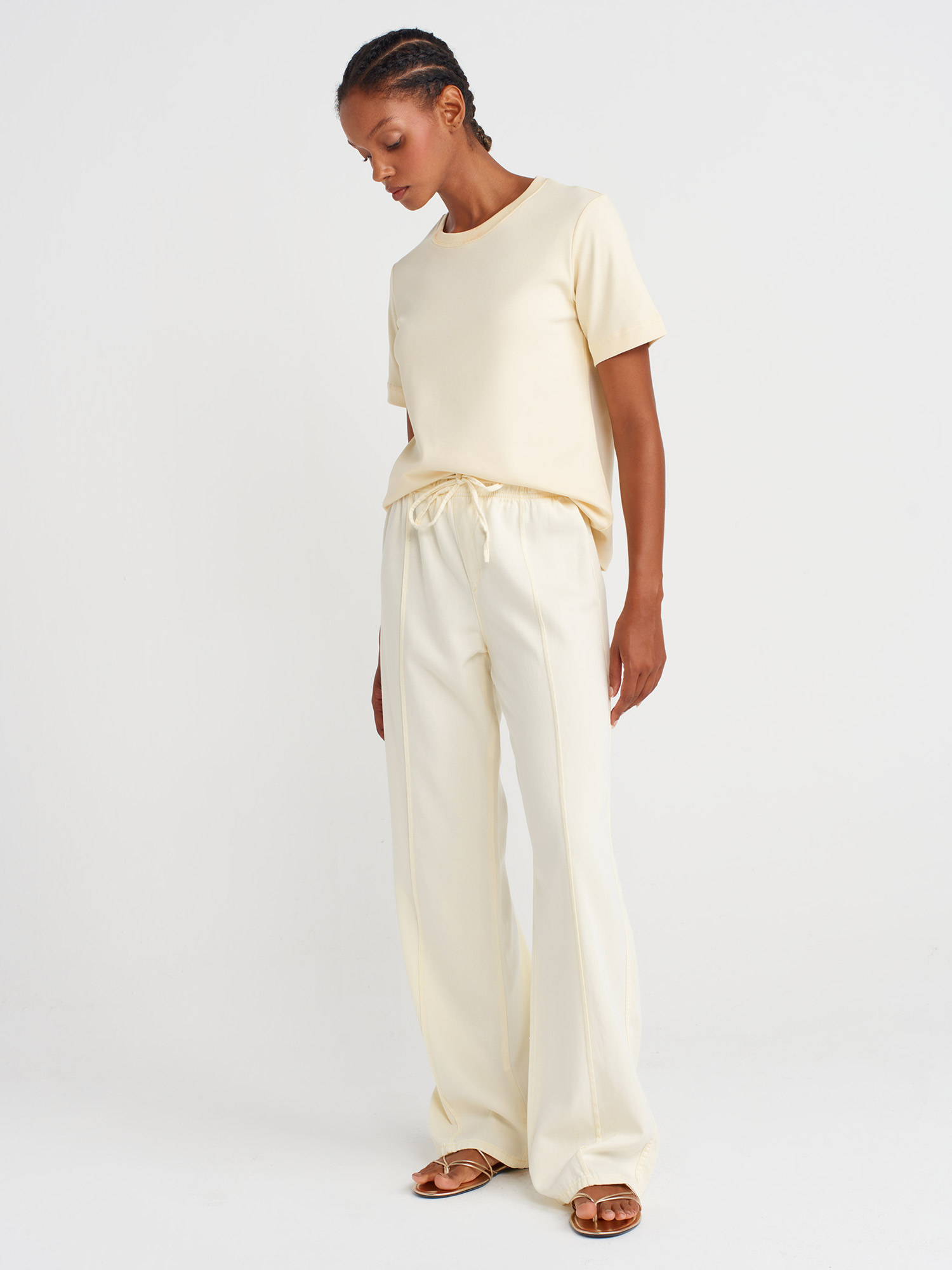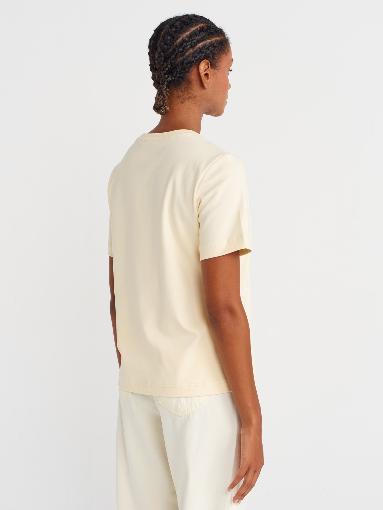 31763 %100 Pamuk Bisiklet Yaka T-shirt-Açık Sarı