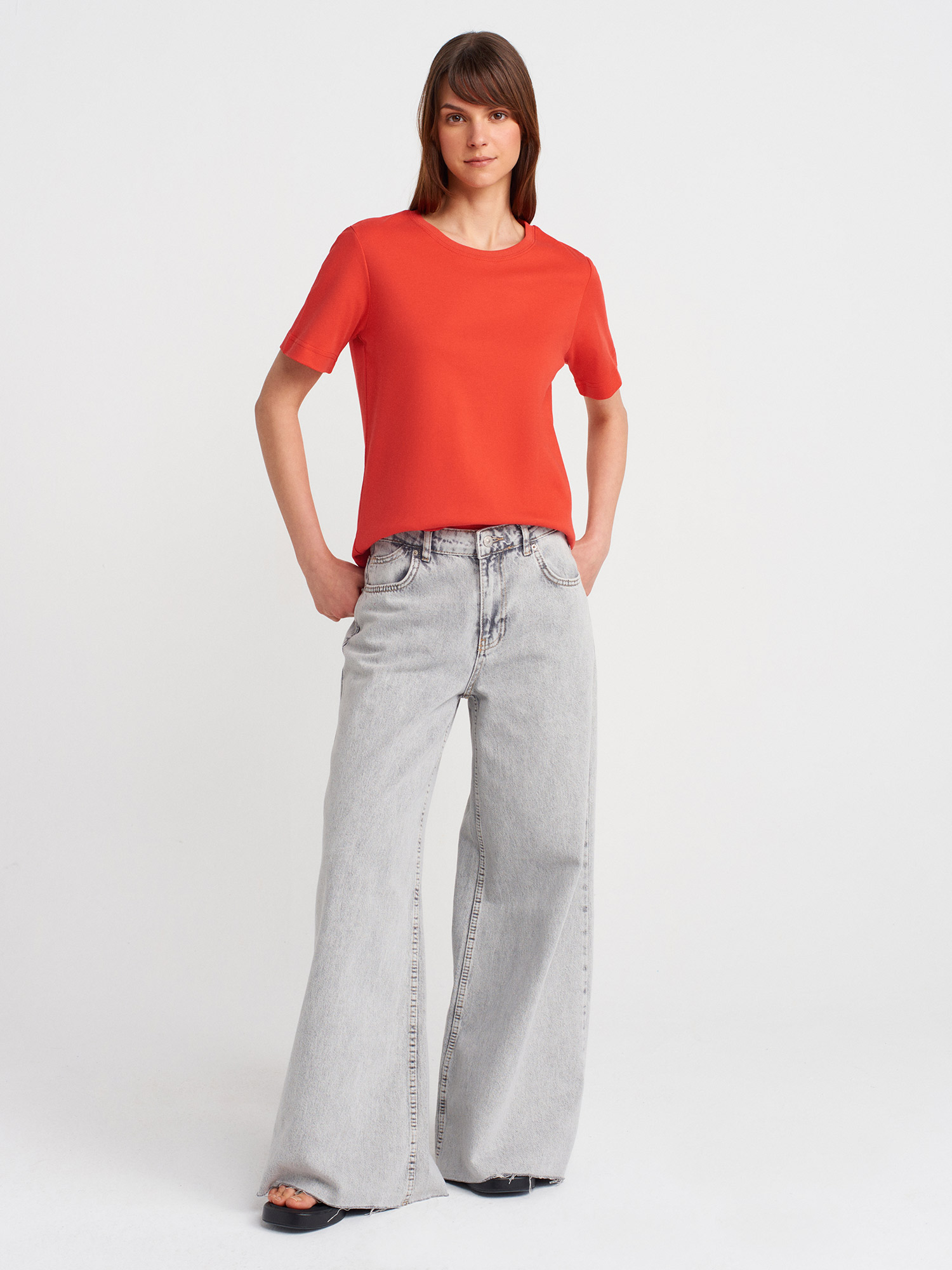 31763 Bisiklet Yaka T-shirt-Kırmızı