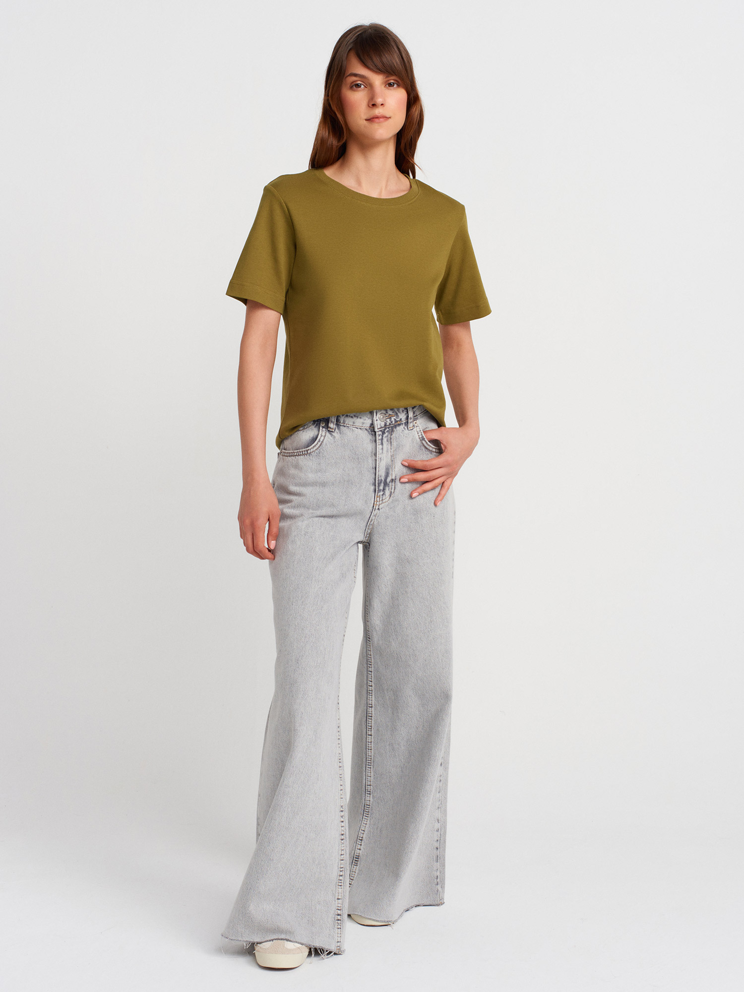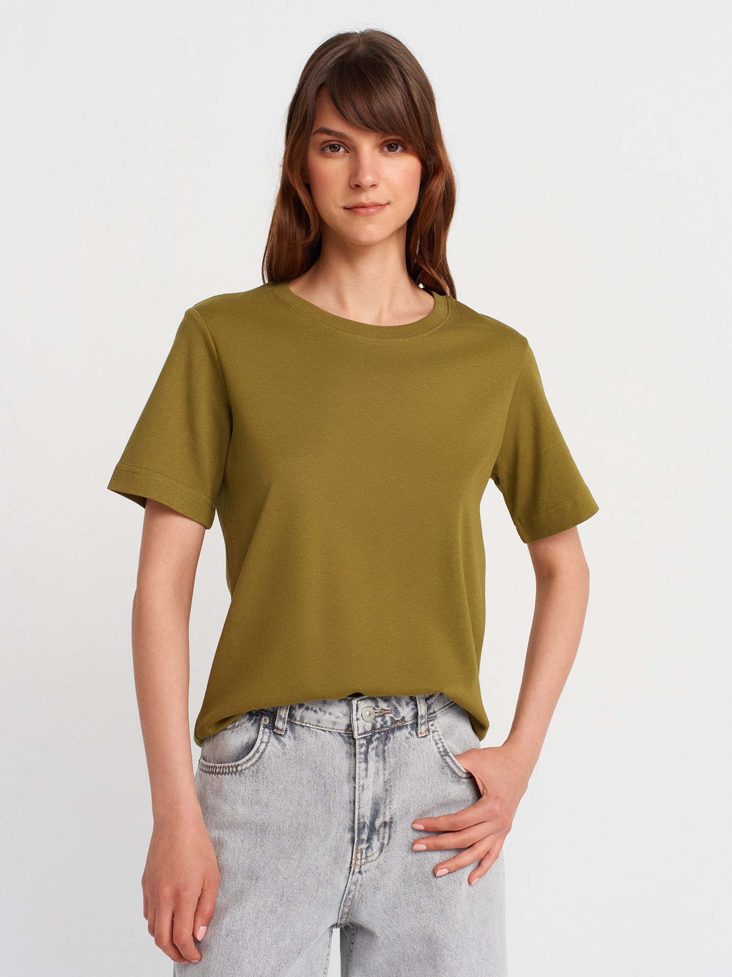 31763 Bisiklet Yaka T-shirt-Yağ Yeşil