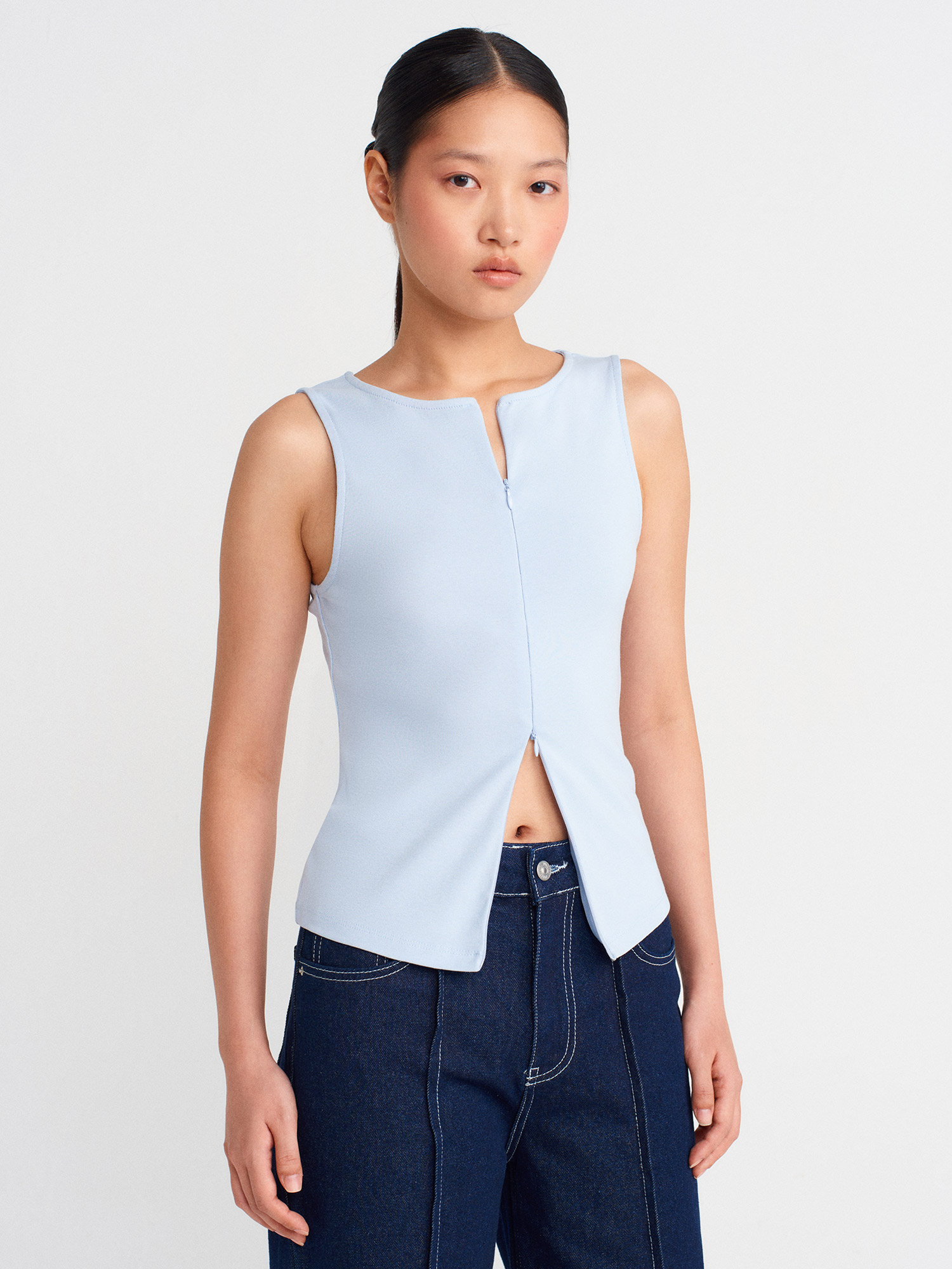 31764 Fermuar Detaylı Top-Açık Mavi