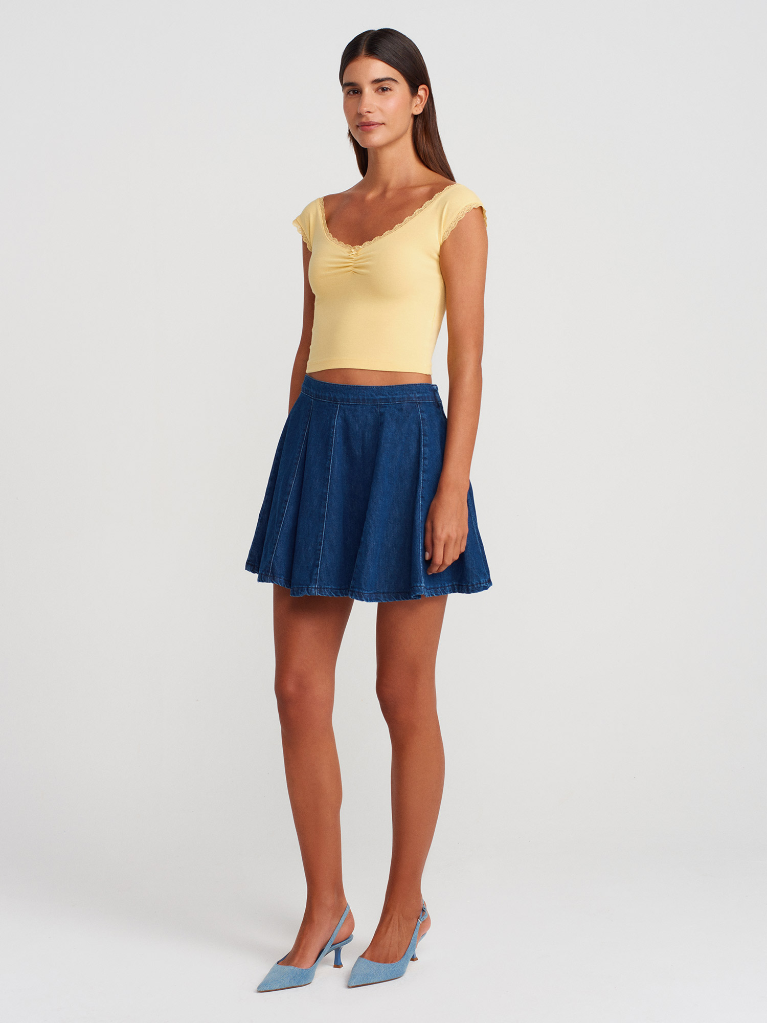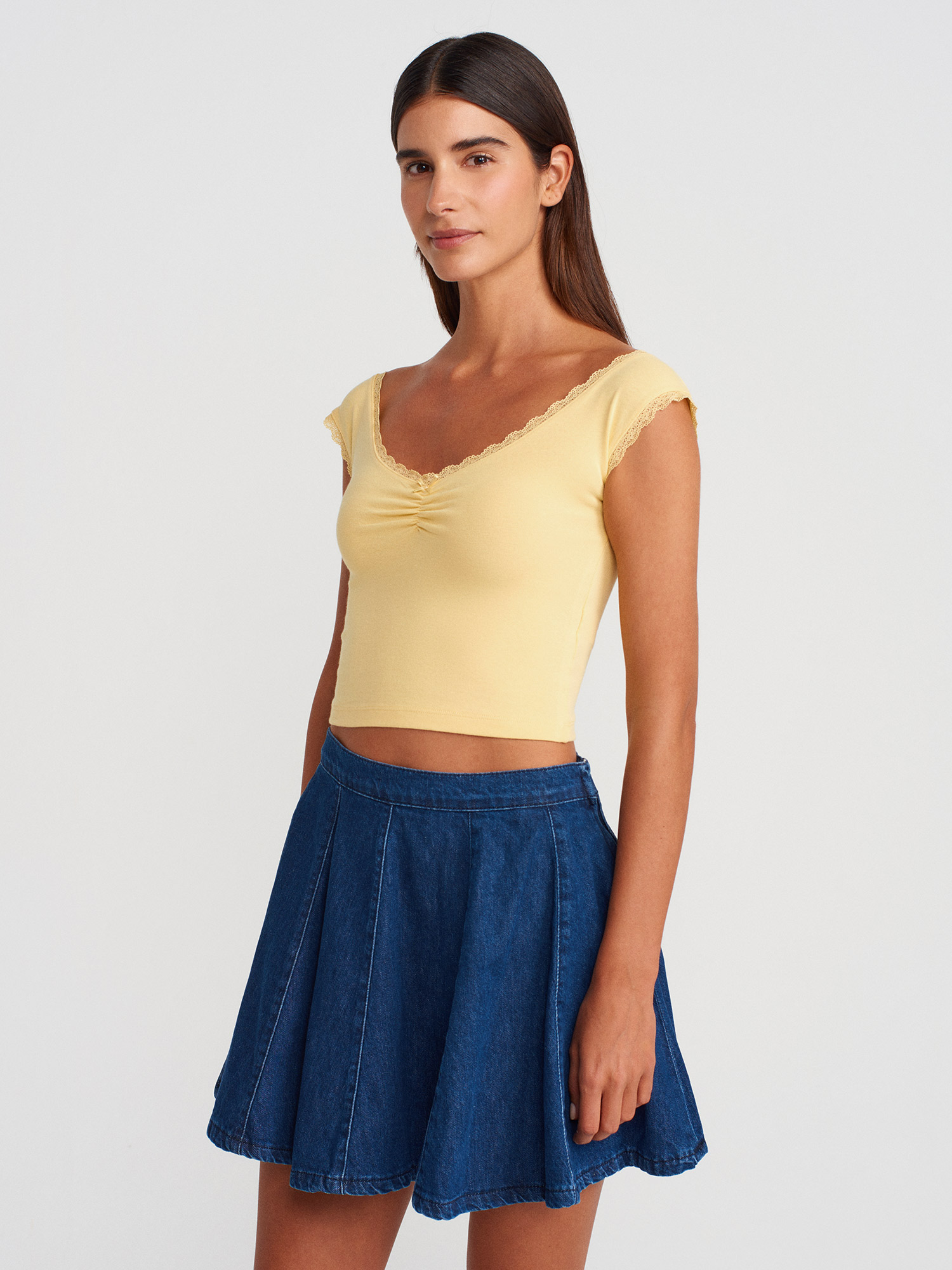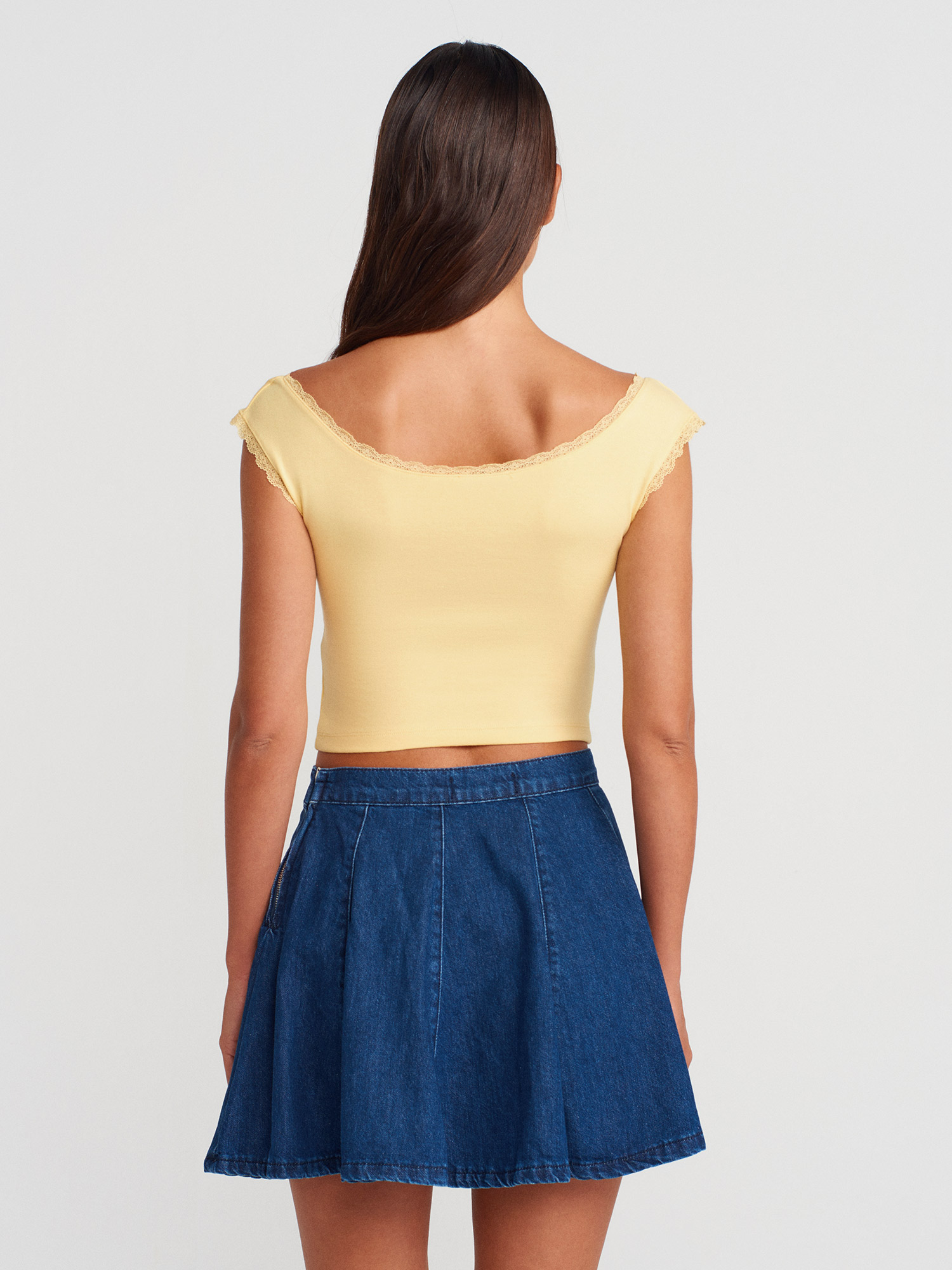 31775 Dantel Detaylı Omuzları Açık Top-Sarı