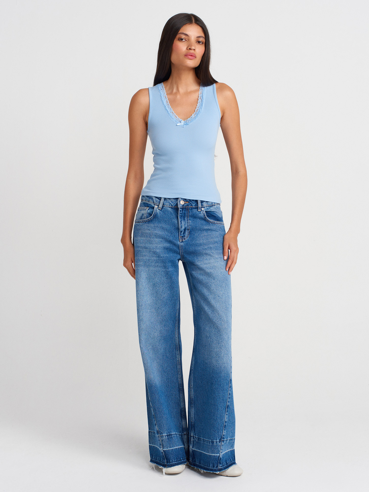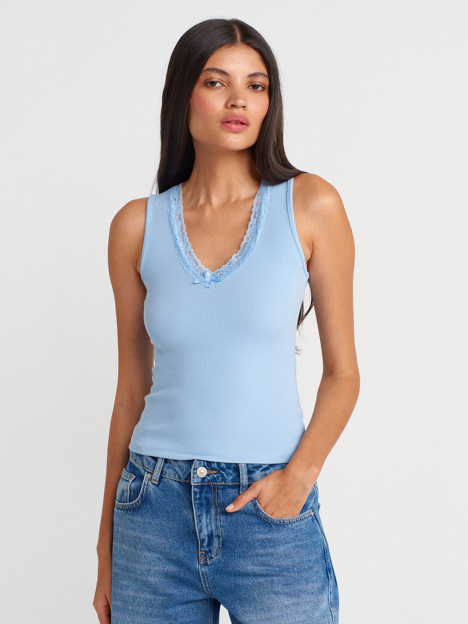 31778 Dantel Detaylı Top-Mavi