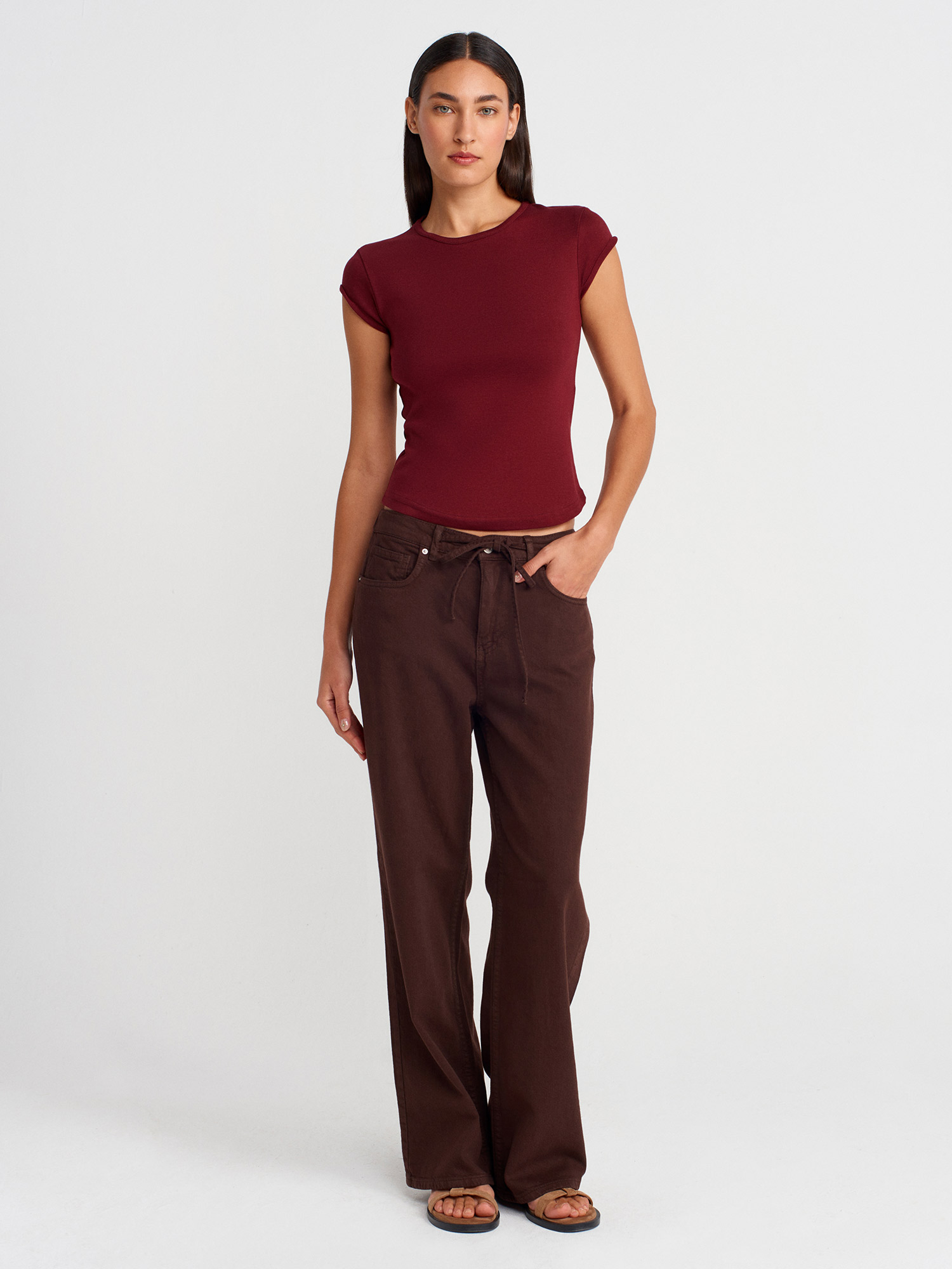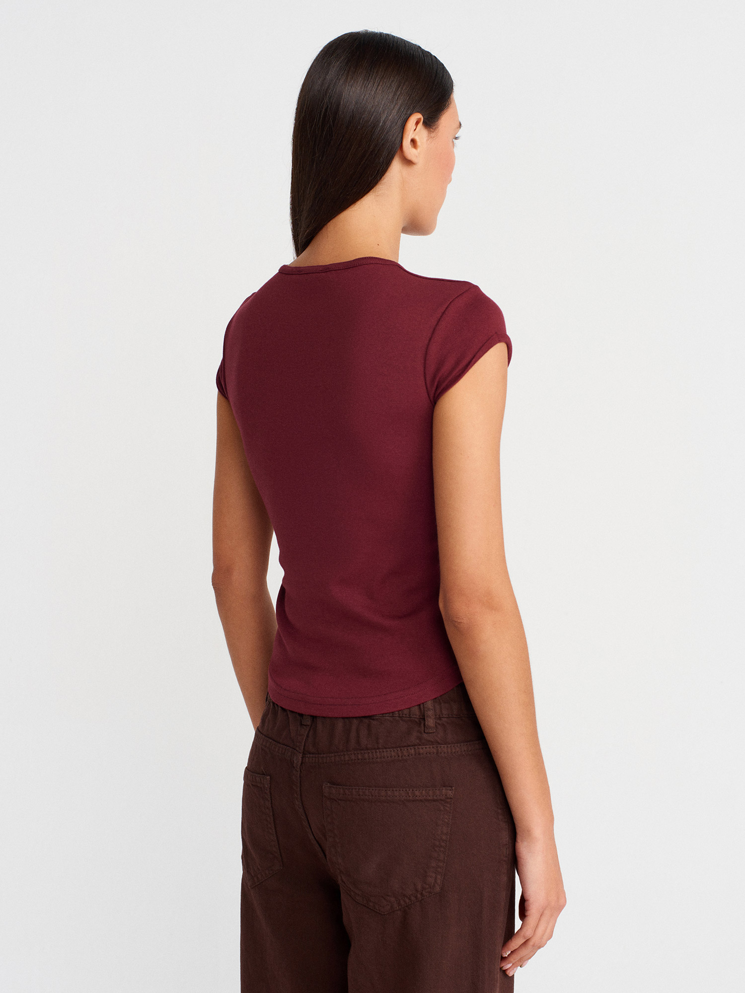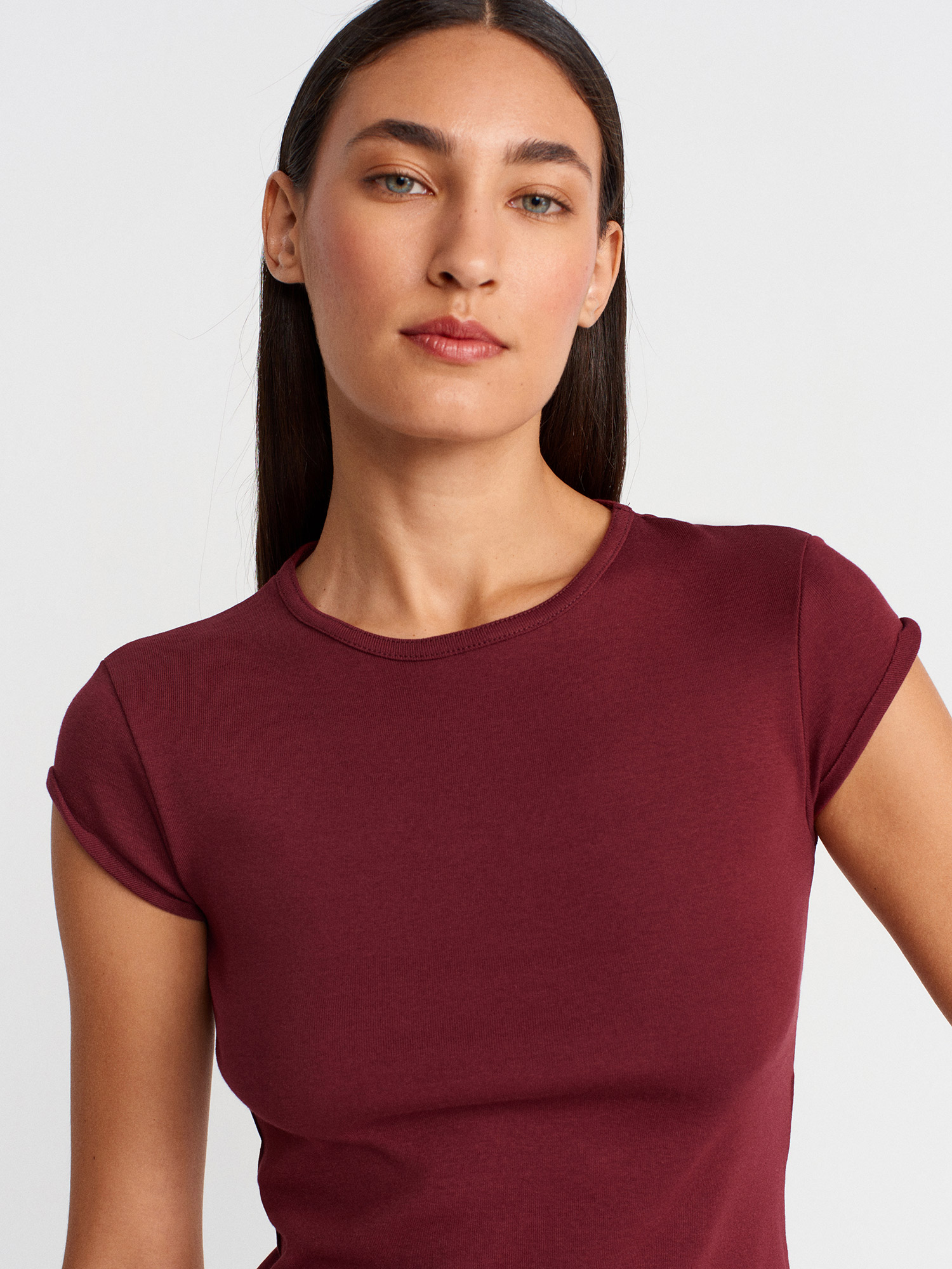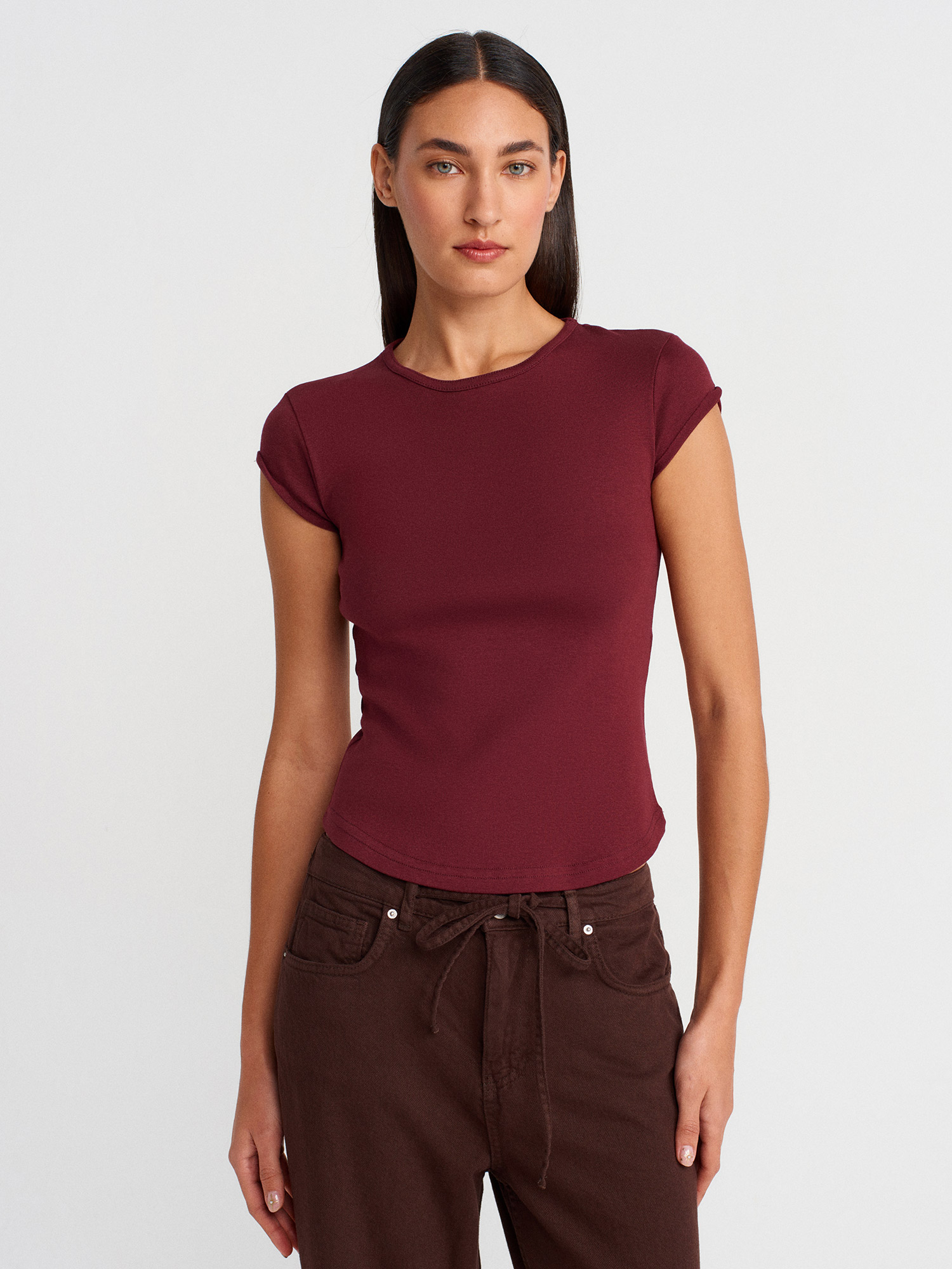 31779 Bisiklet Yaka Basic T-Shirt-Açık Bordo