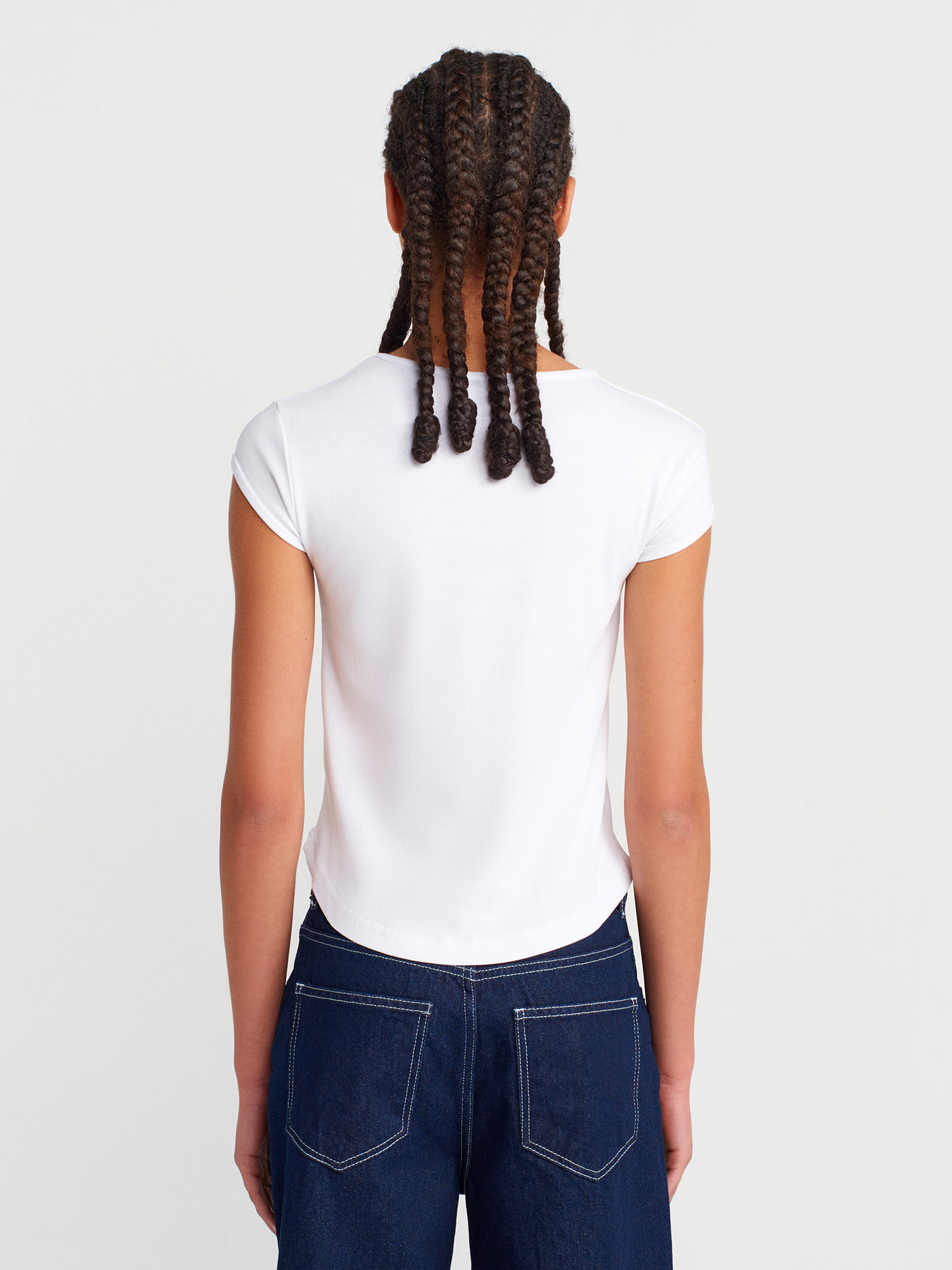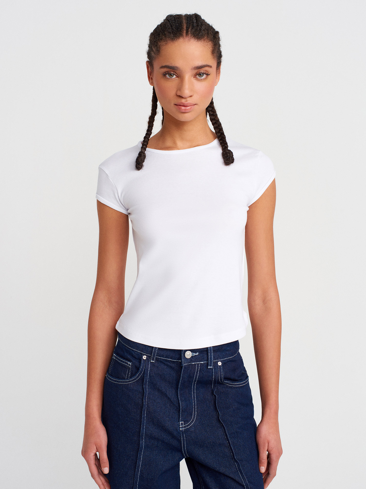 31779 Bisiklet Yaka Basic T-Shirt-Beyaz