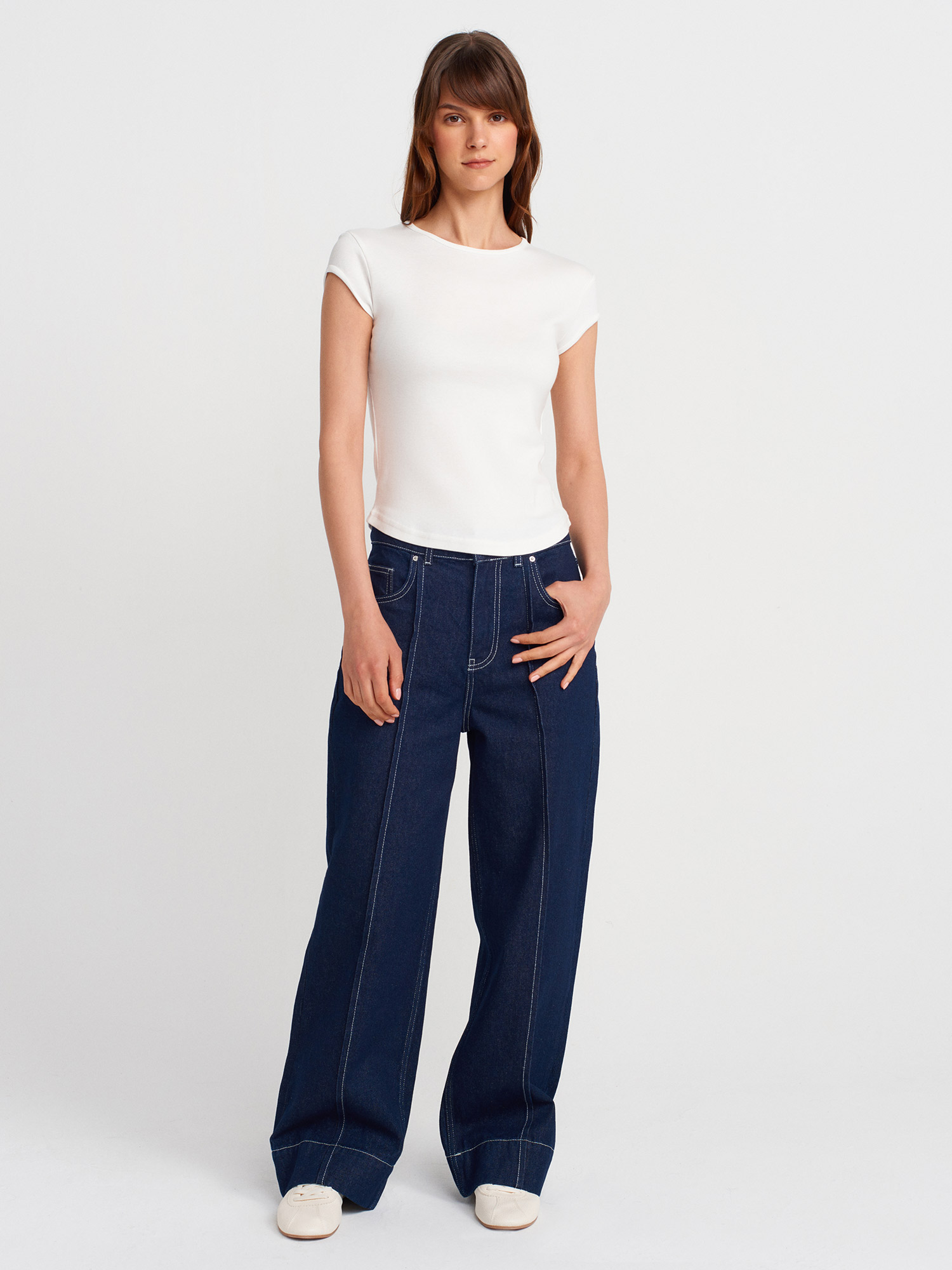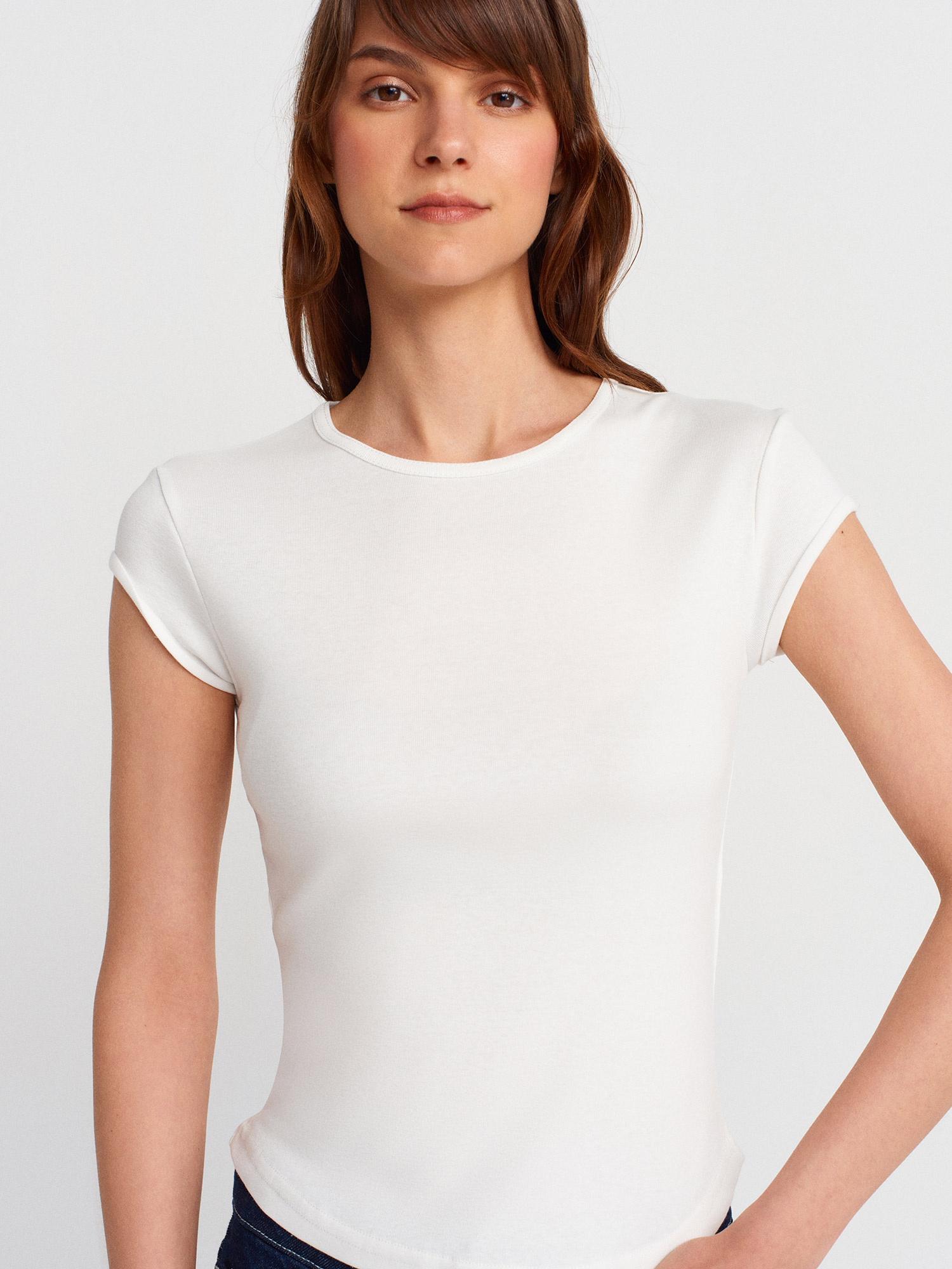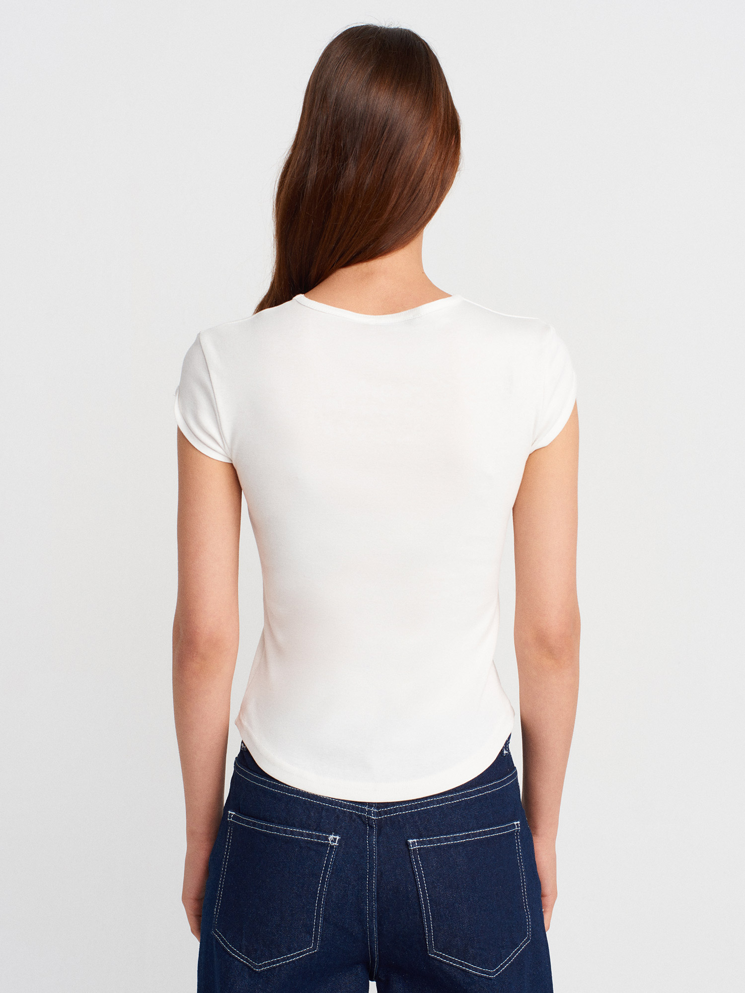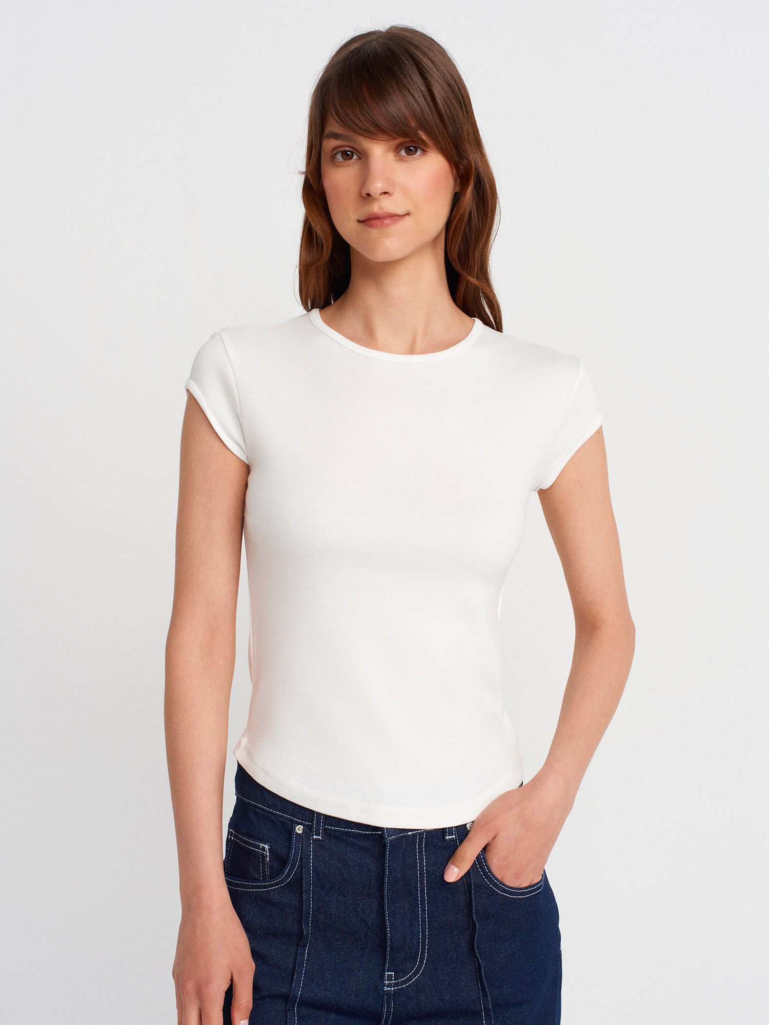 31779 Bisiklet Yaka Basic T-Shirt-Ekru