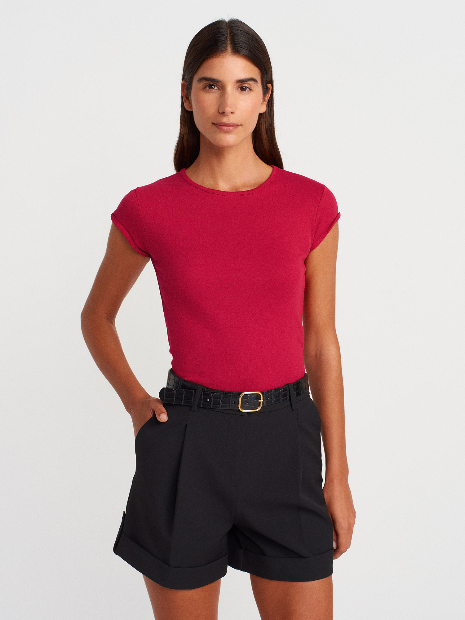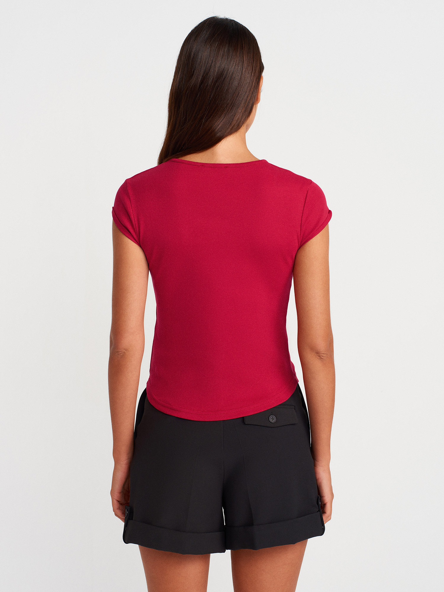 31779 Bisiklet Yaka Basic T-Shirt-K.Kırmızı