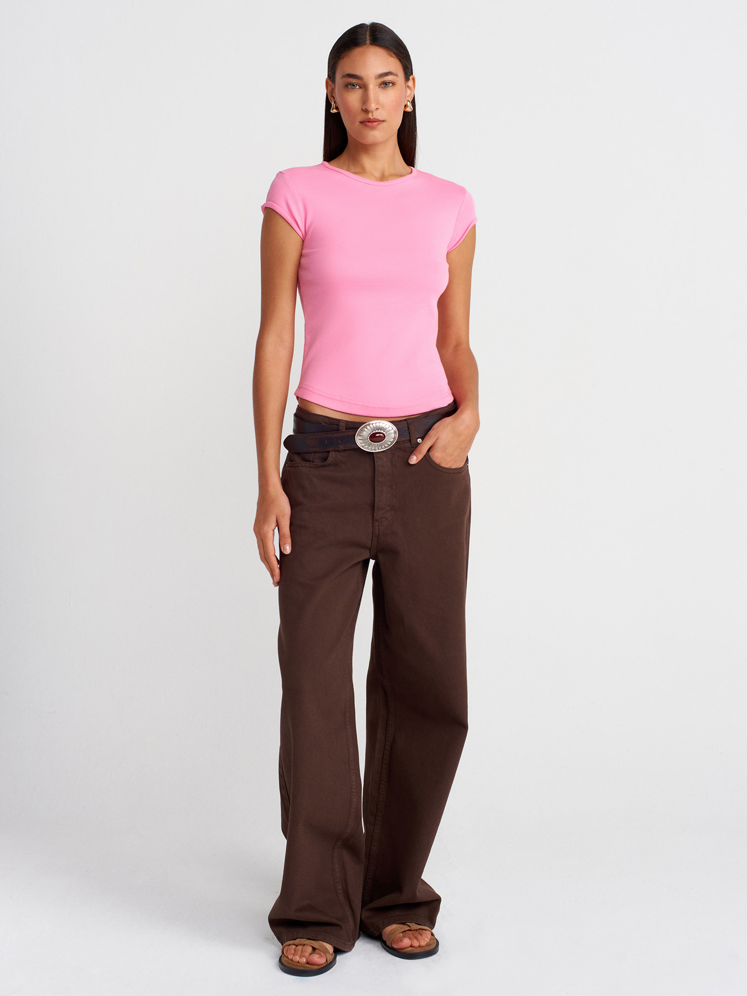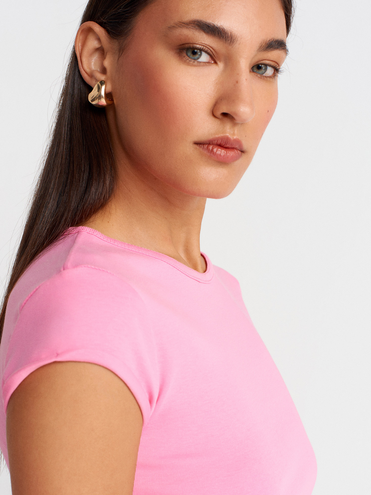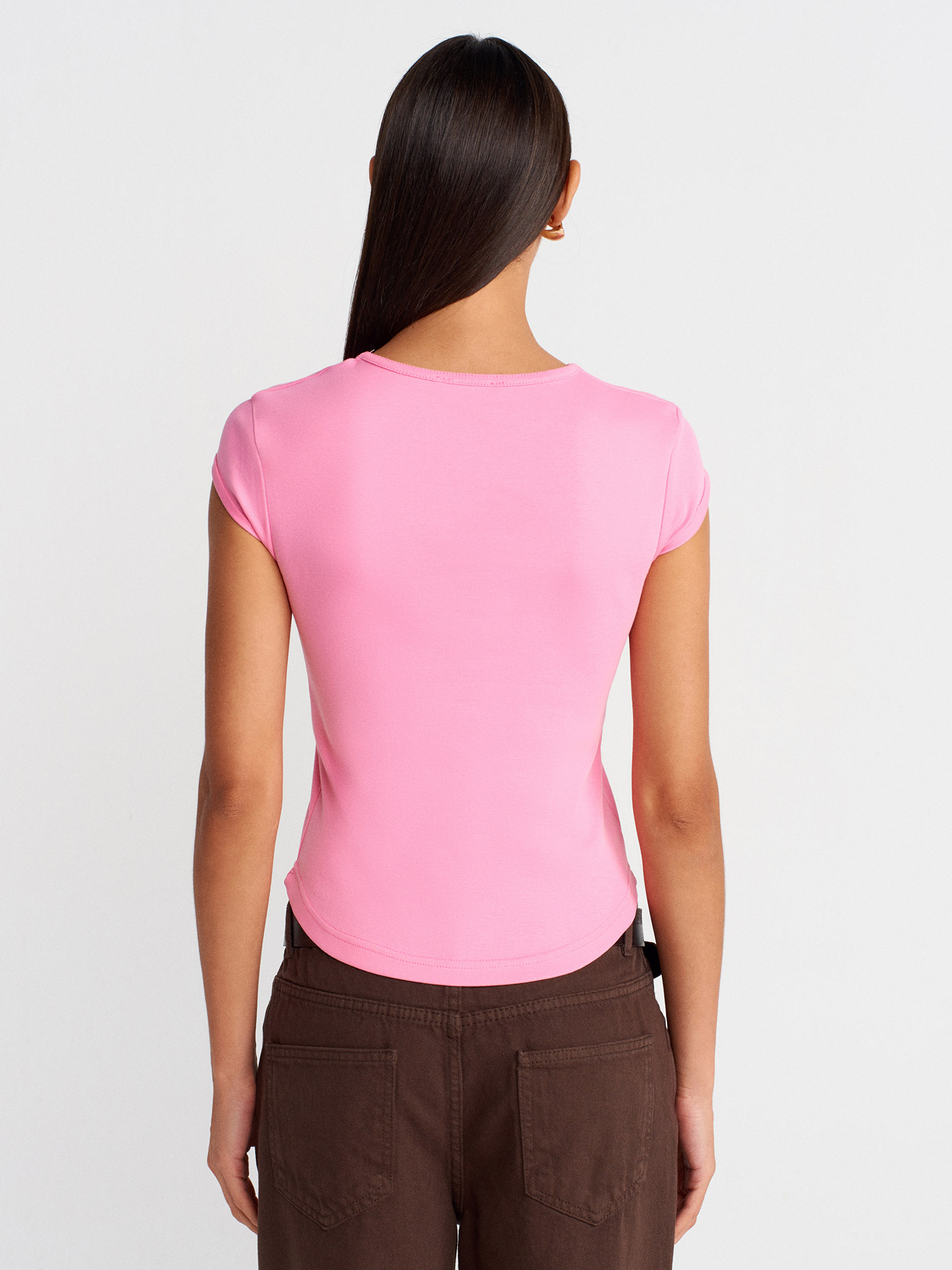 31779 Bisiklet Yaka Basic T-Shirt-Pembe