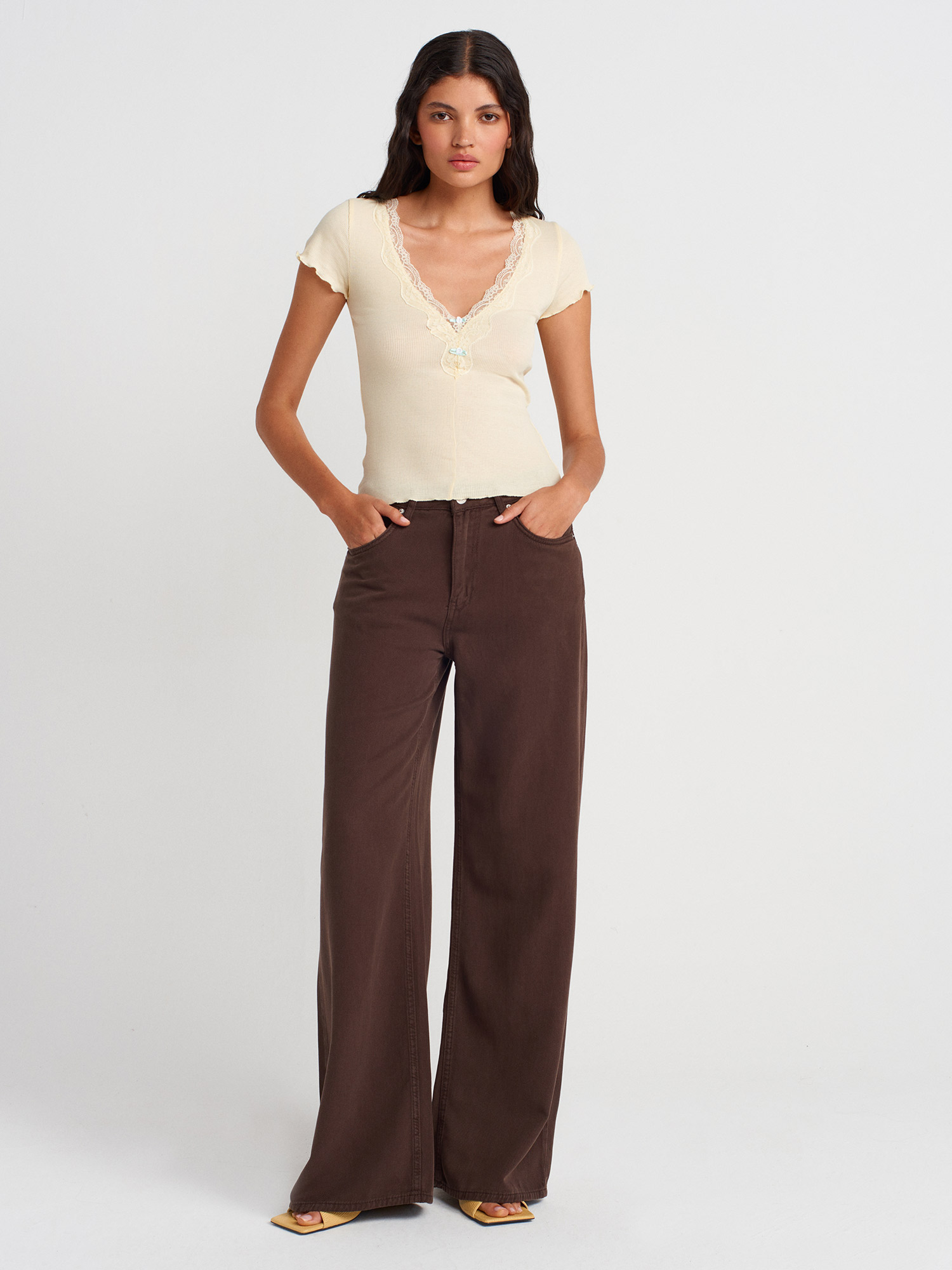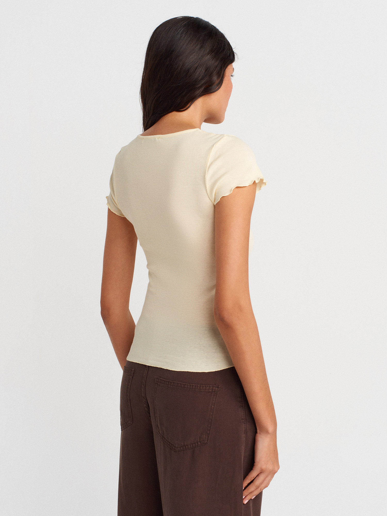 31789 Dantel Şeritli V Yaka Top-Açık Sarı