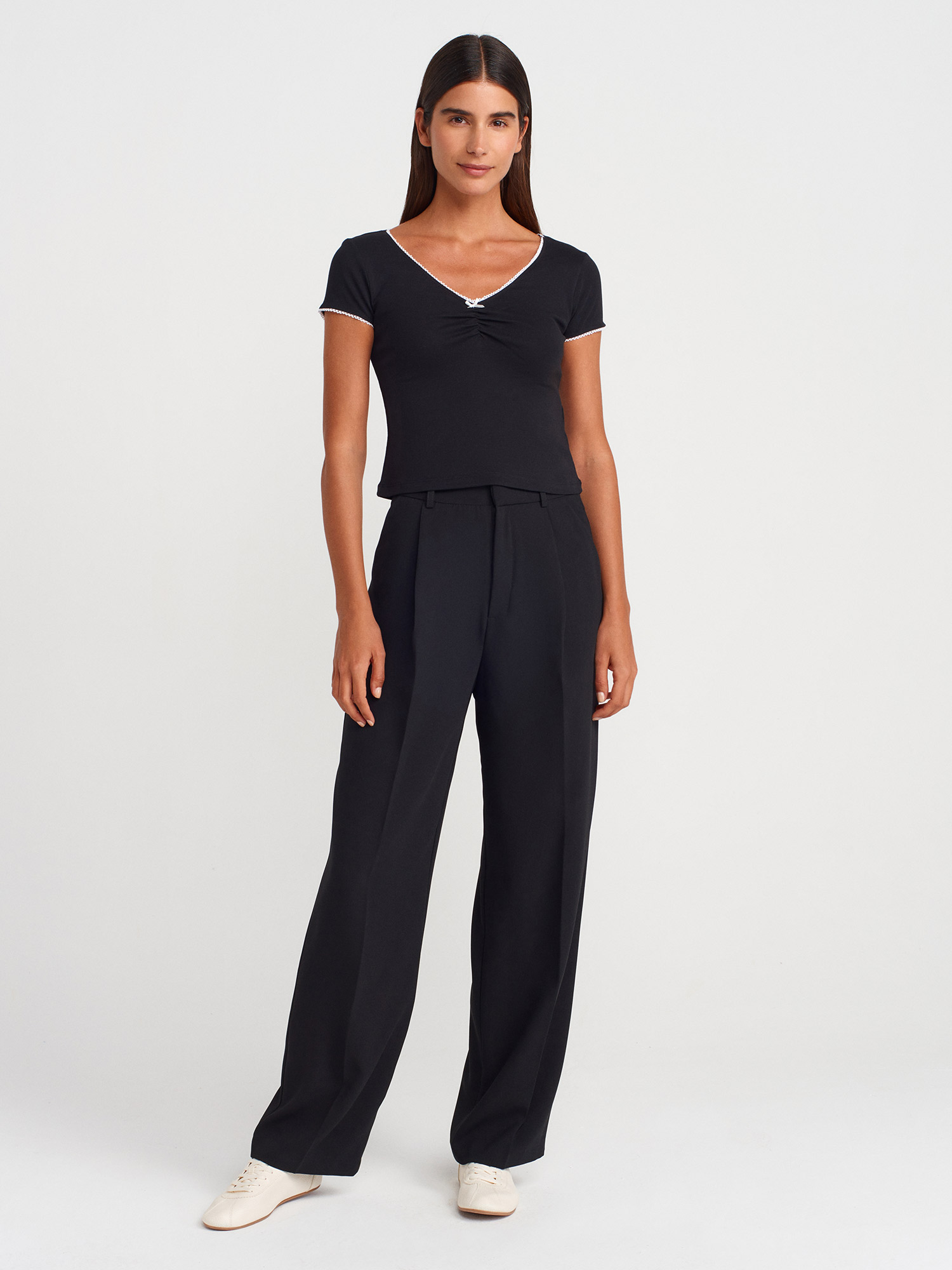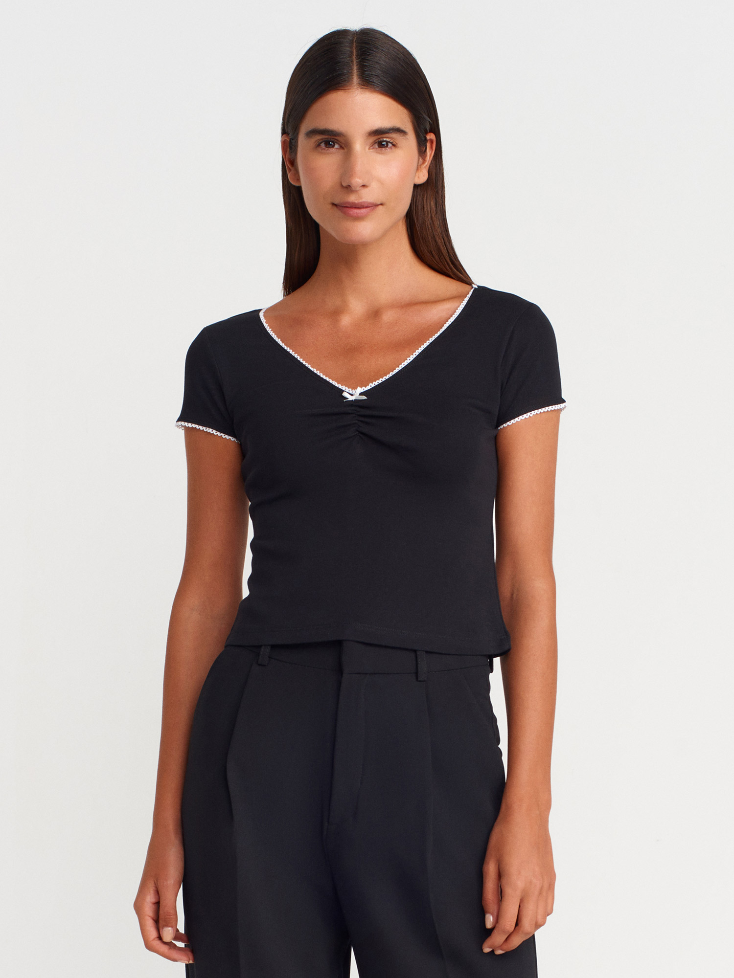 31798 Kısa Kollu Büzgülü Top-Siyah