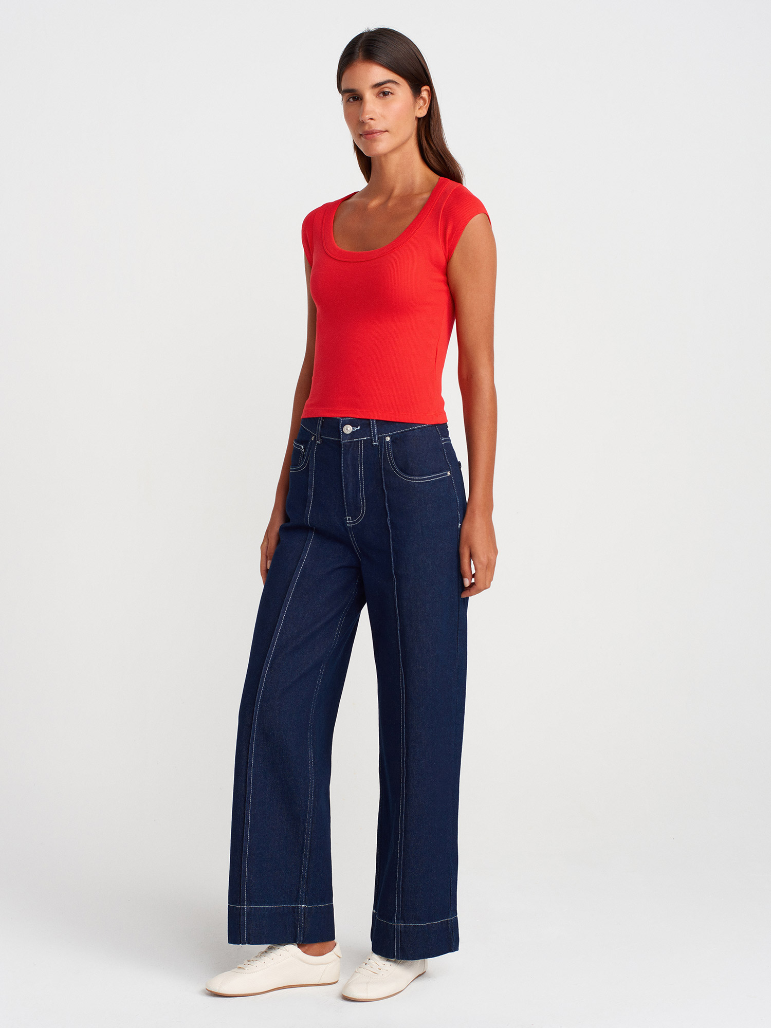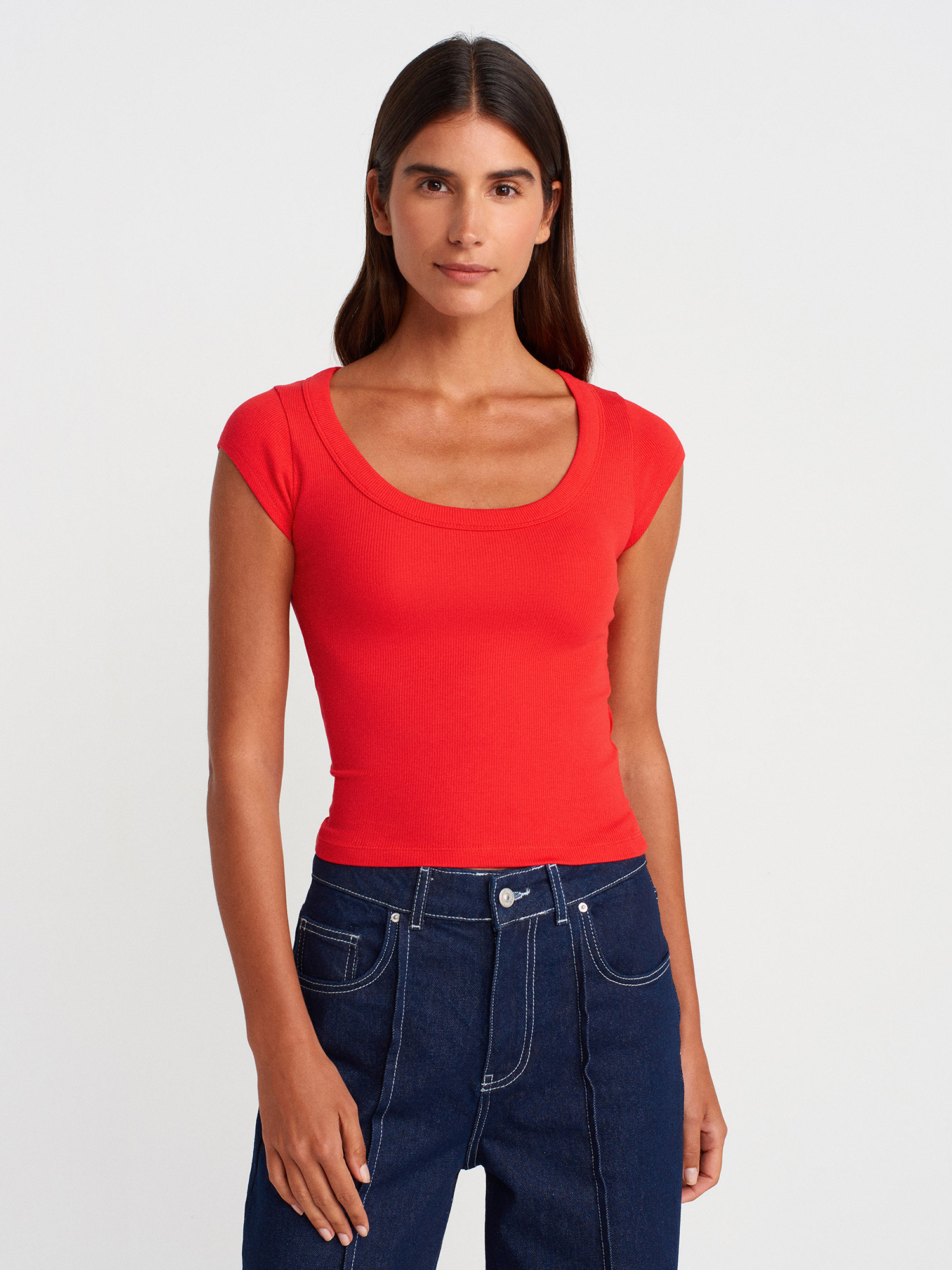 31808 Yuvarlak Yaka Fitilli T-shirt-Kırmızı