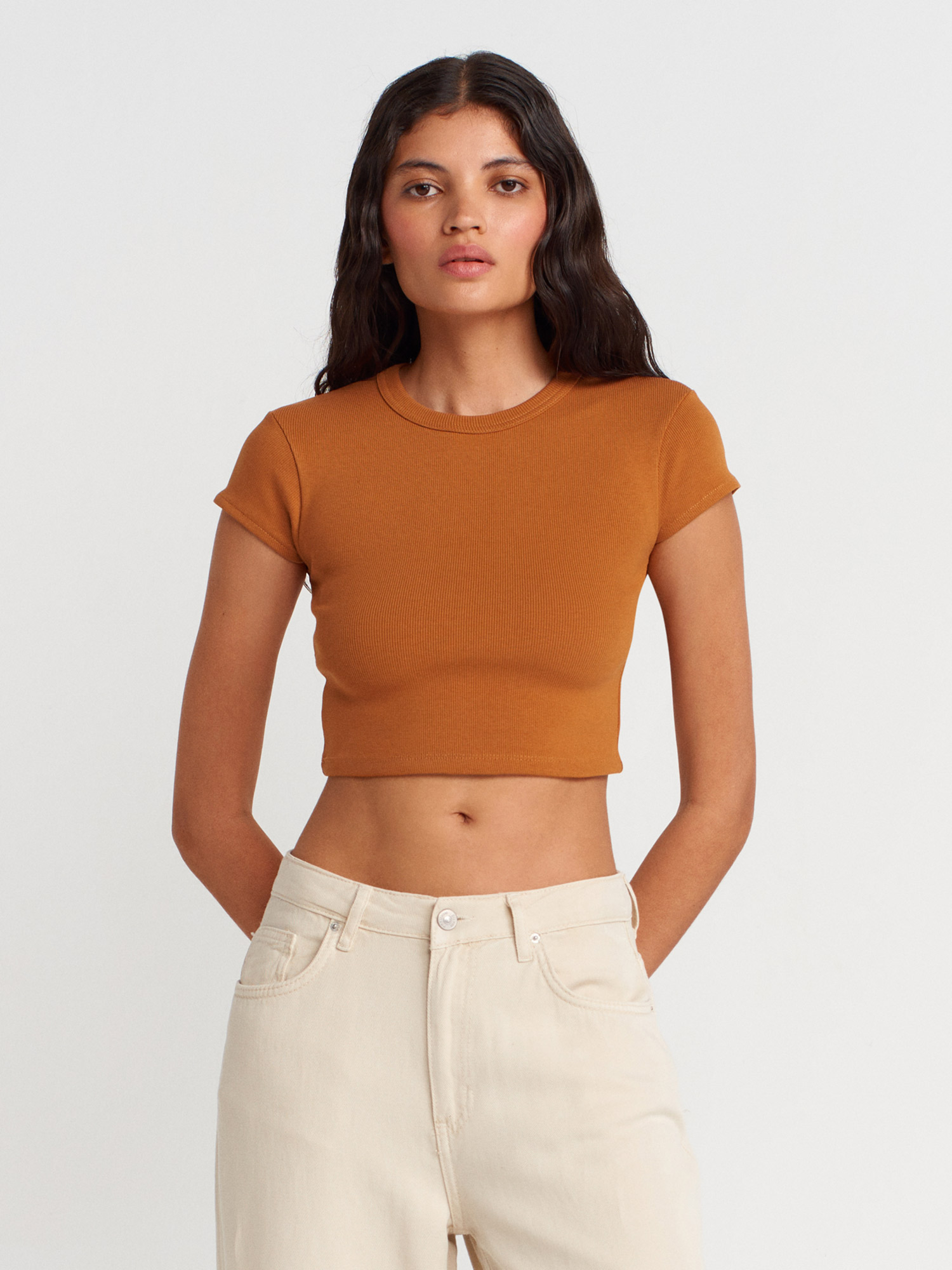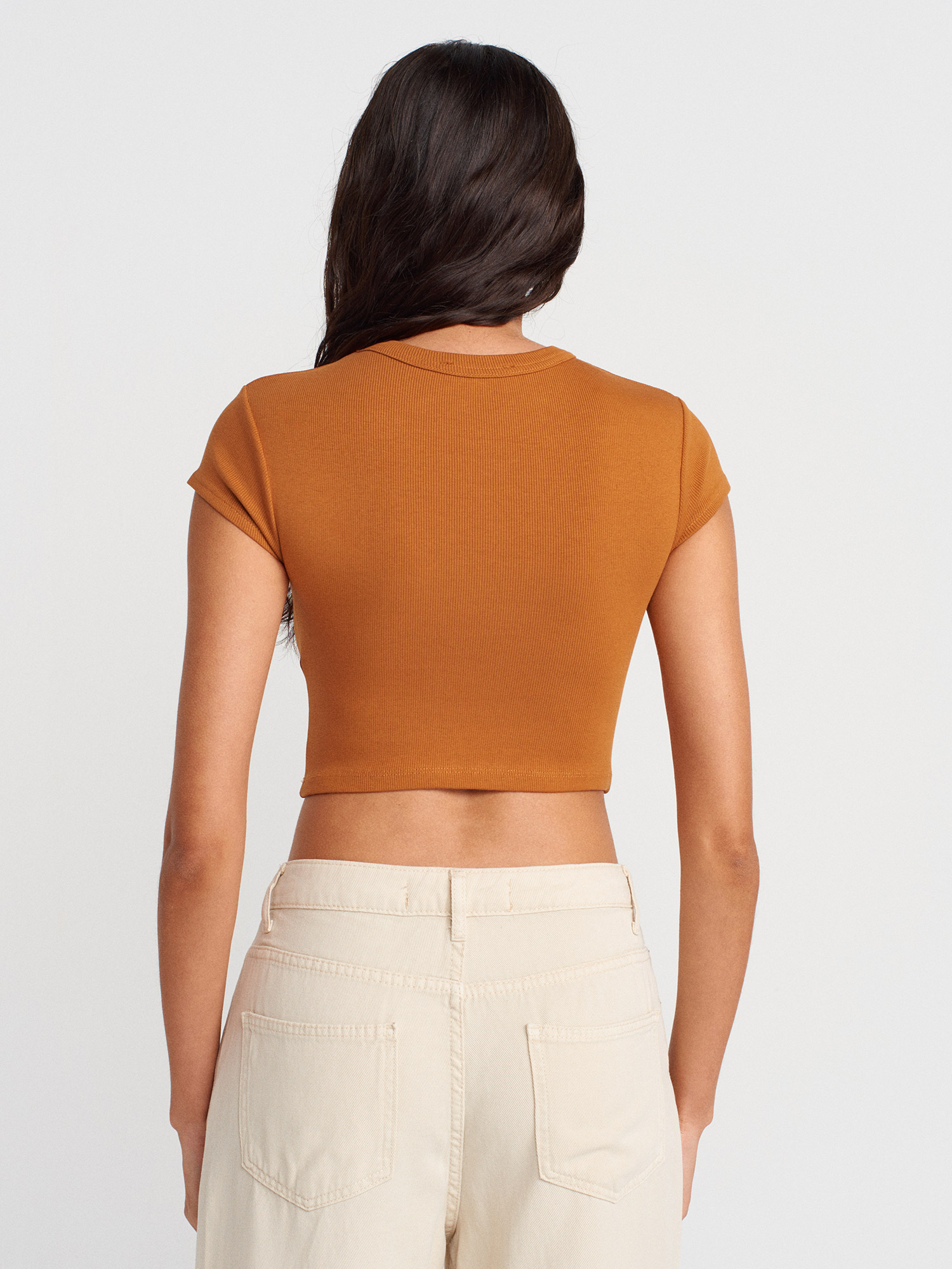 31810 Bisiklet Yaka Crop T-shirt-A.Kiremit