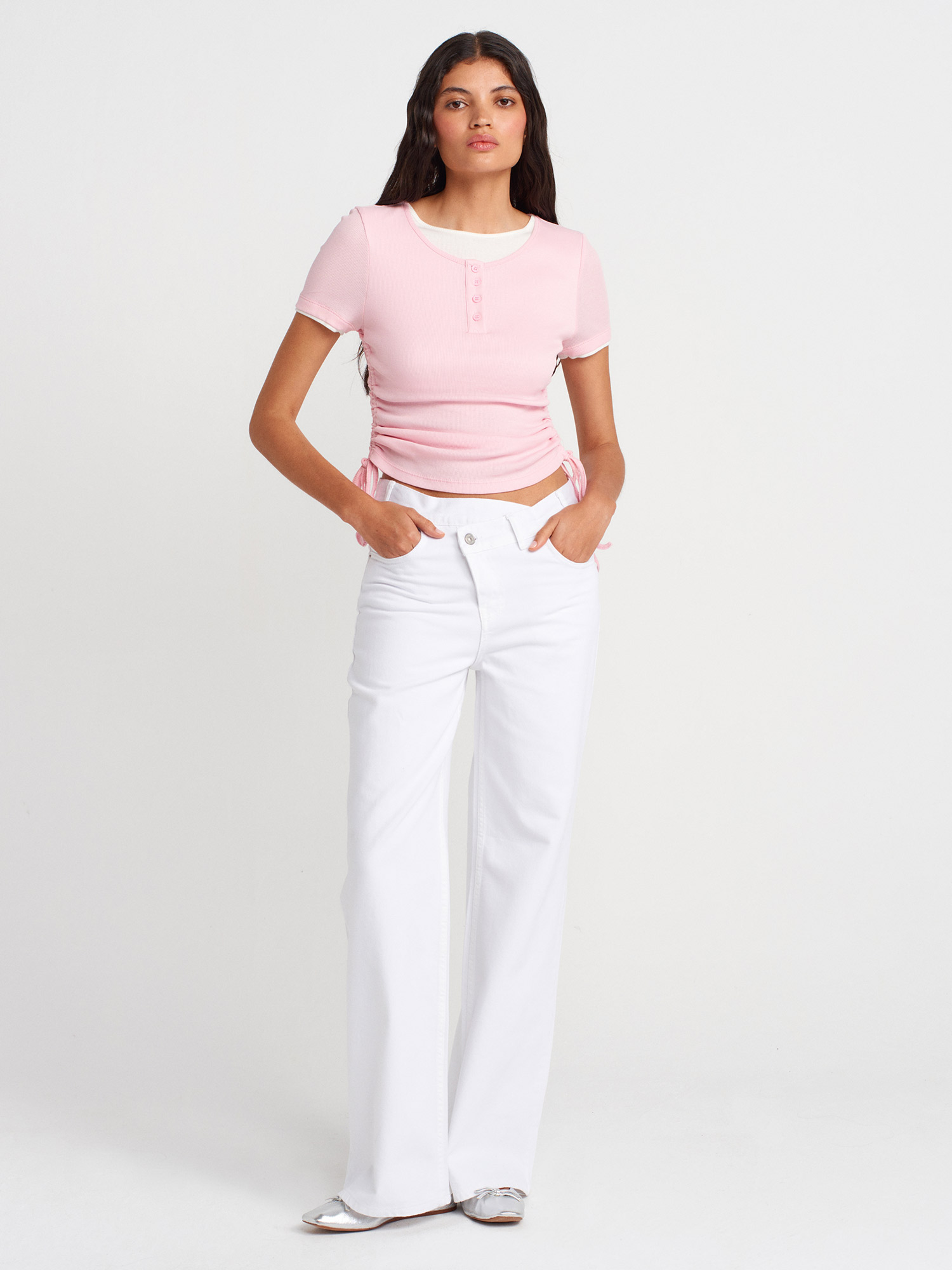 31816 Çift Katlı Büzgülü T-shirt-Toz Pembe
