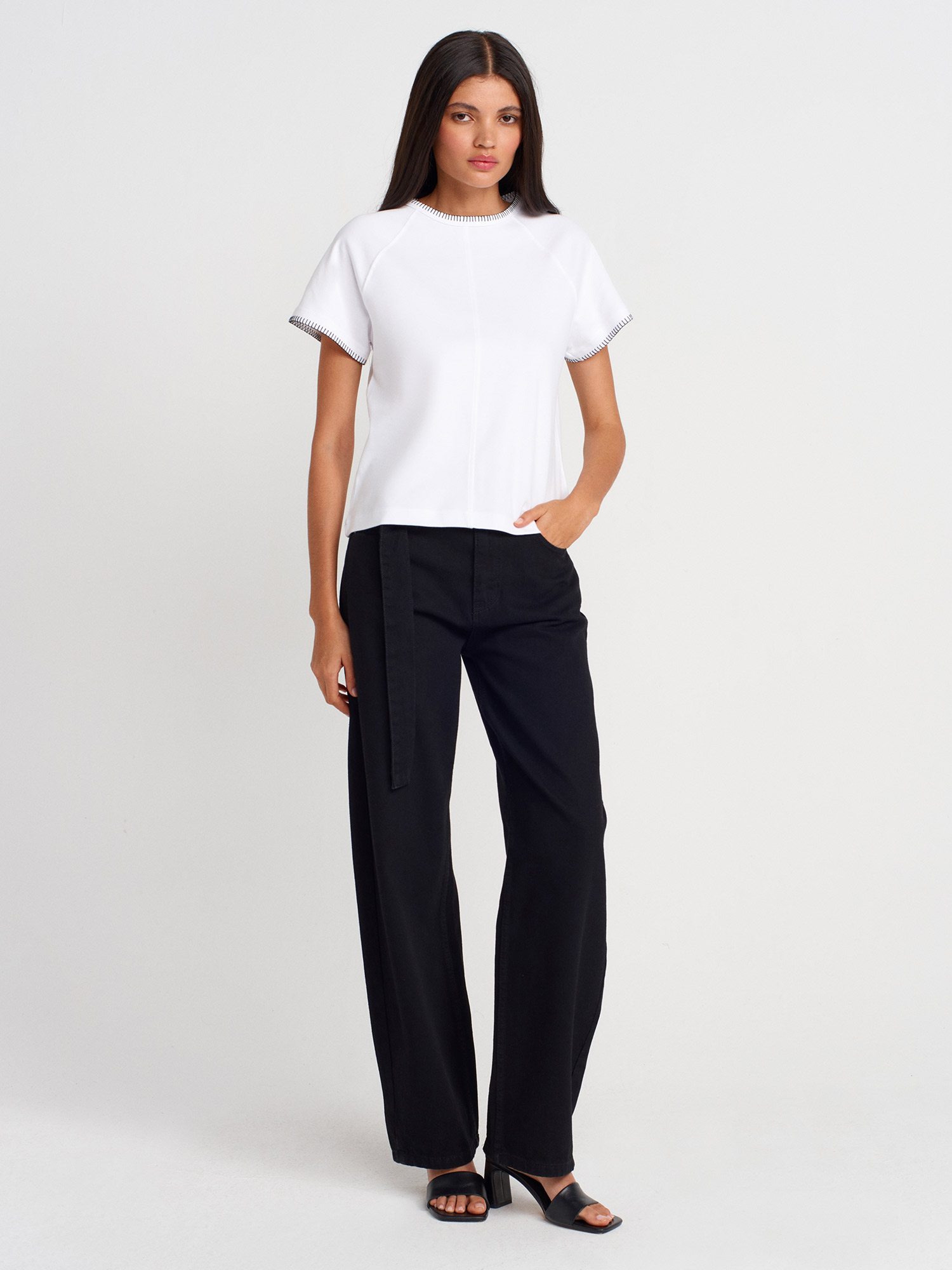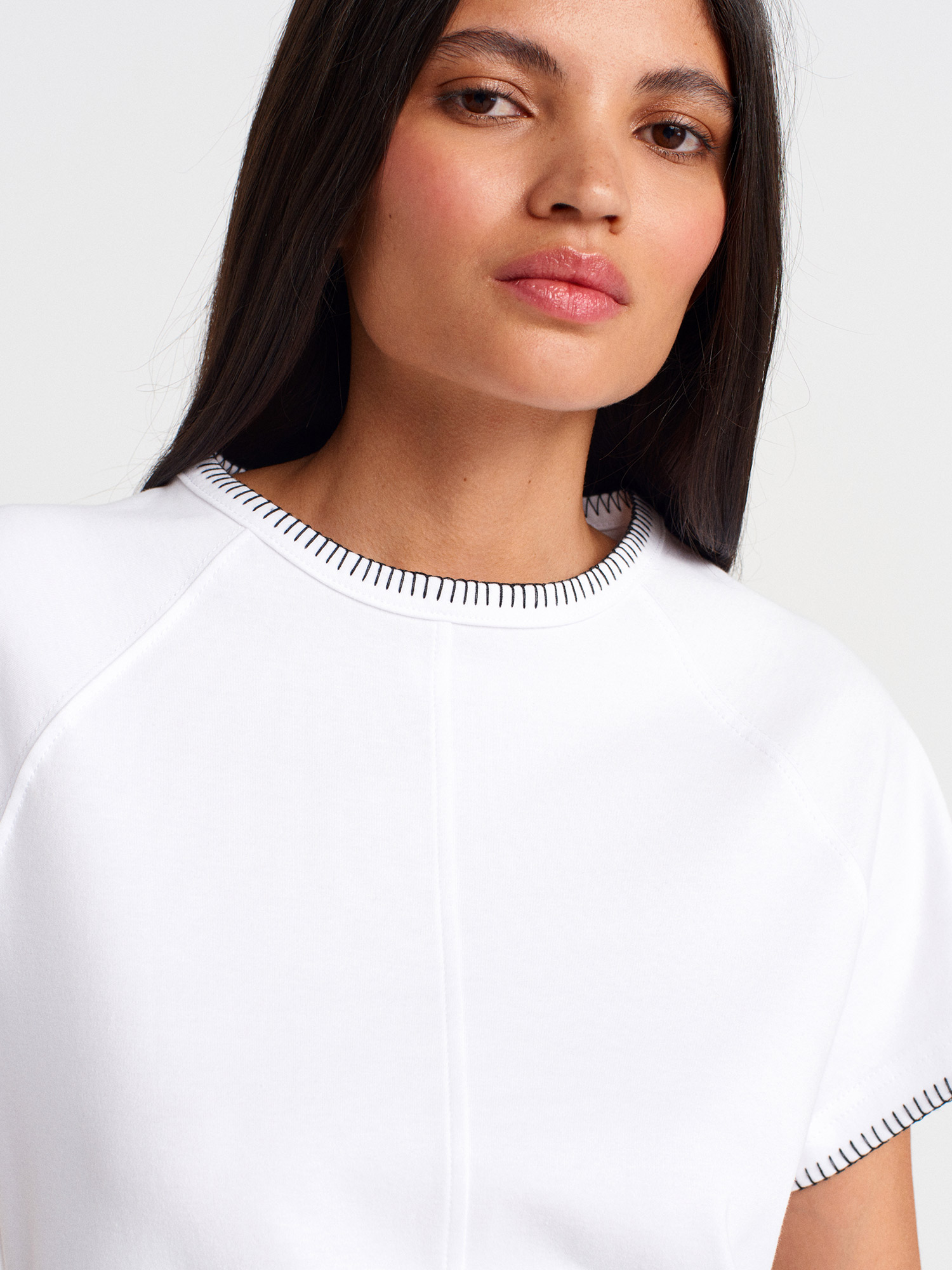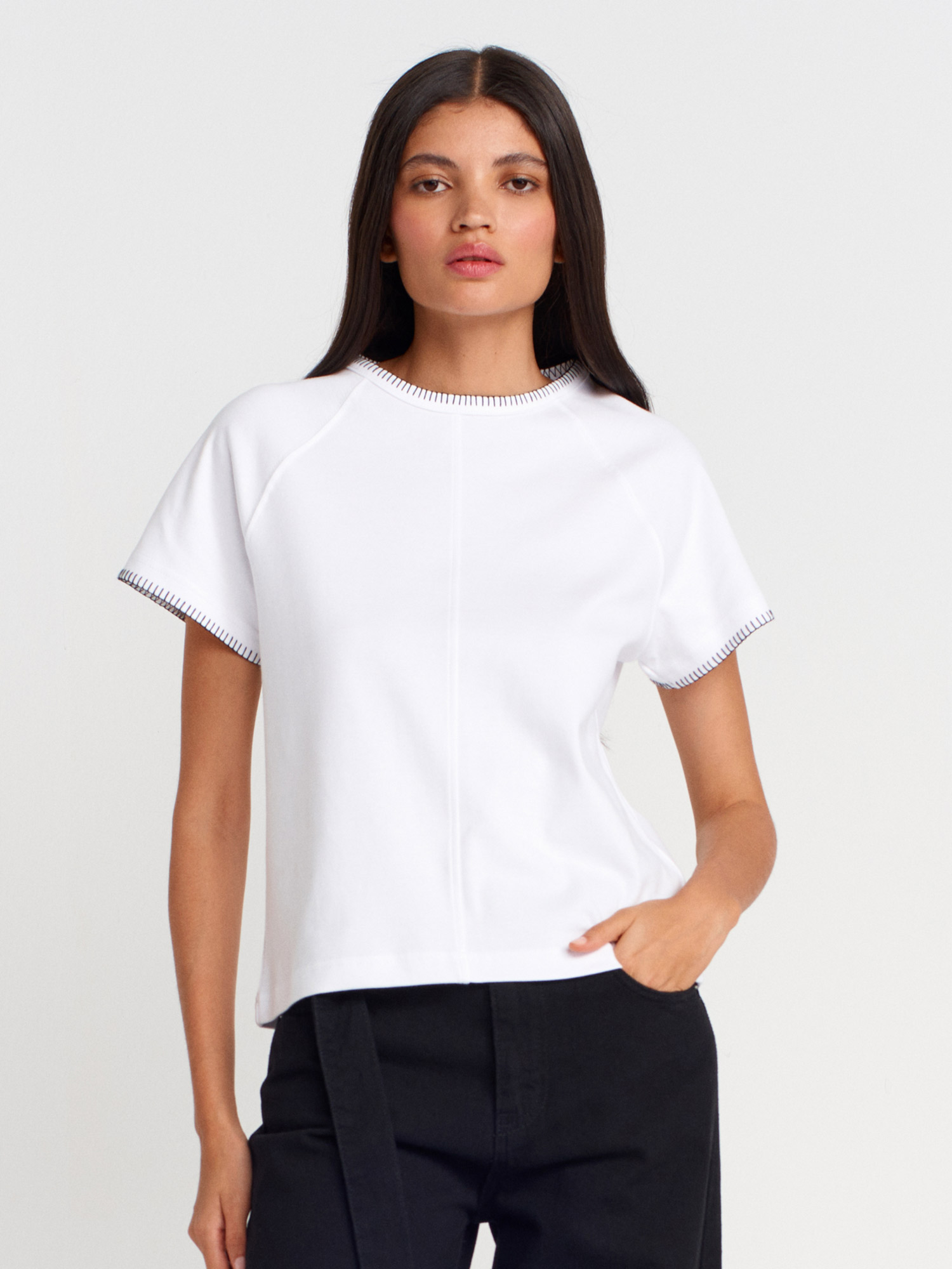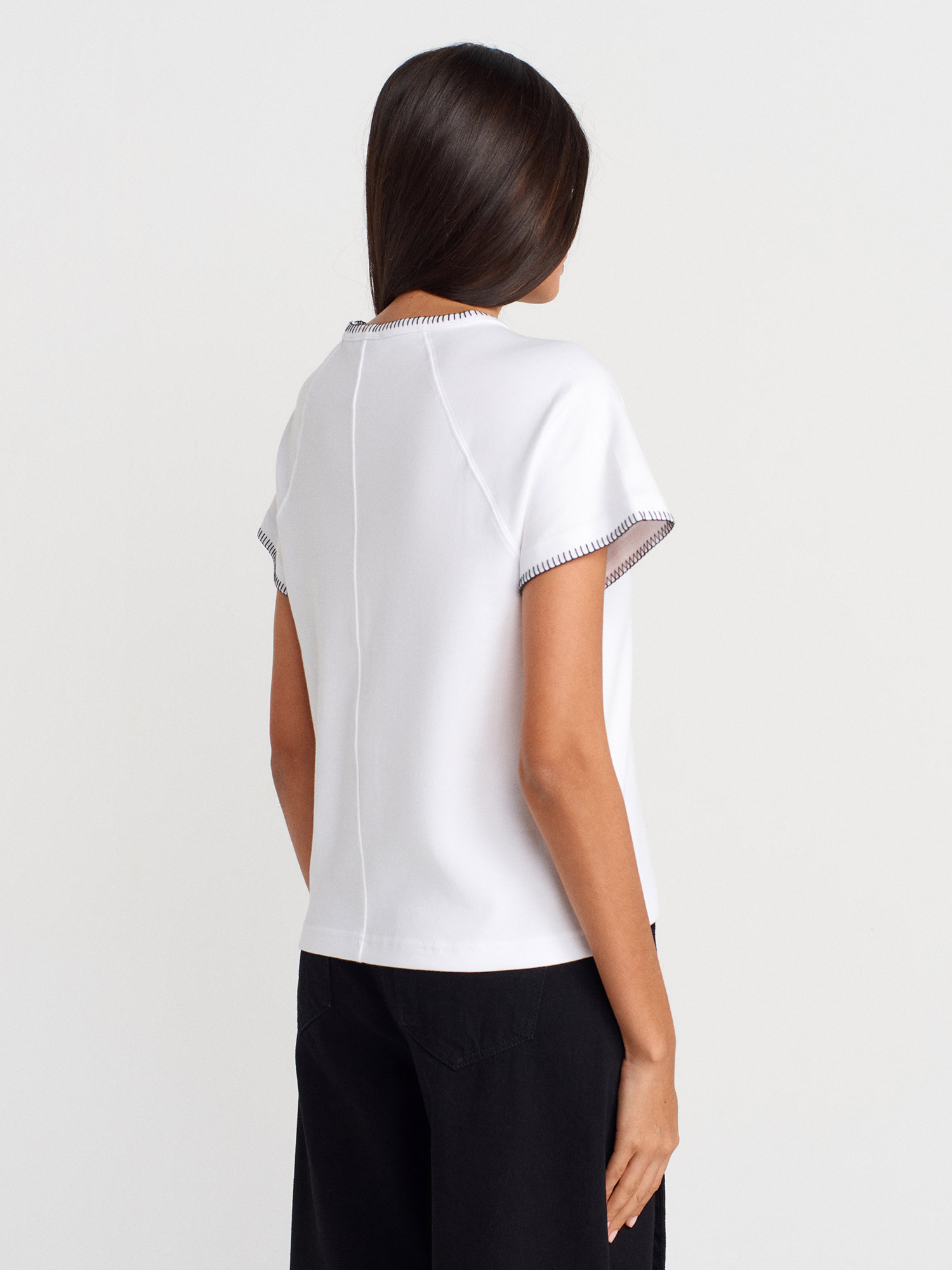 31824 Reglan Kol Kontrast Dikiş Detaylı T-shirt-Beyaz
