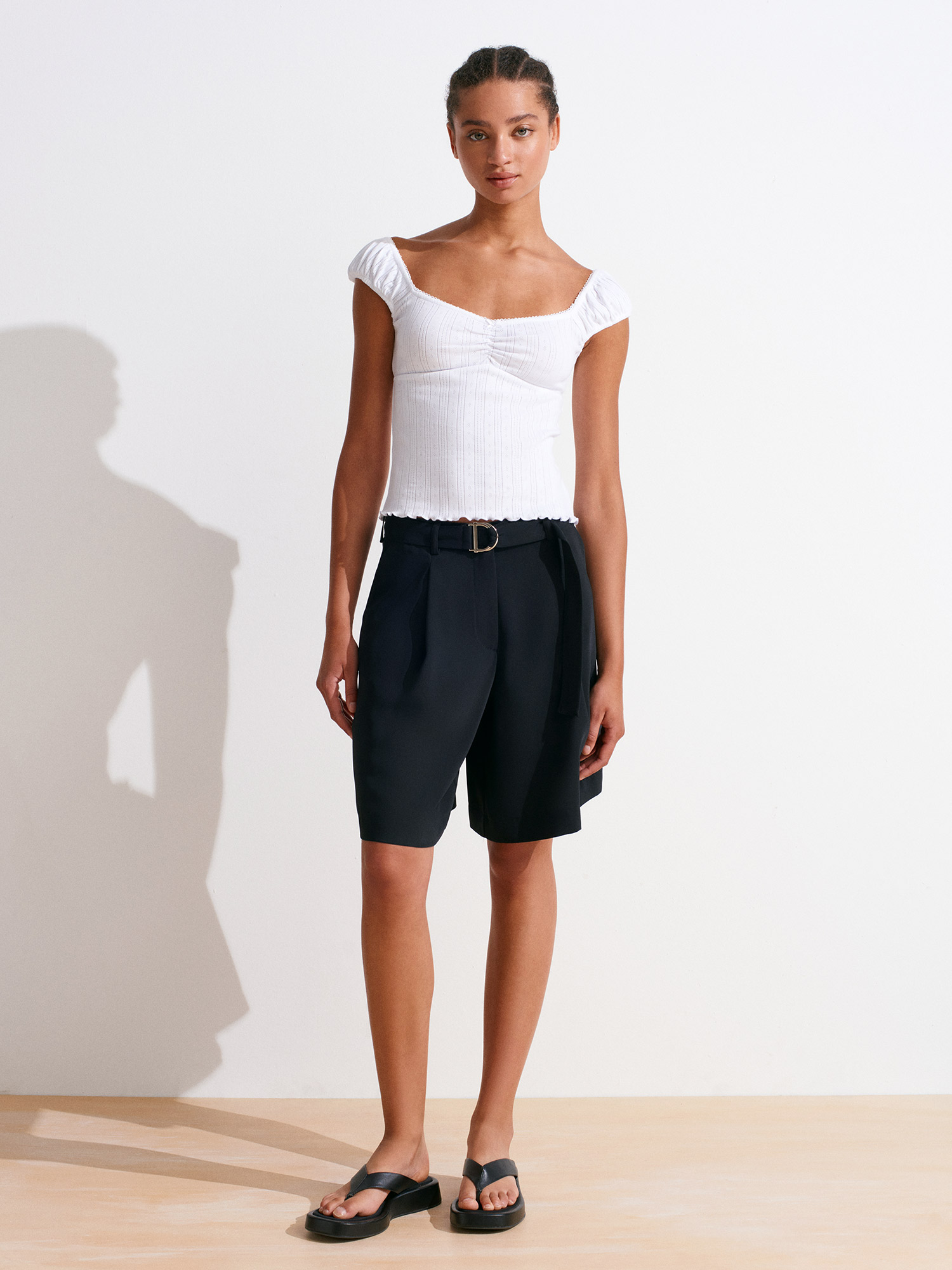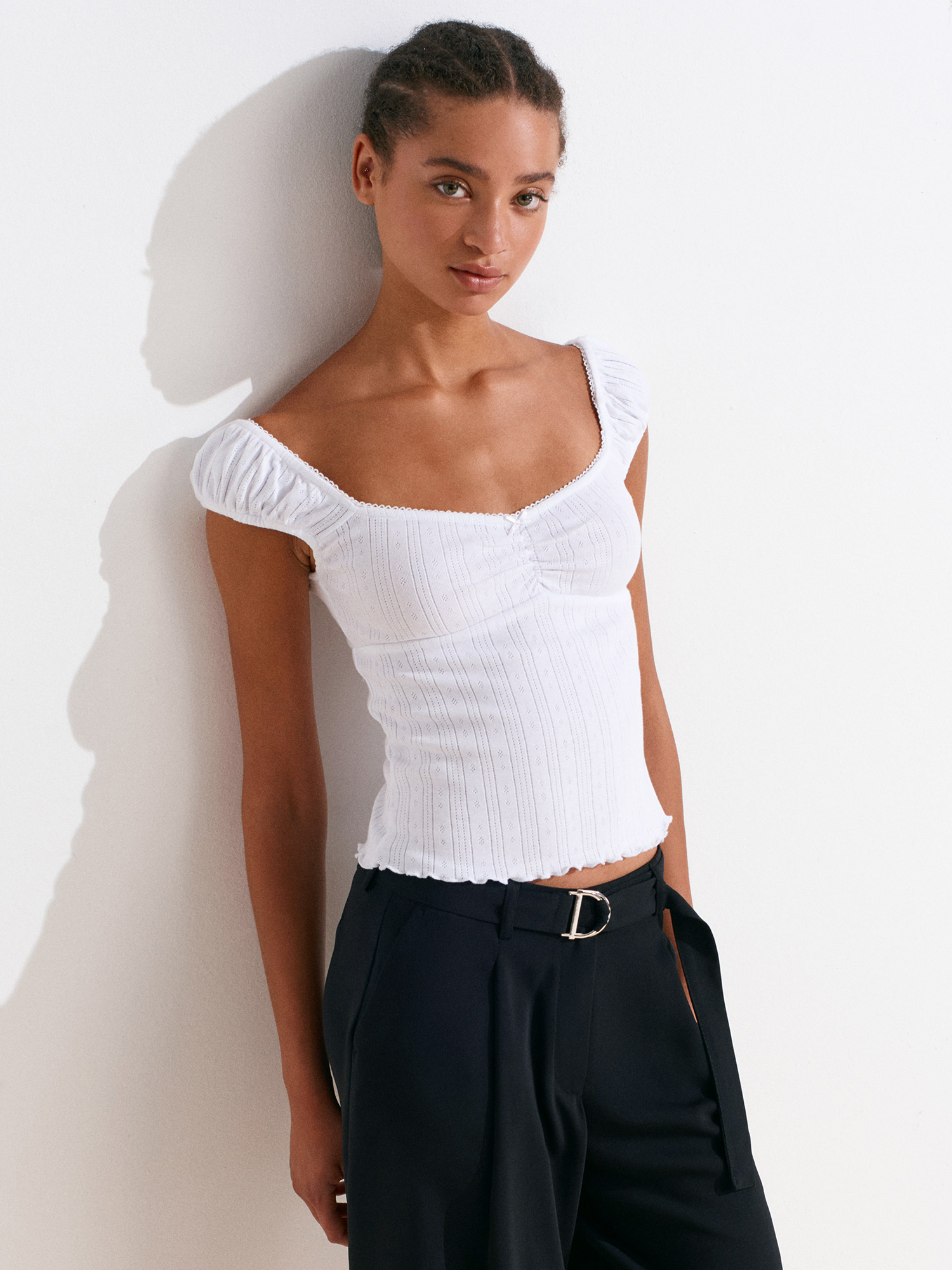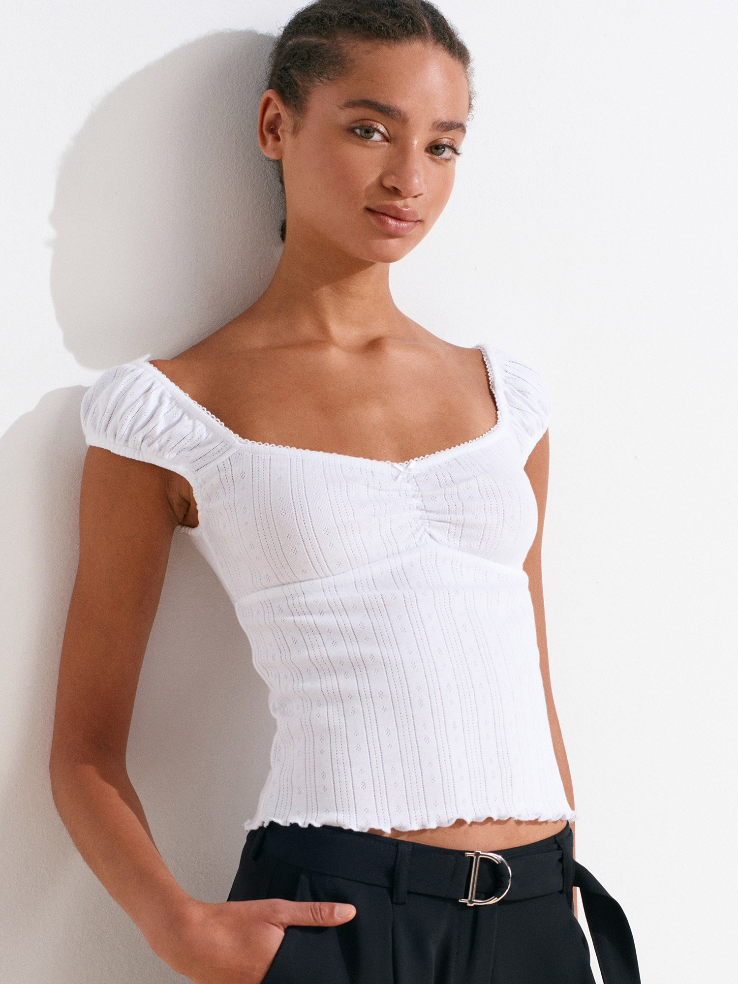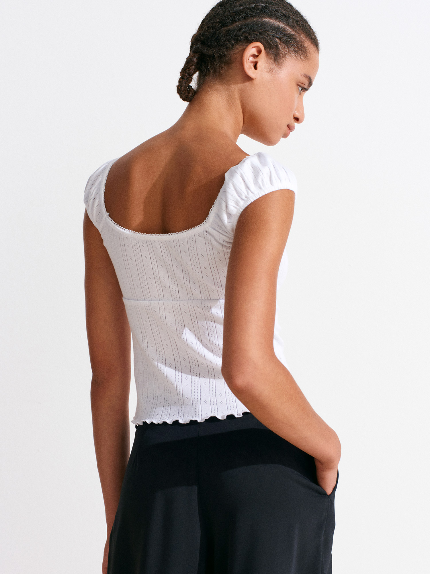 31831 Fiyonk Detaylı Kısa Kollu Top-Beyaz