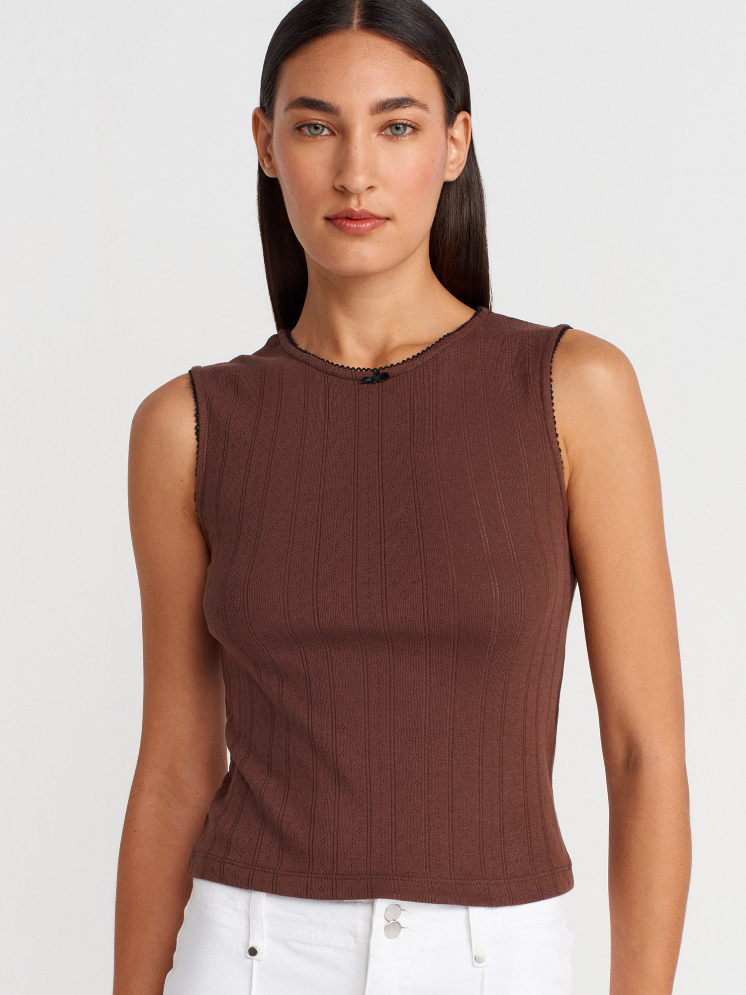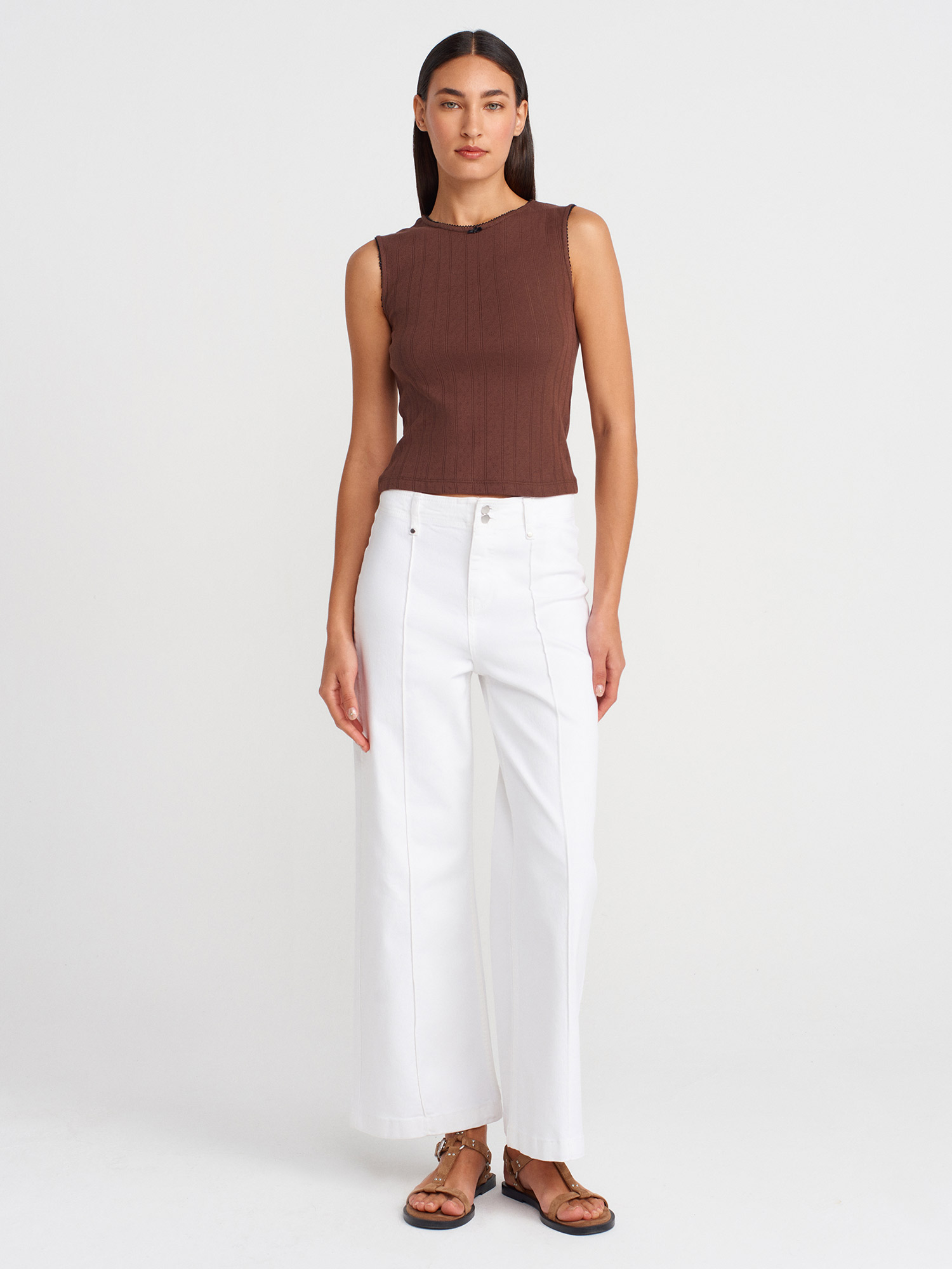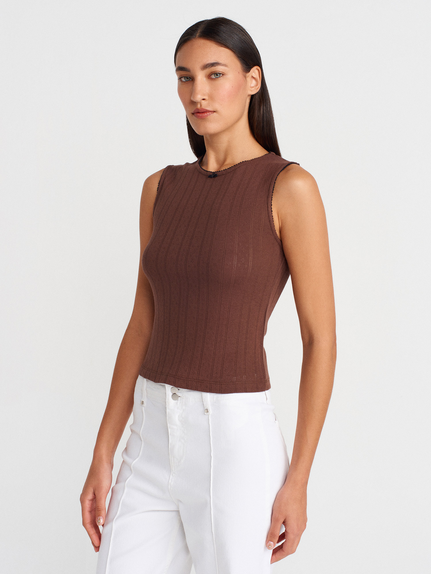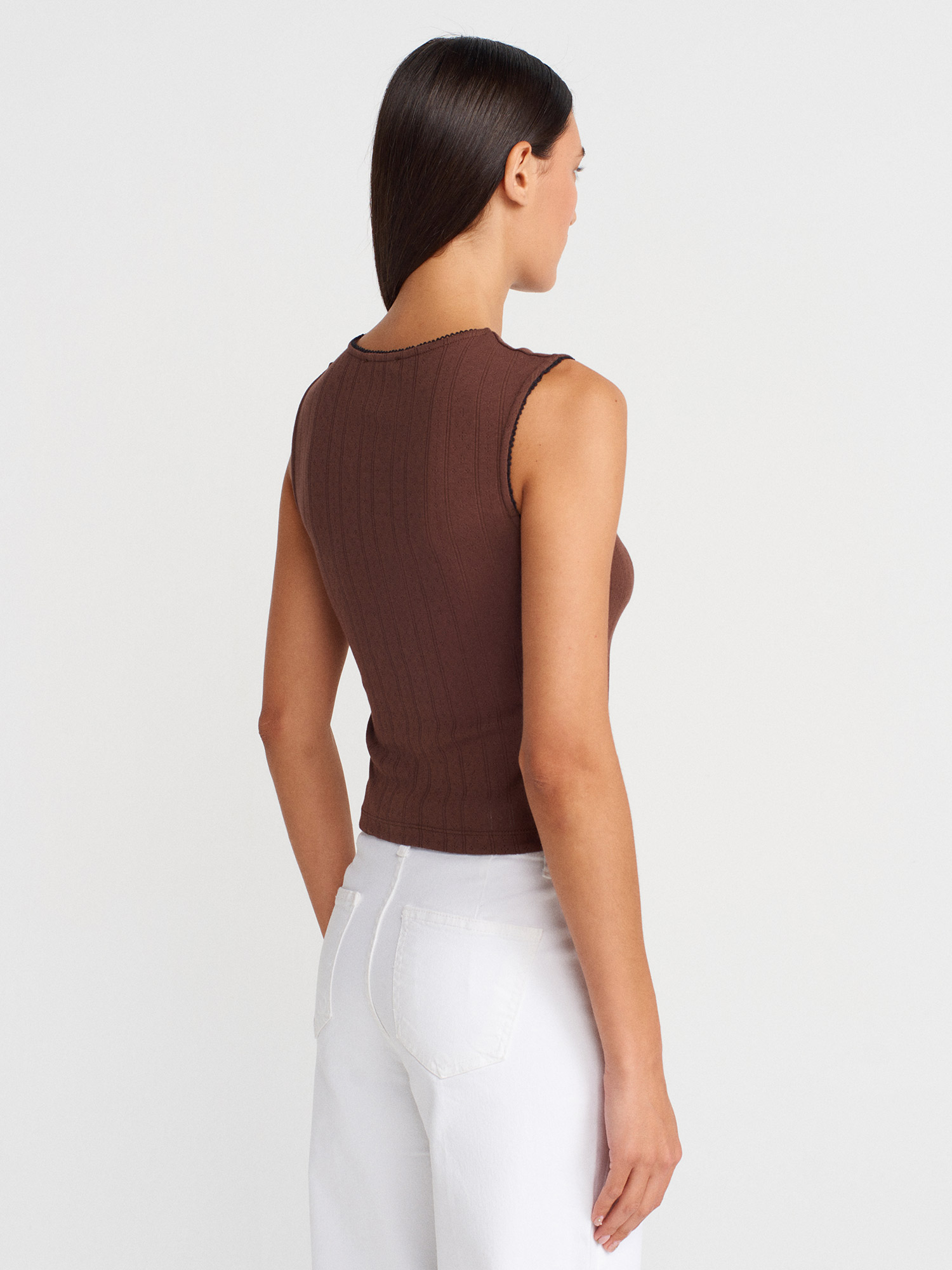 31835 Gül Detaylı Kolsuz Top-Açık Kahve