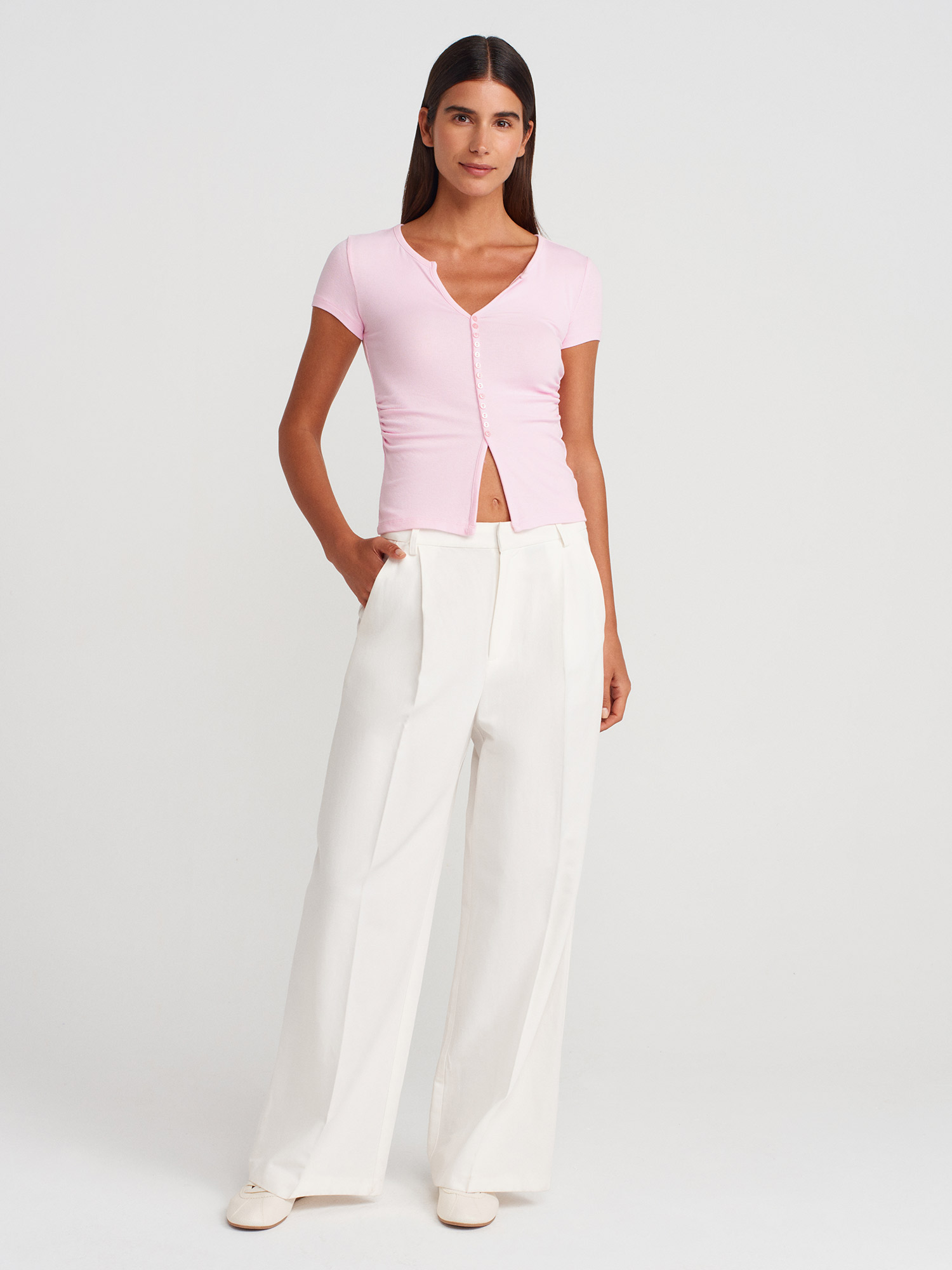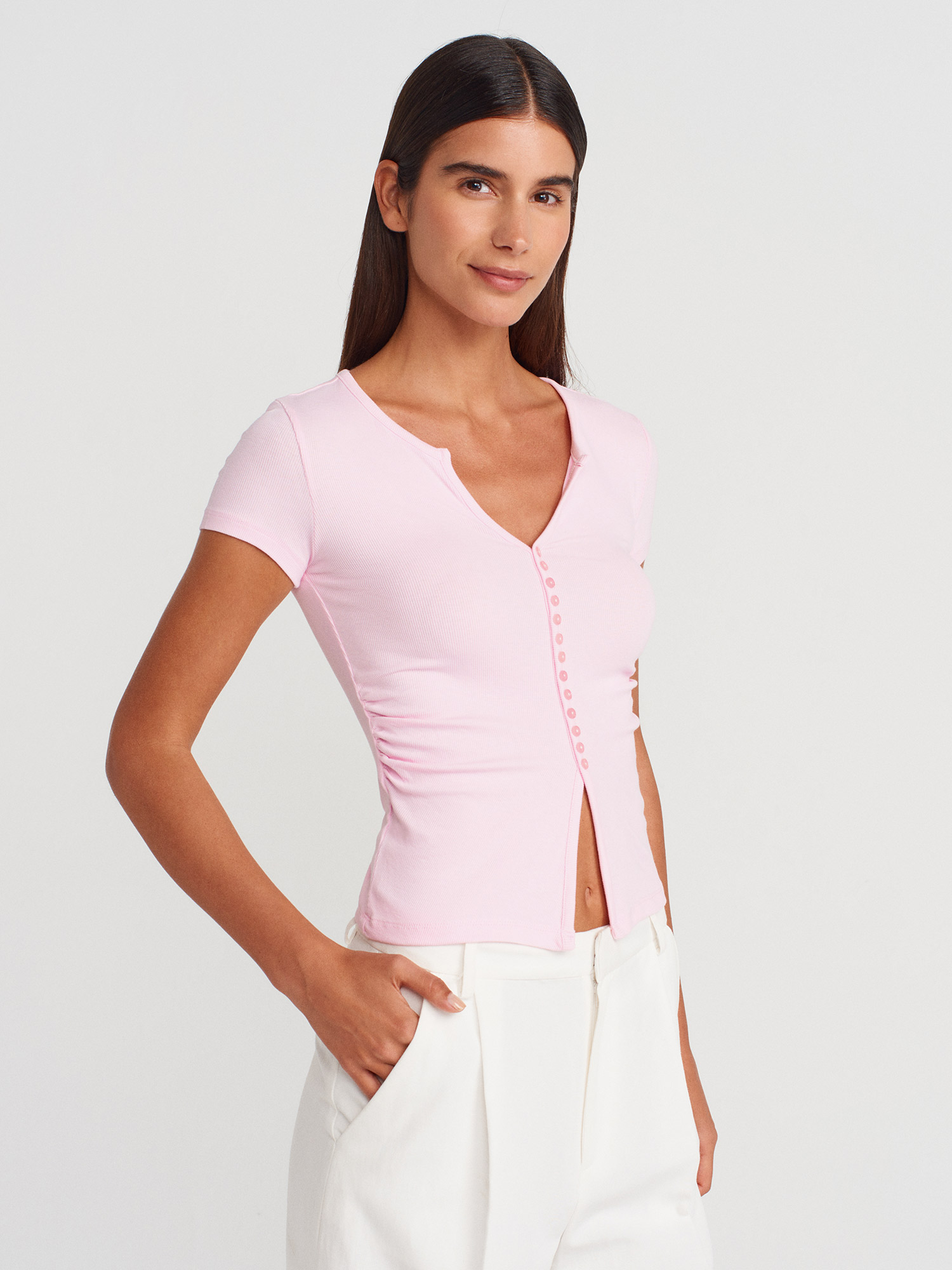 31838 Düğmeli Kısa Kollu Top-Açık Pembe