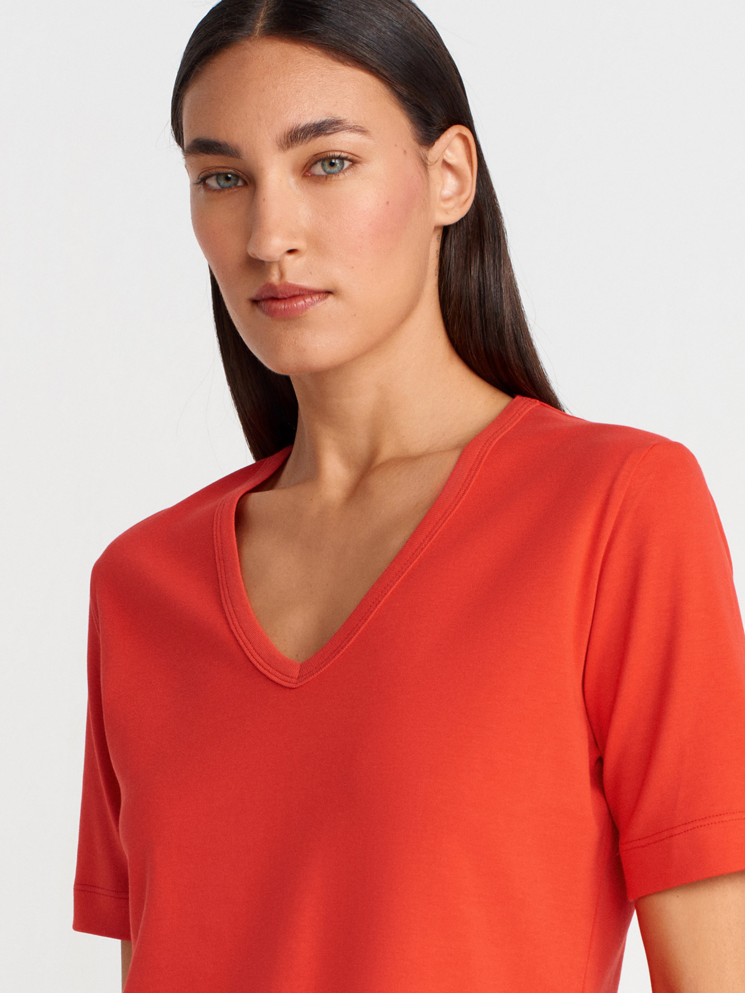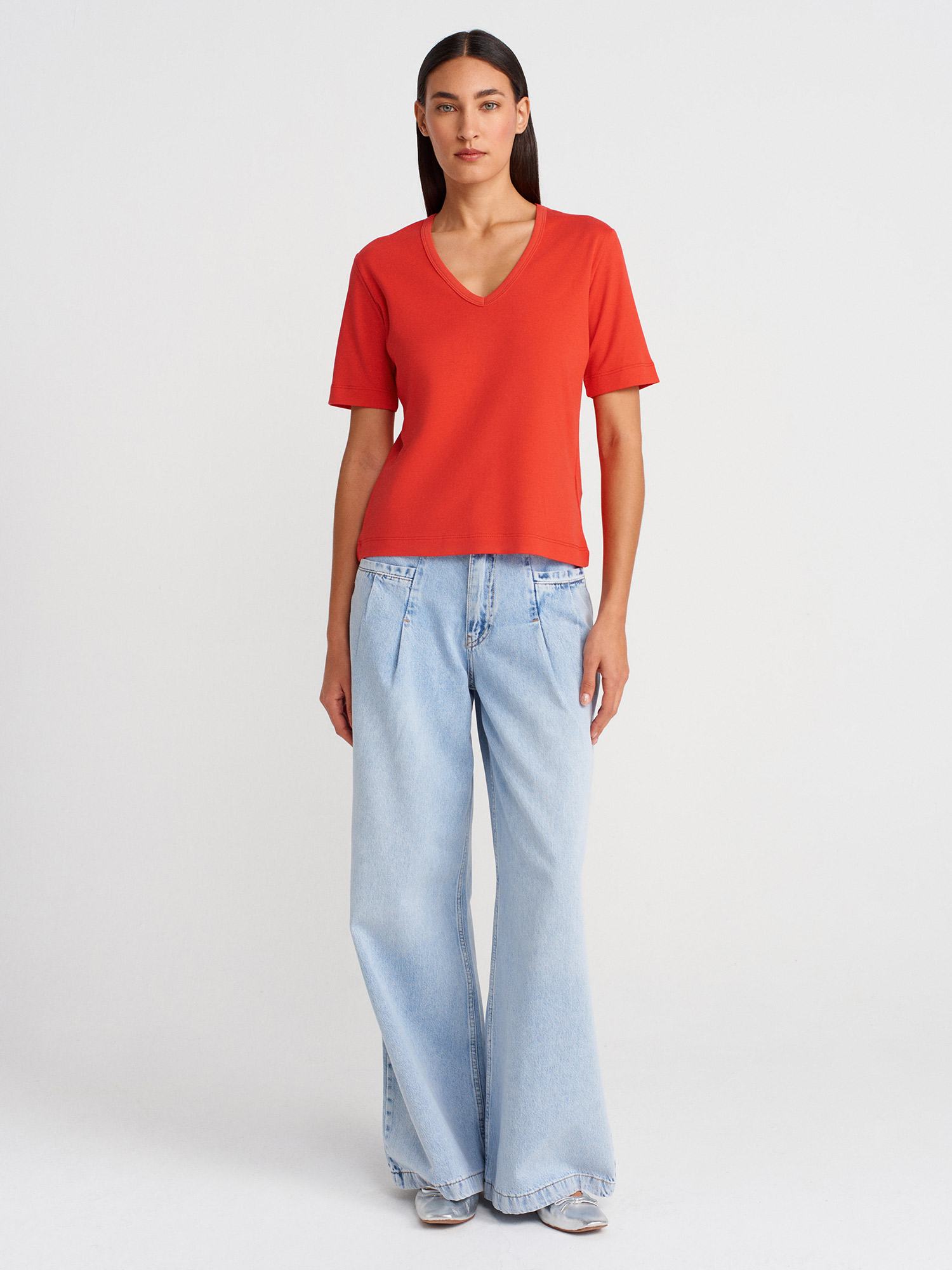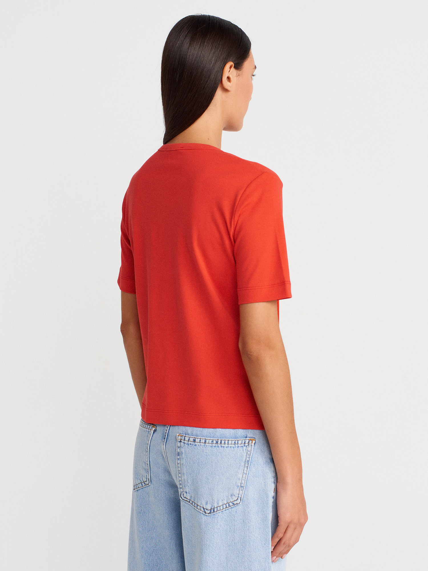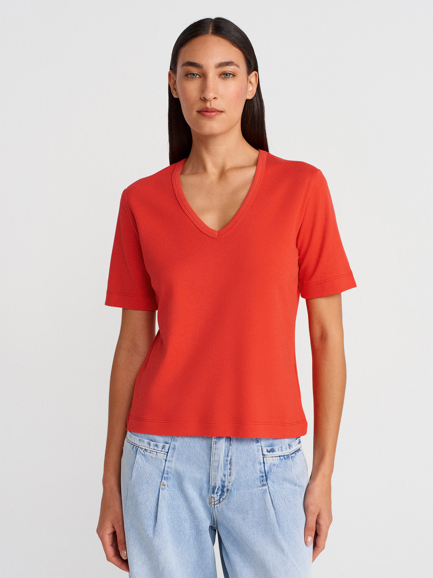 31840 V Yaka Kısa Kollu T-shirt-Kırmızı