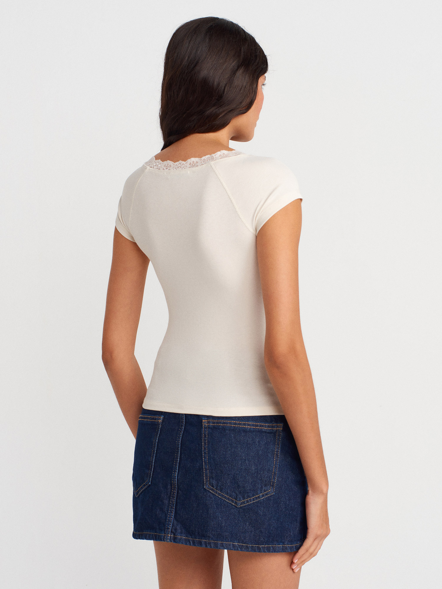 31845 Dantel Detaylı Düğmeli Top-Taş