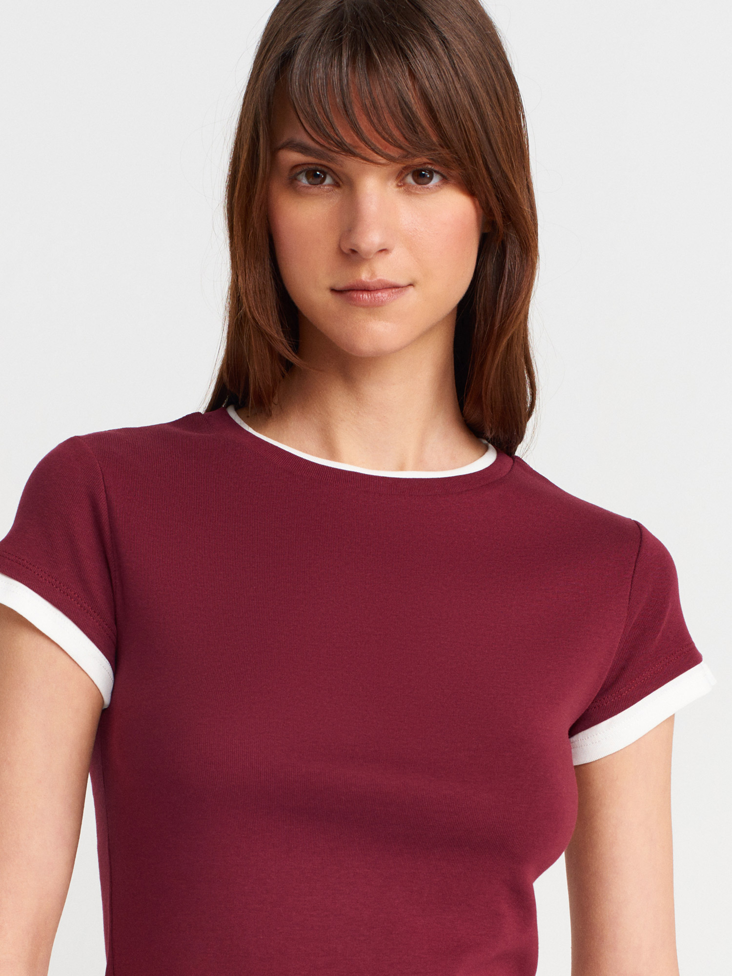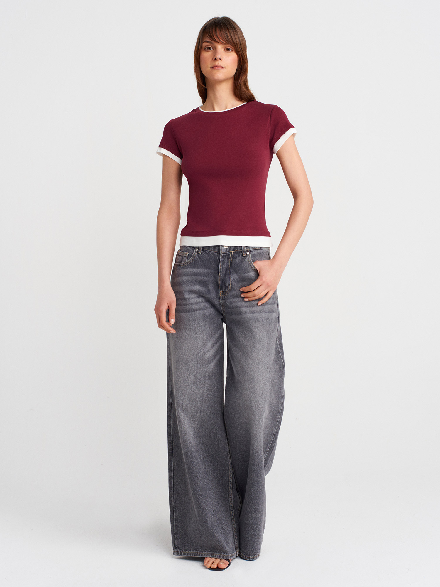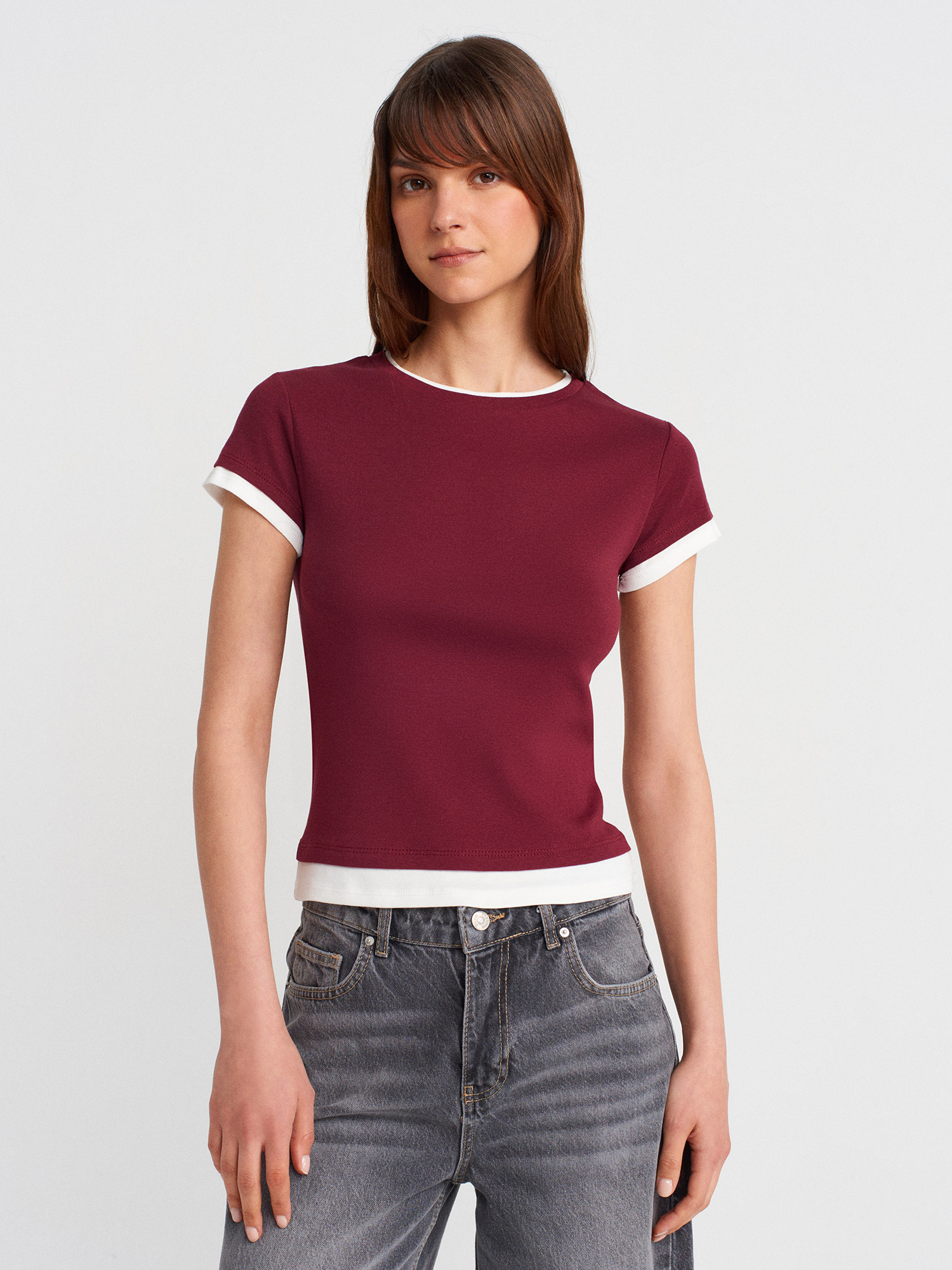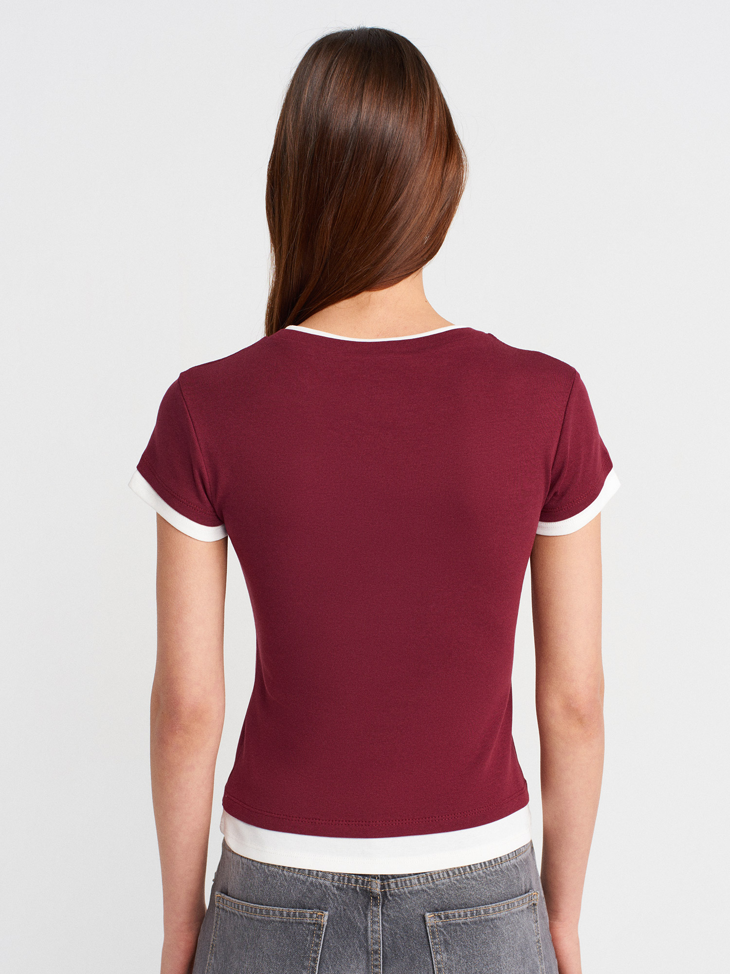 31859 Çift Görünümlü T-shirt-Açık Bordo