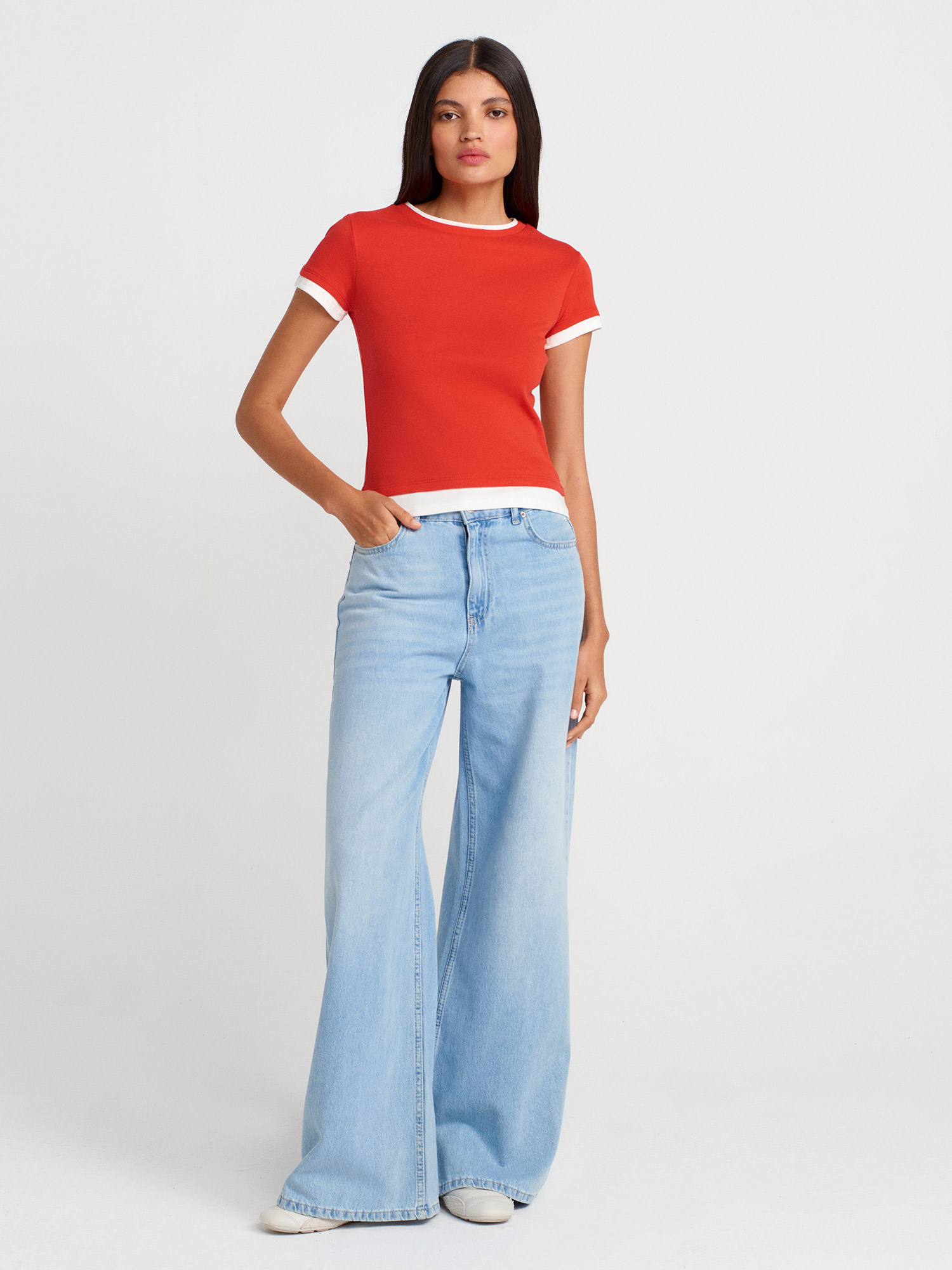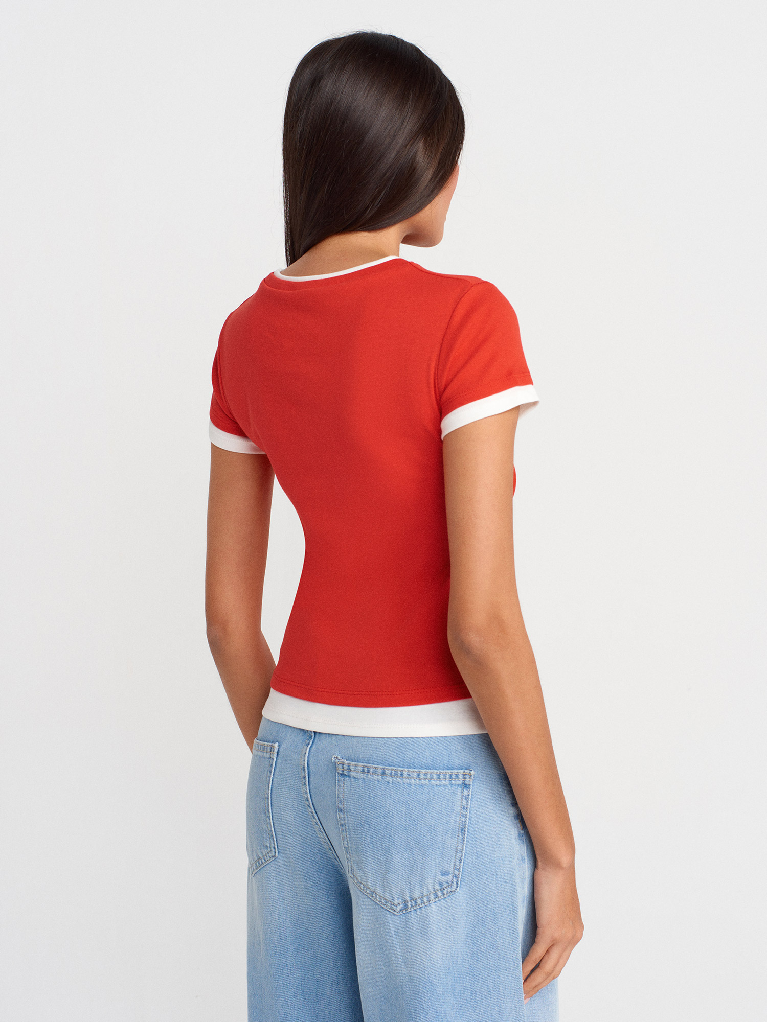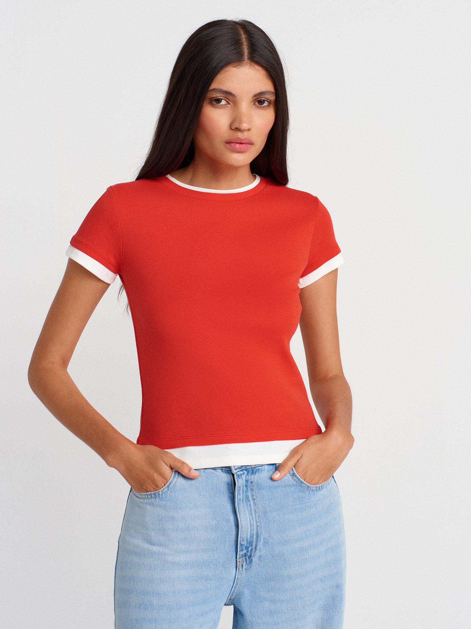 31859 Çift Görünümlü T-shirt-Kırmızı