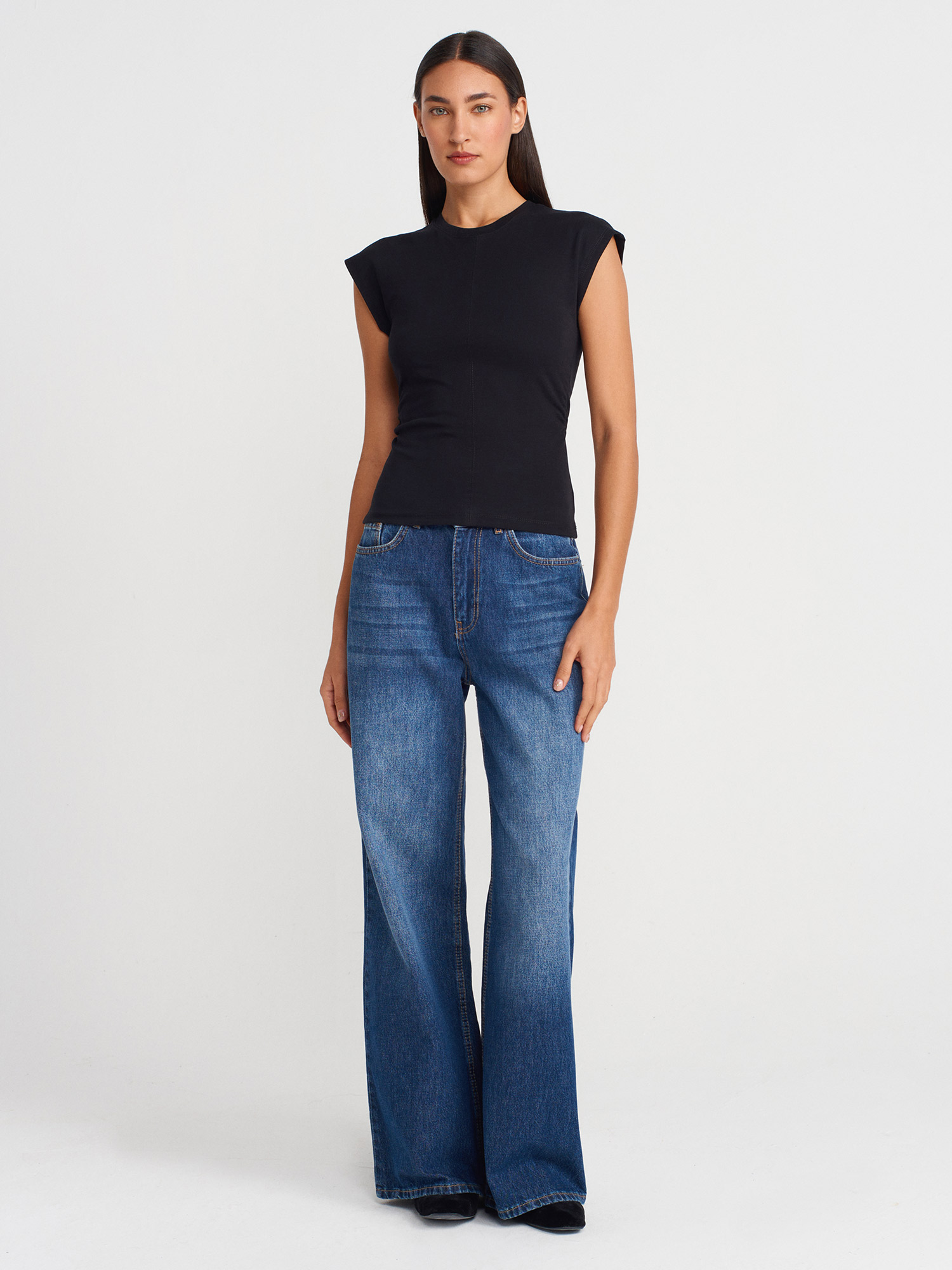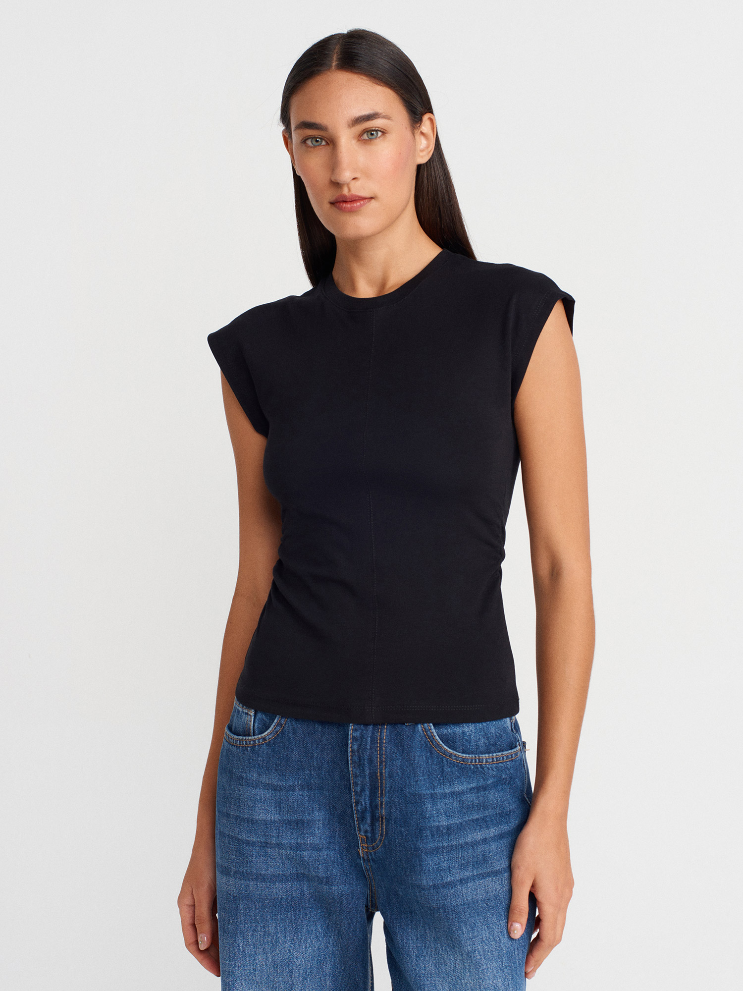 31875 Dikiş Detaylı T-Shirt-Siyah