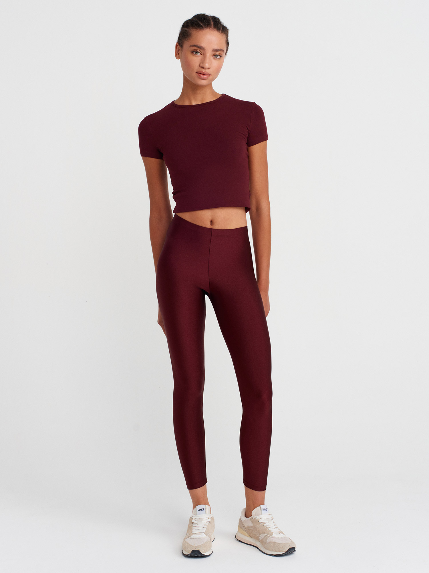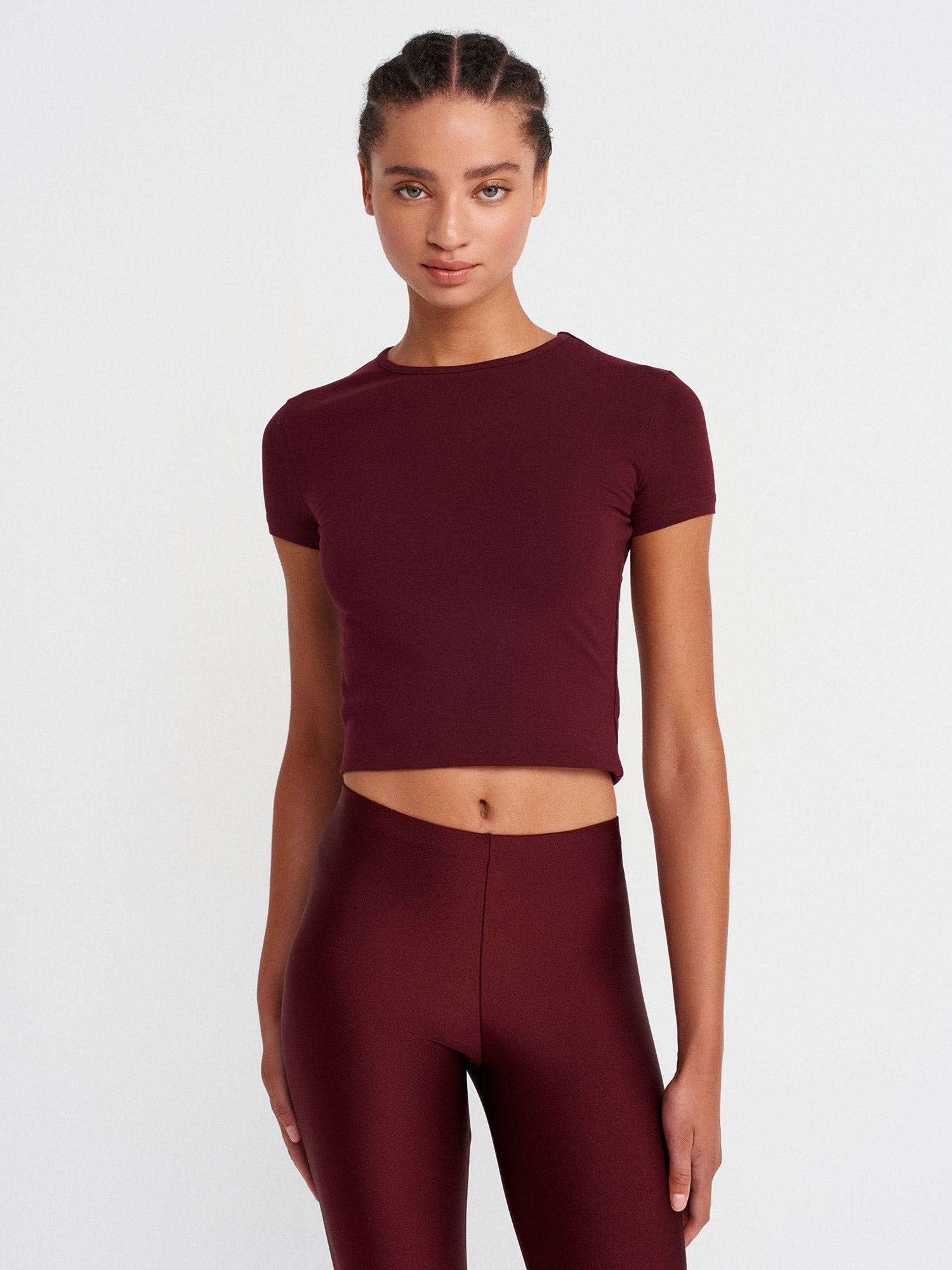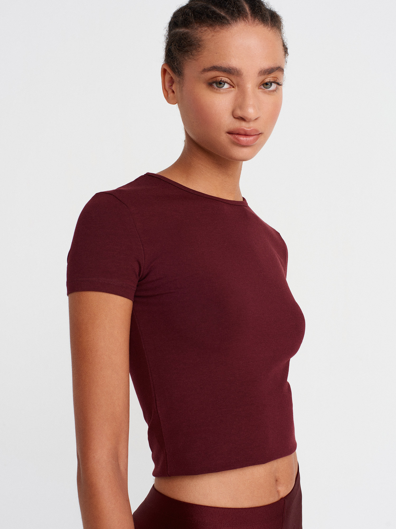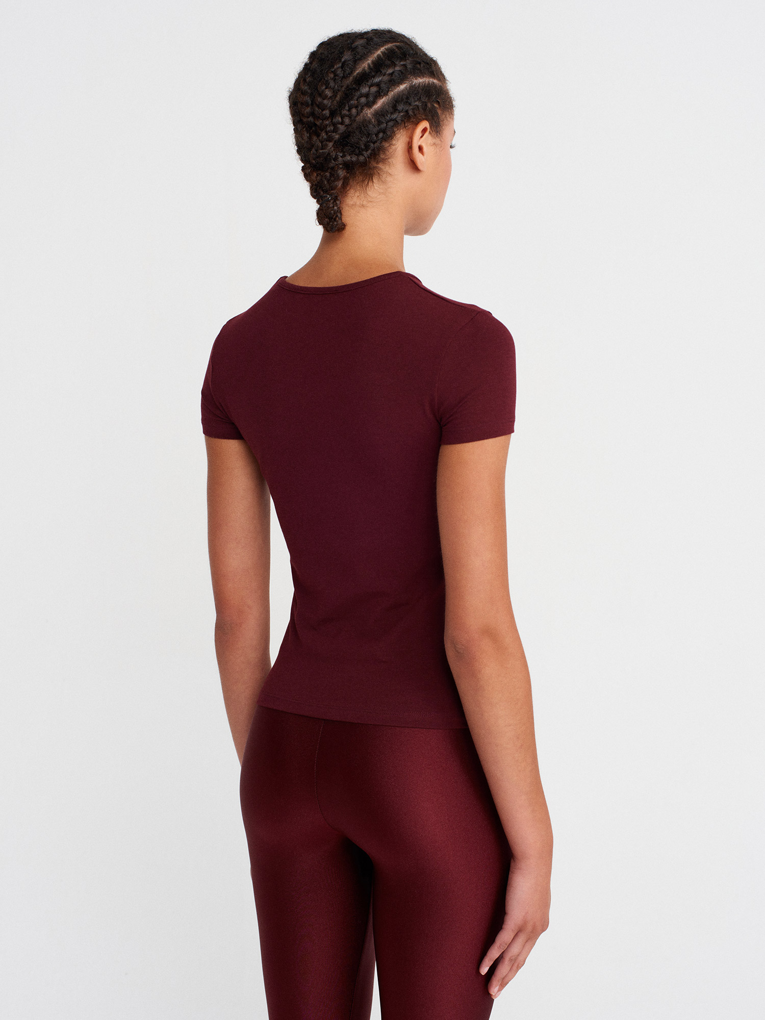 31906 Vücuda Oturan Kısa Kollu T-shirt-Bordo