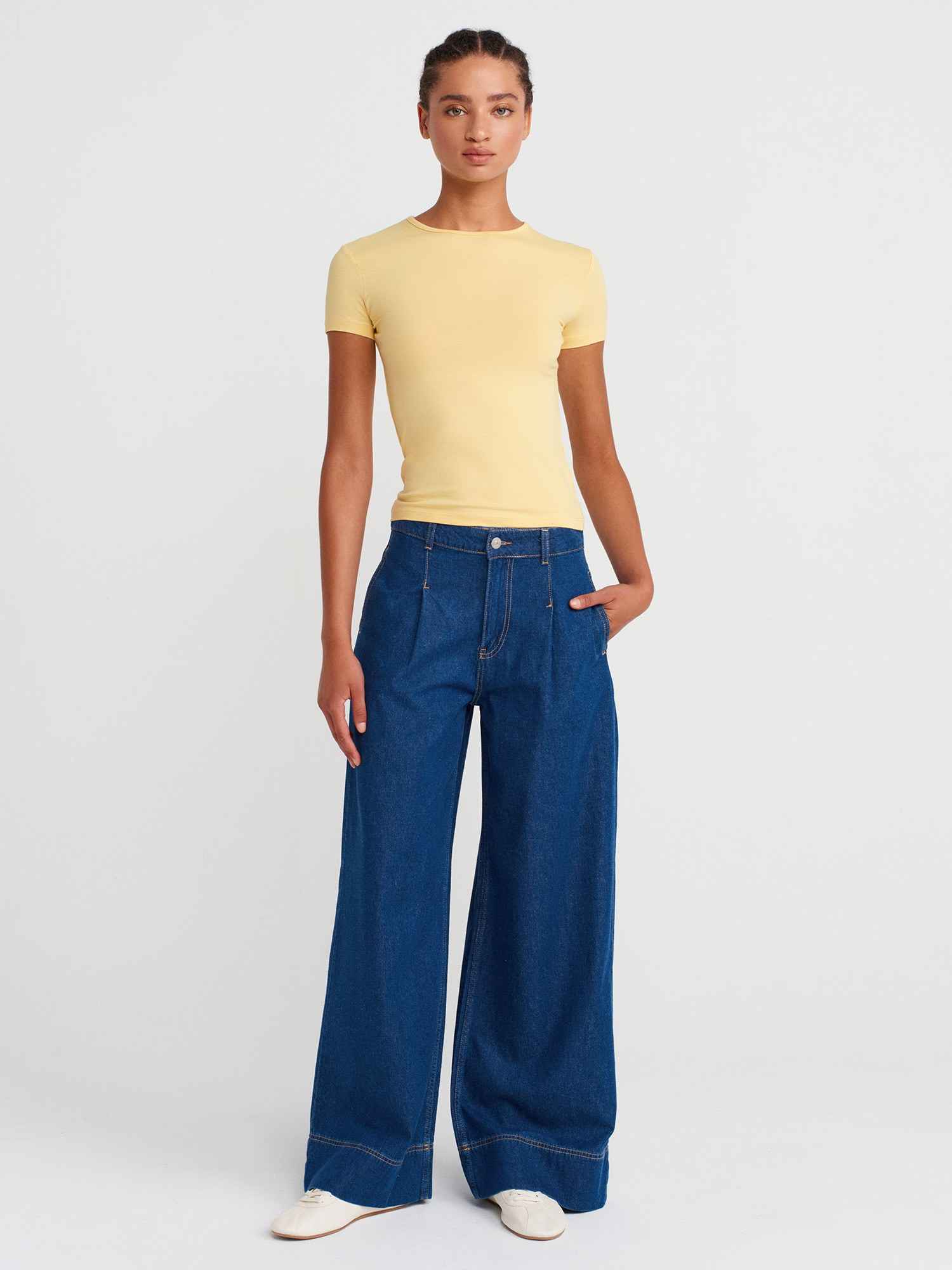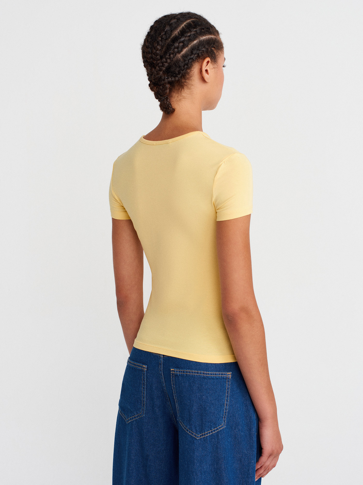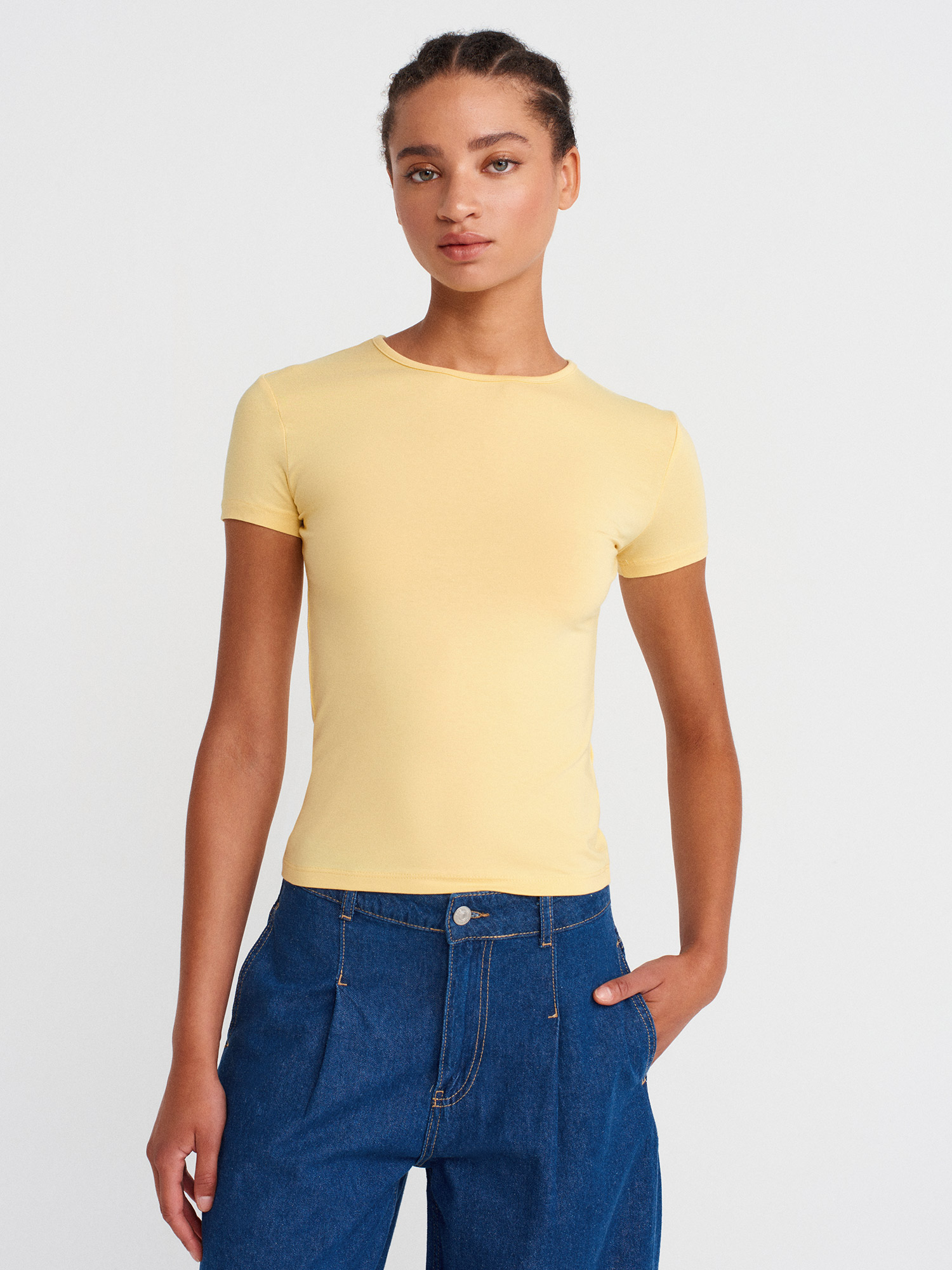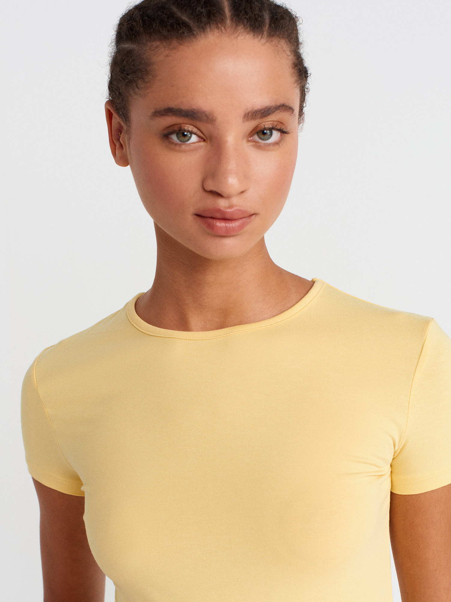31906 Vücuda Oturan Kısa Kollu T-shirt-Sarı
