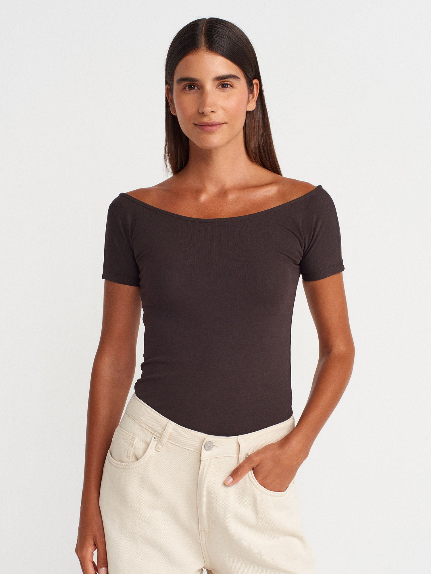 31922 Kısa Kollu T-Shirt-Koyu Kahve
