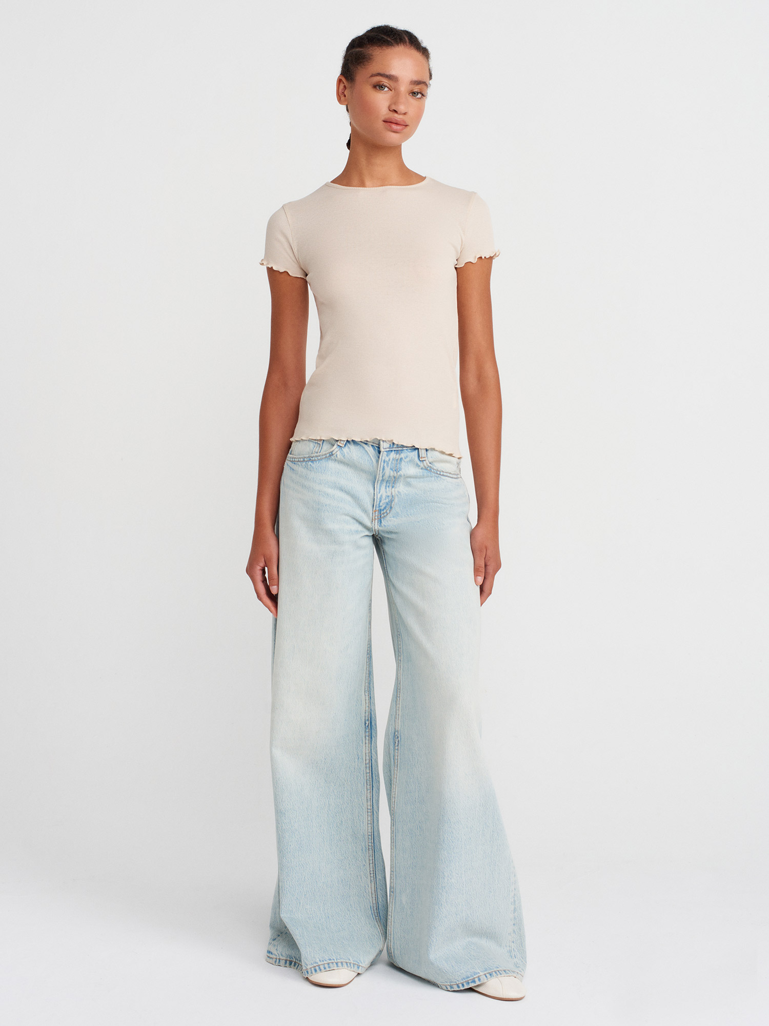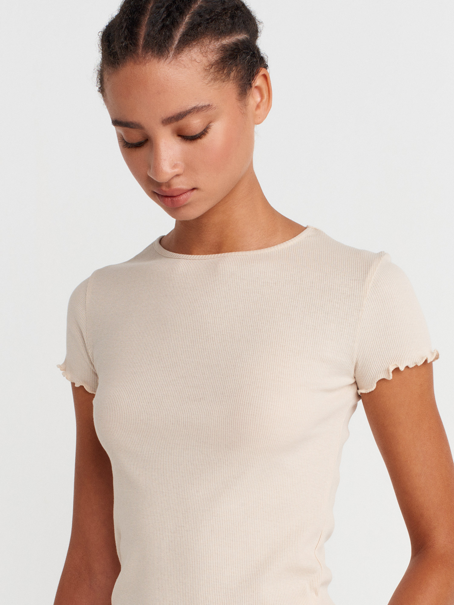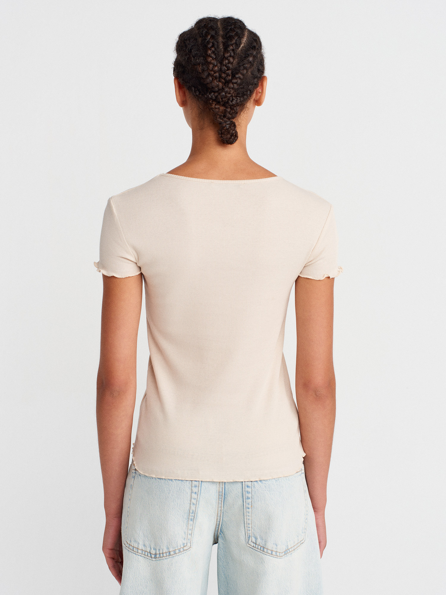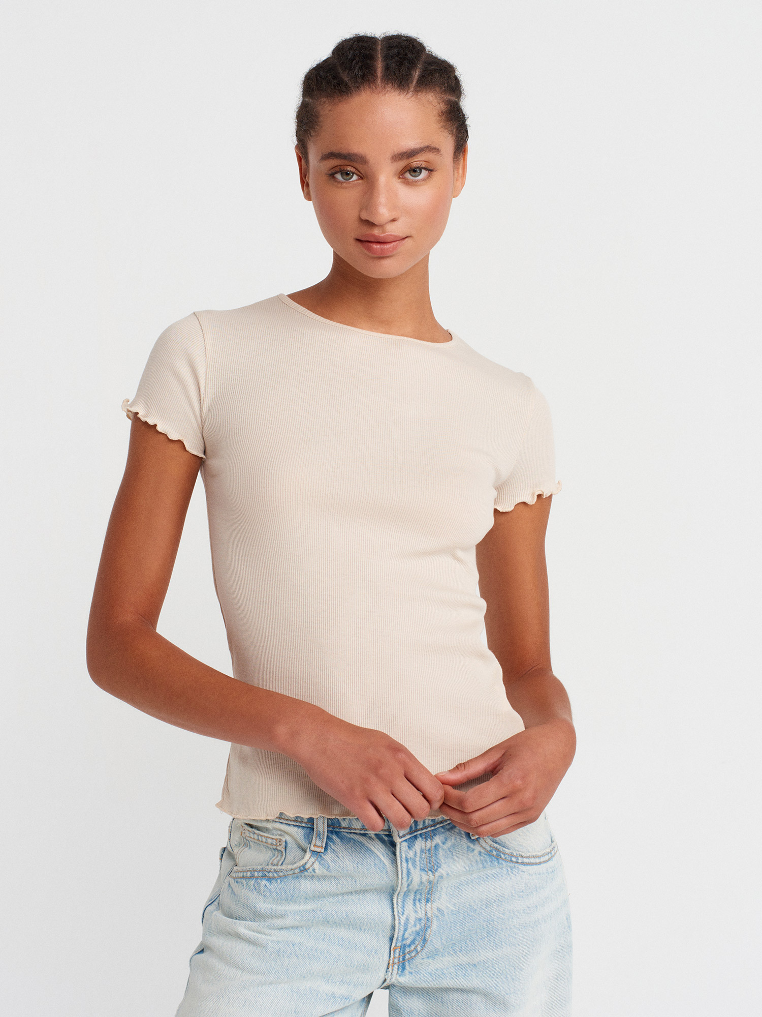 31935 %100 Pamuk Kısa Kollu T-shirt-Bej