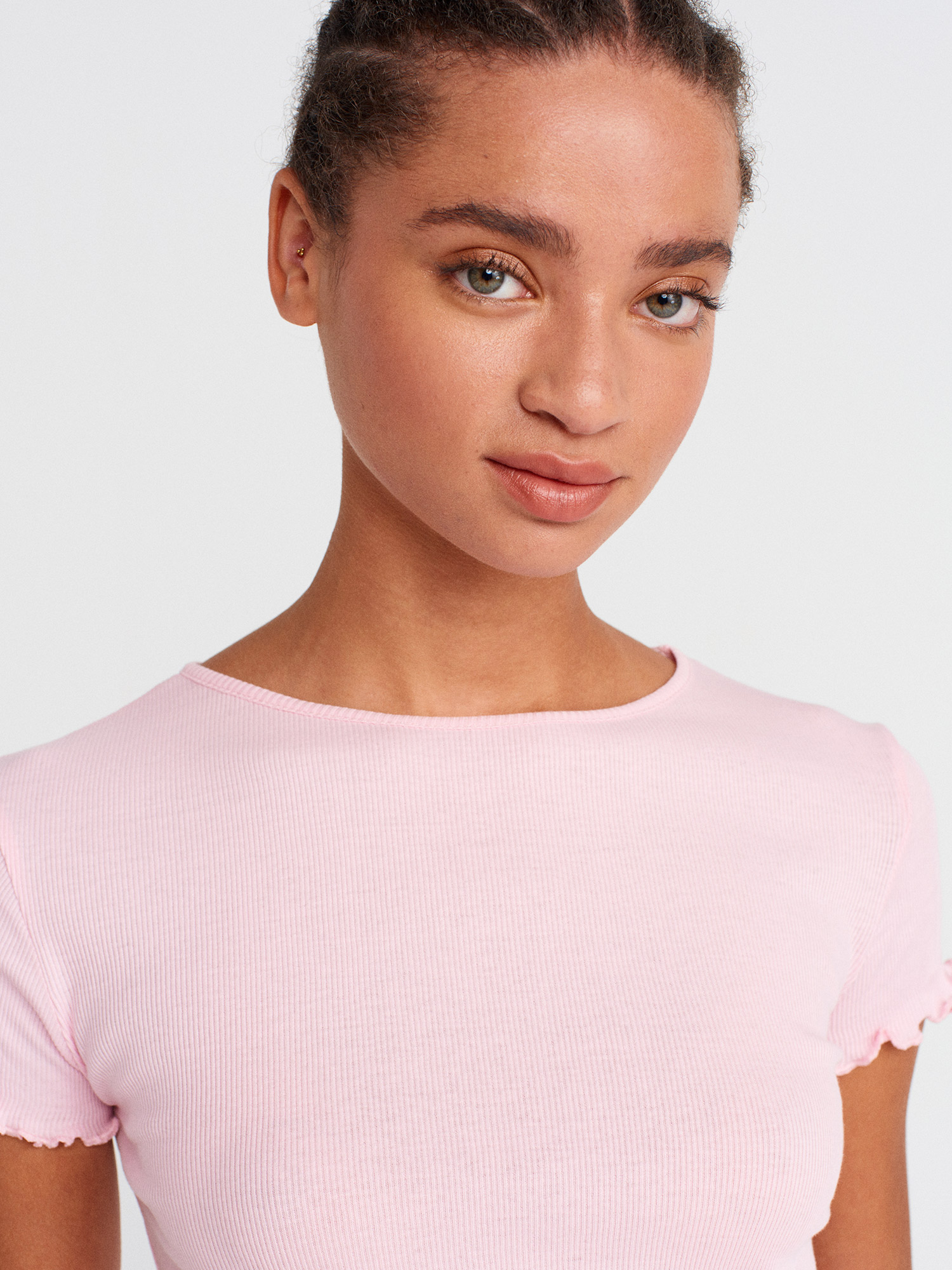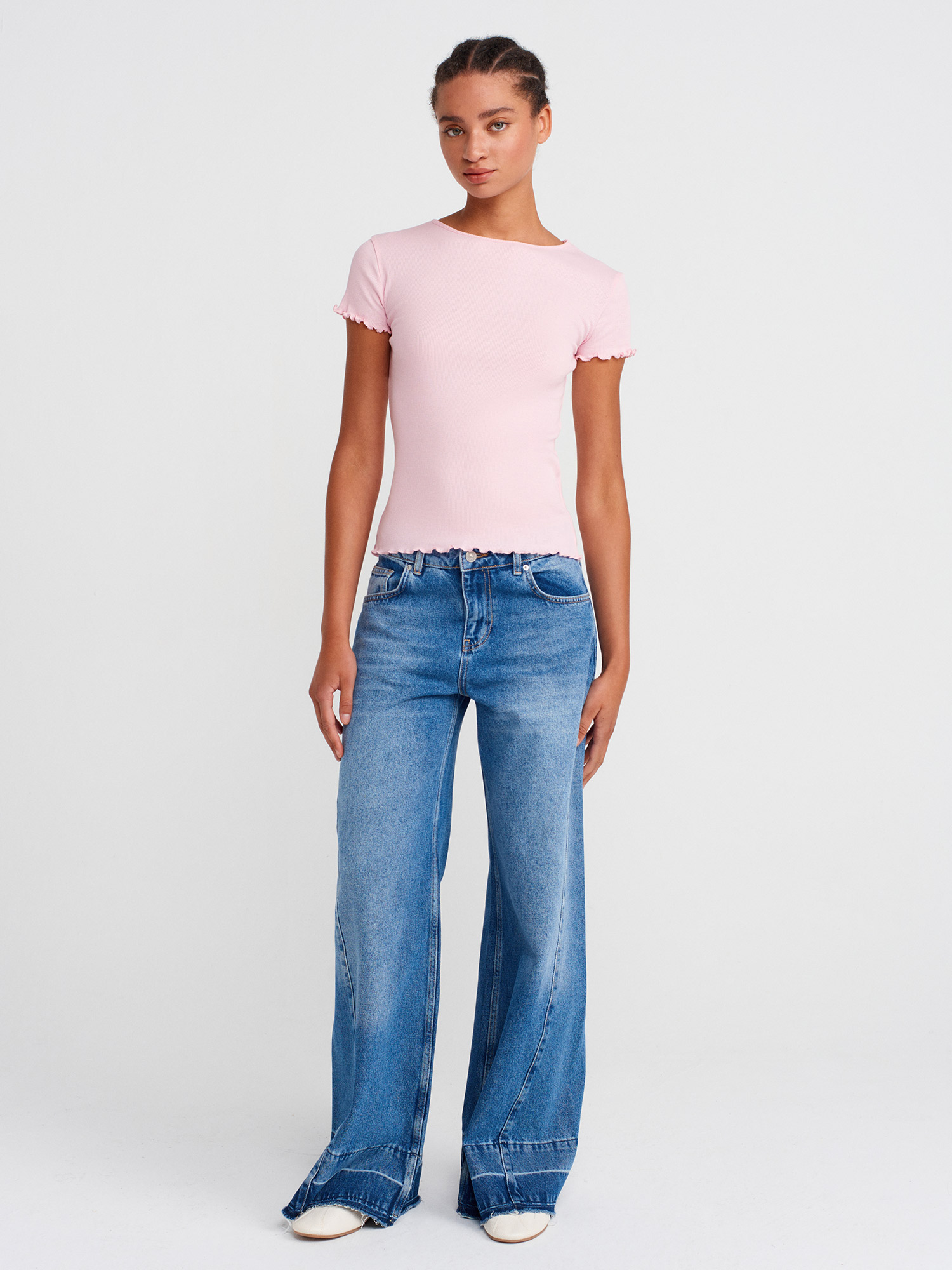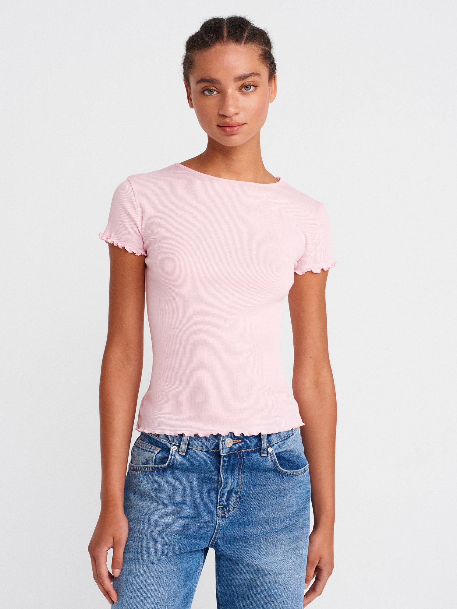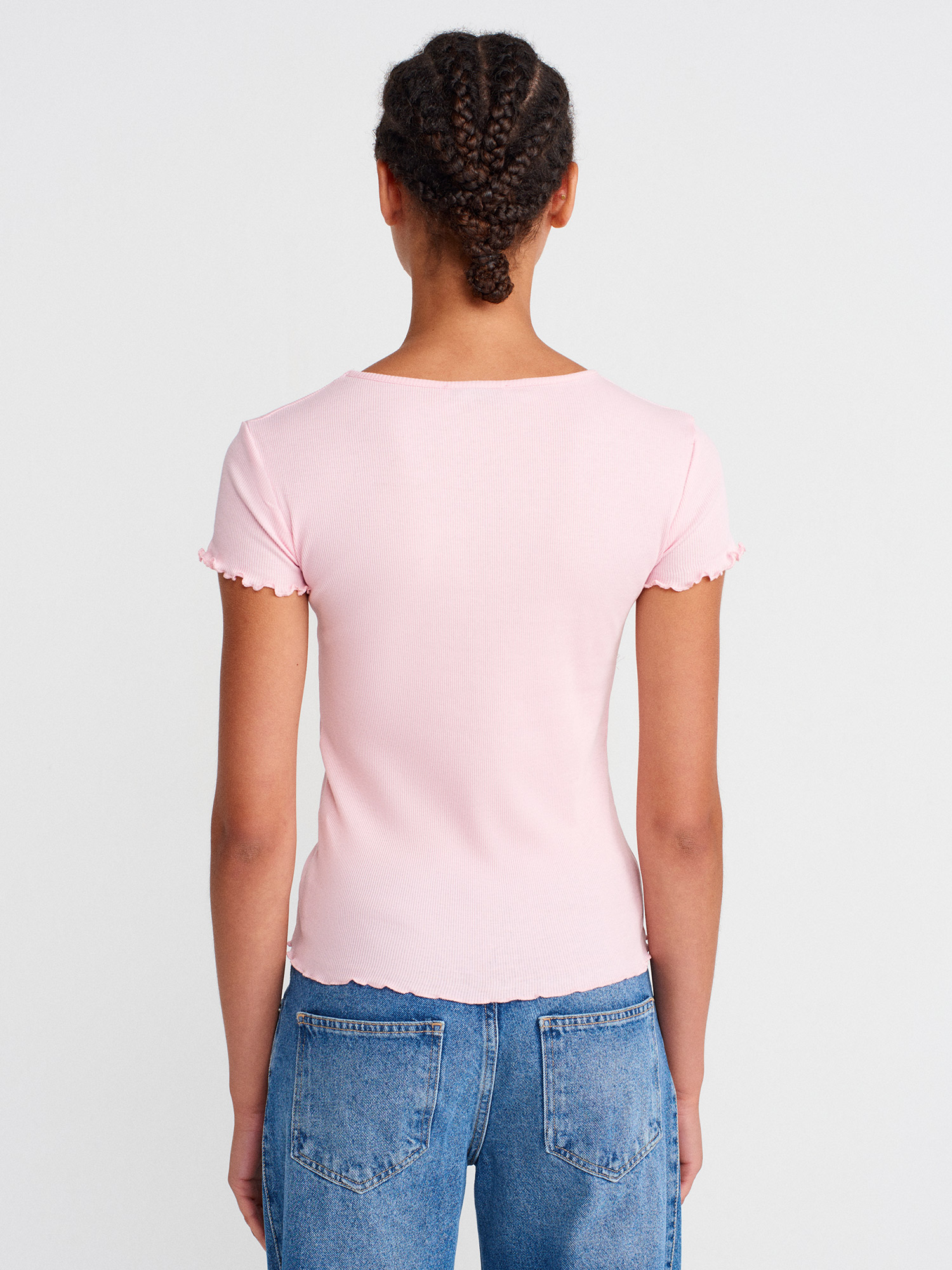 31935 %100 Pamuk Kısa Kollu T-shirt-Toz Pembe