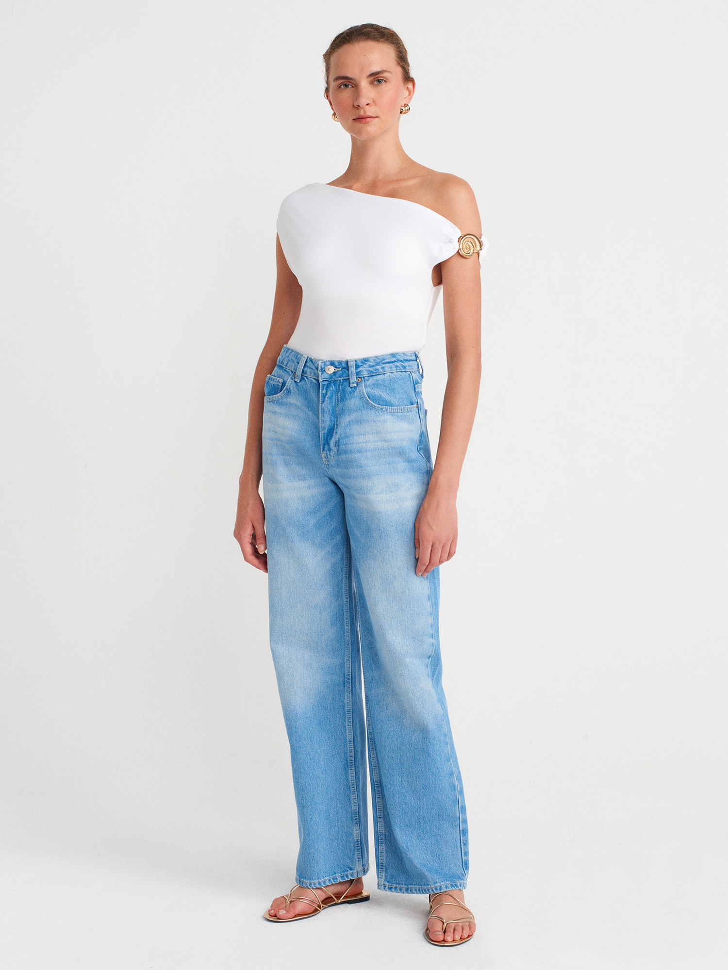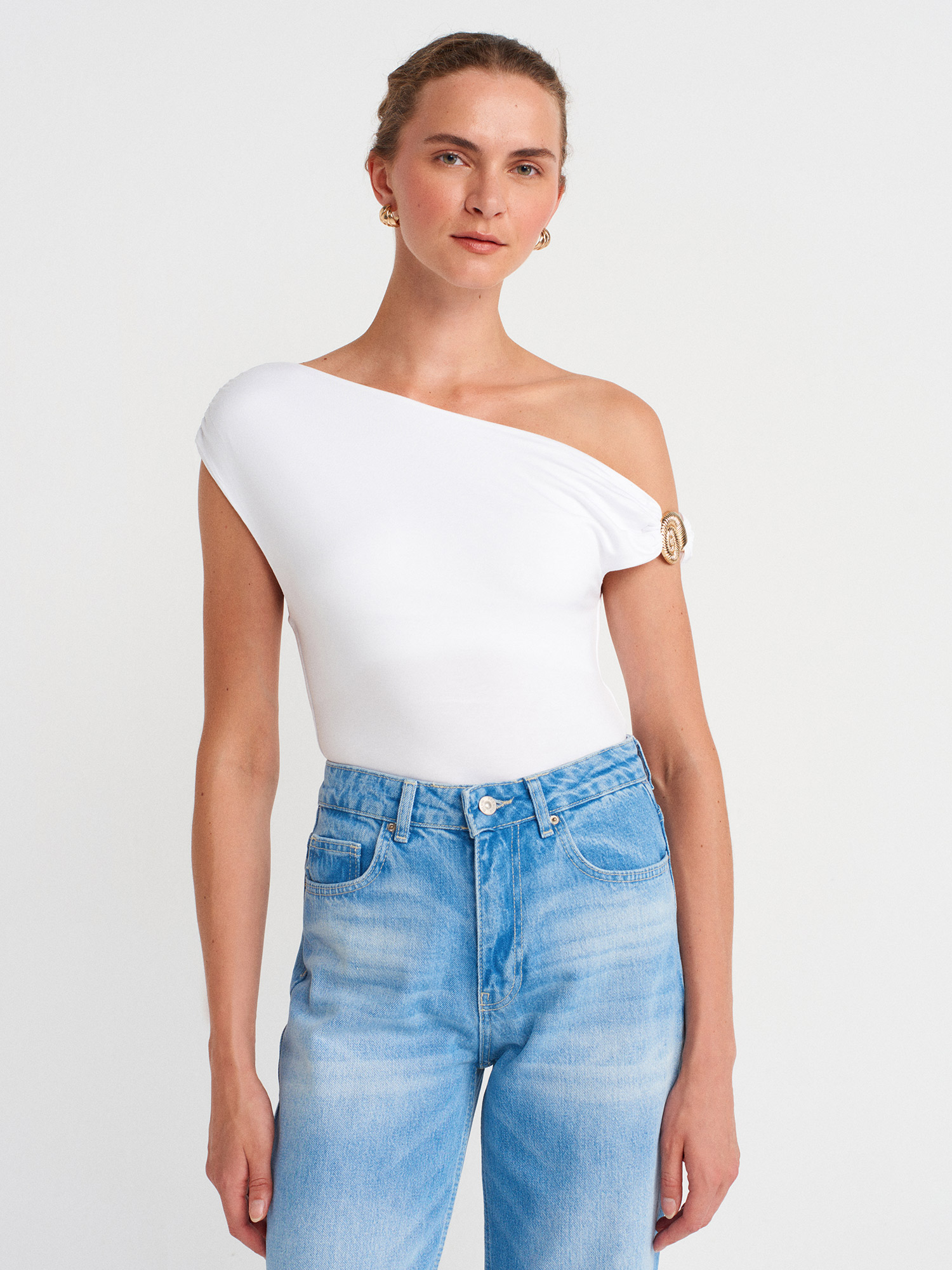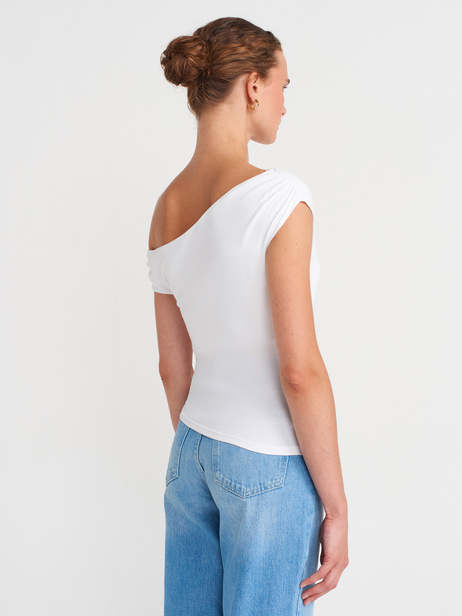 31940 Asimetrik Kesim Top-Beyaz