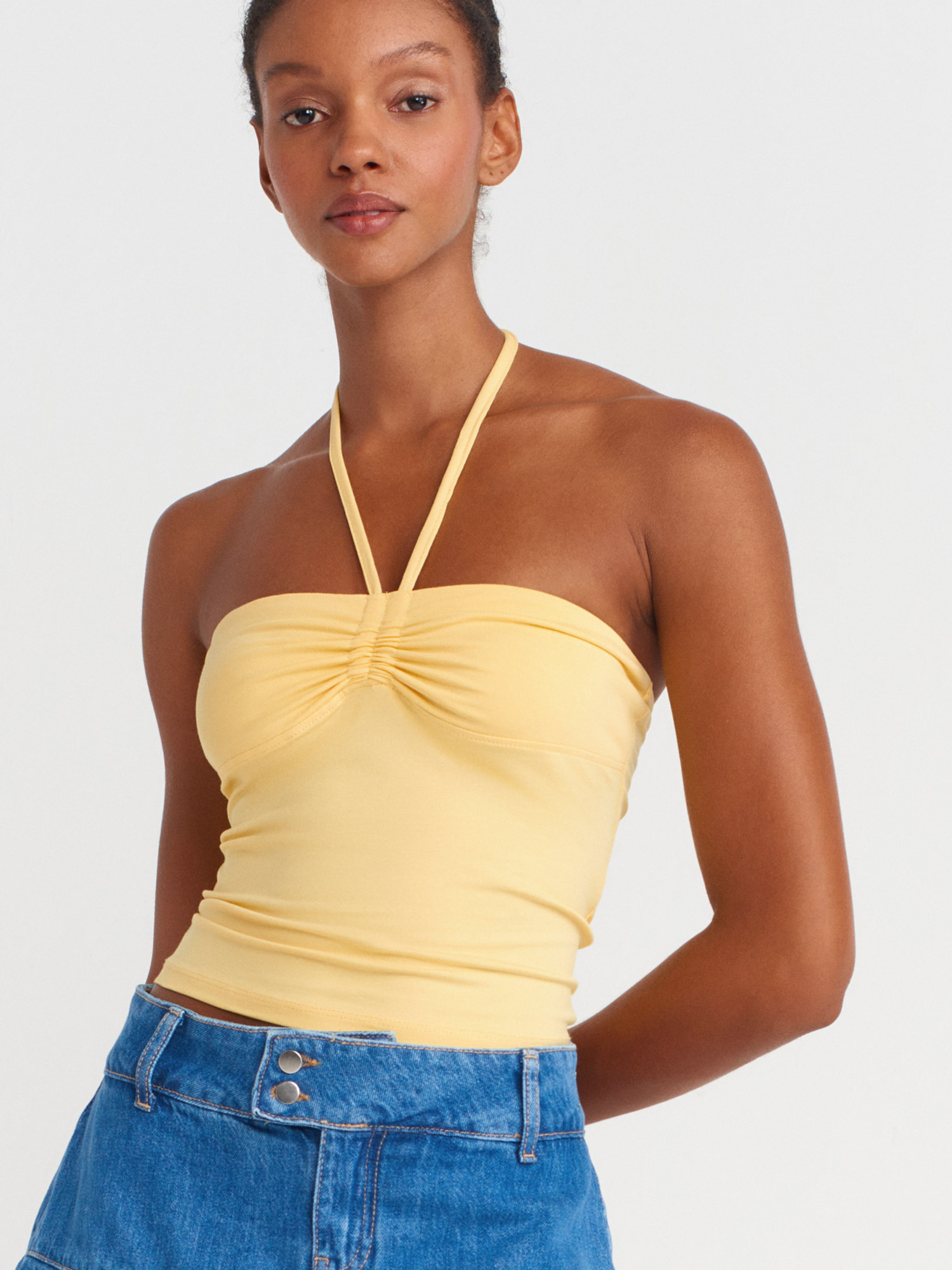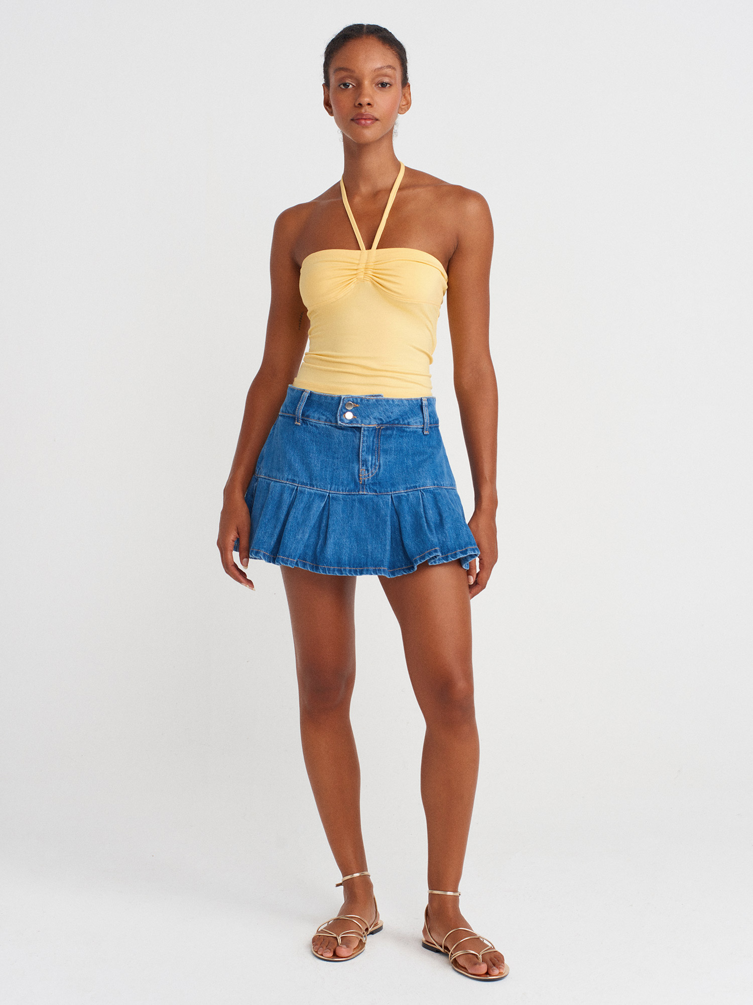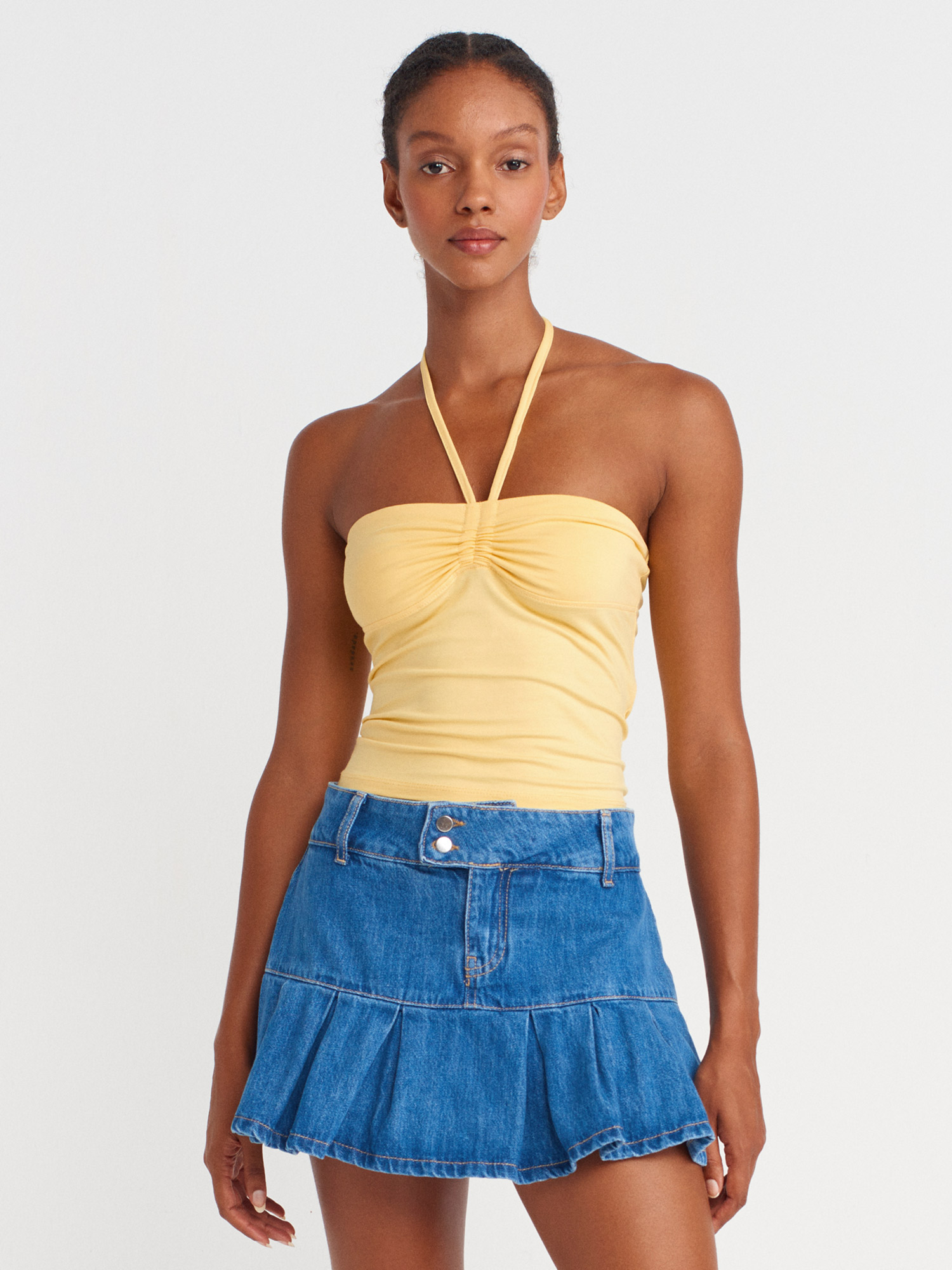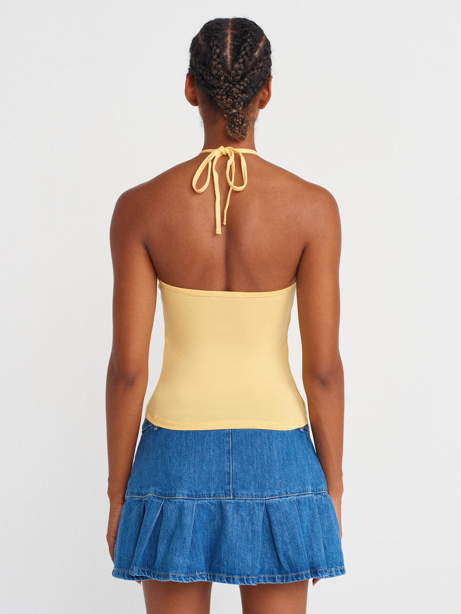 31959 Boyundan Bağlamalı Straplez Top-Sarı