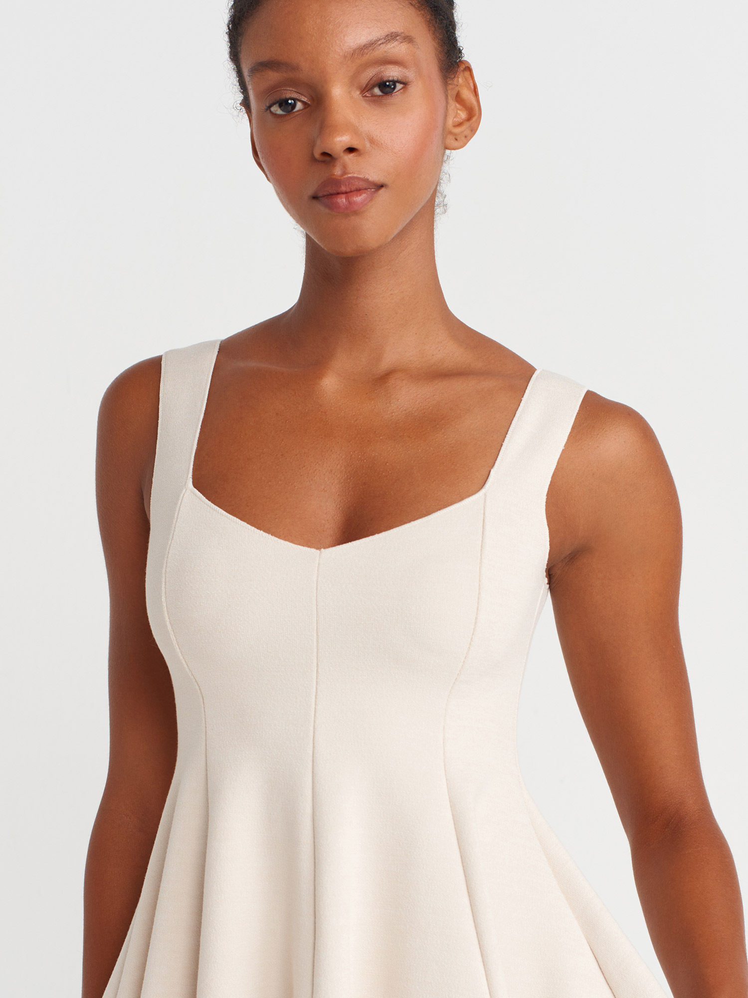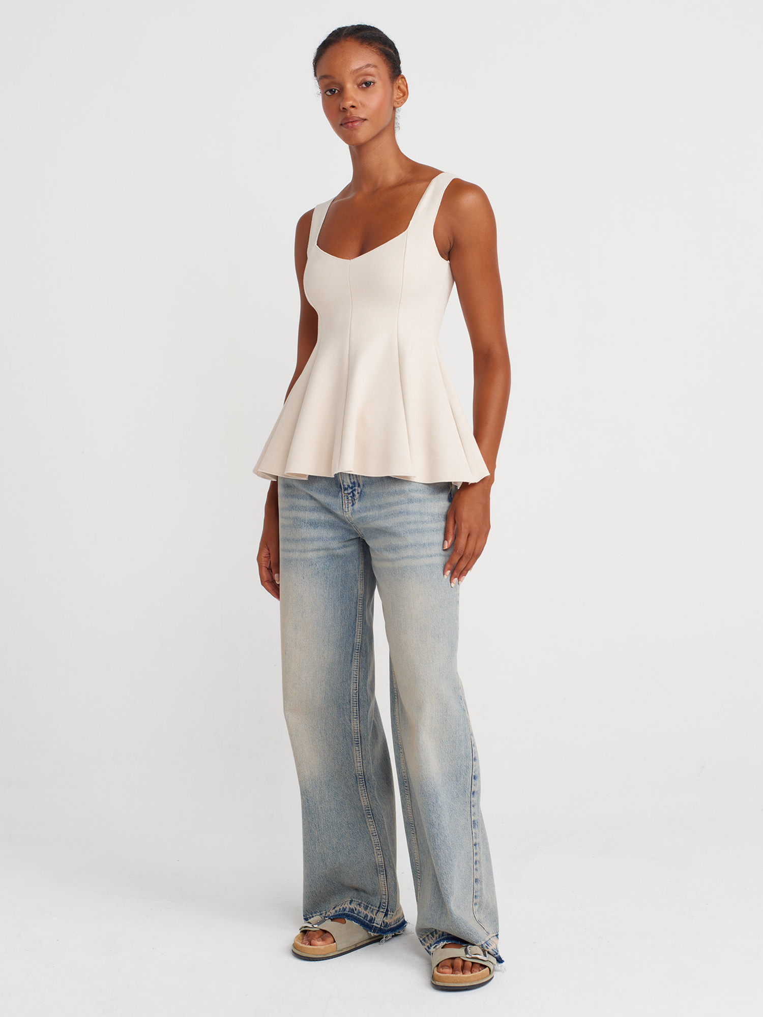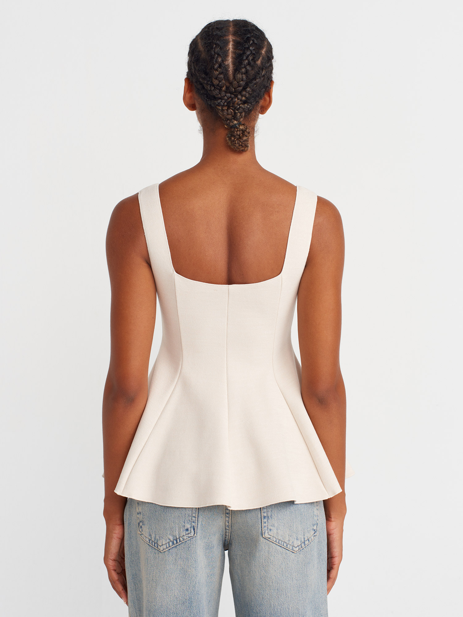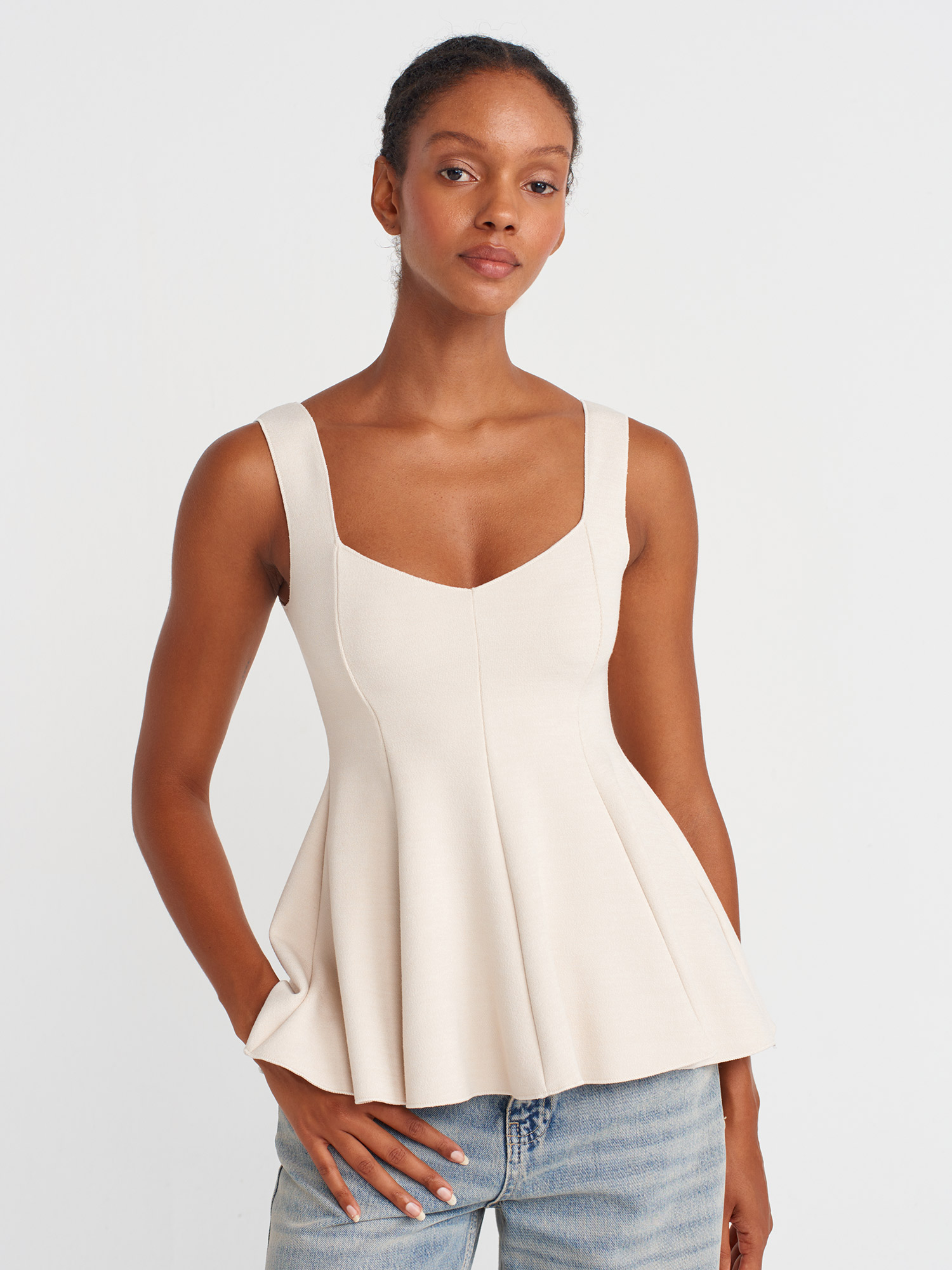 31973 Peplum Streç Top-Açık Bej