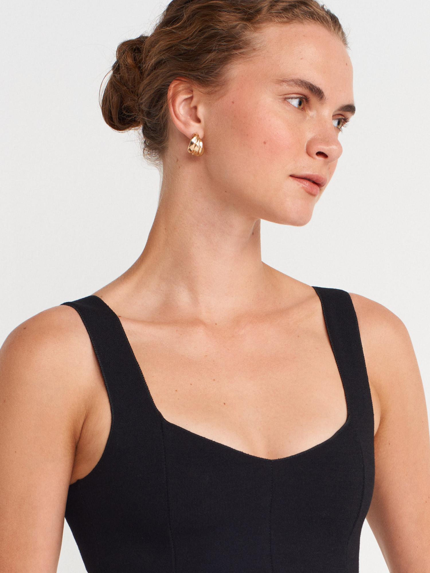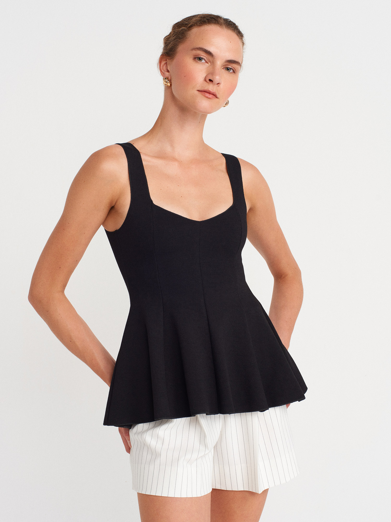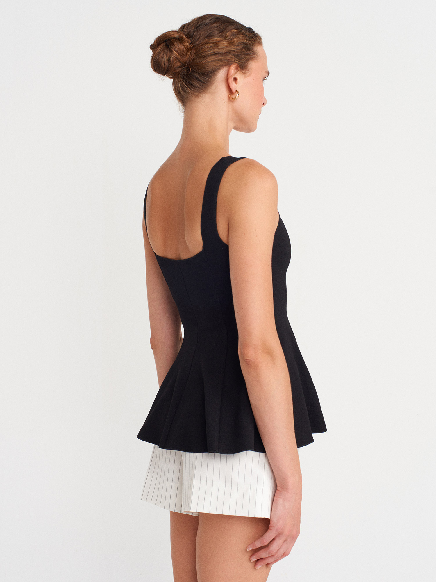 31973 Peplum Streç Top-Siyah