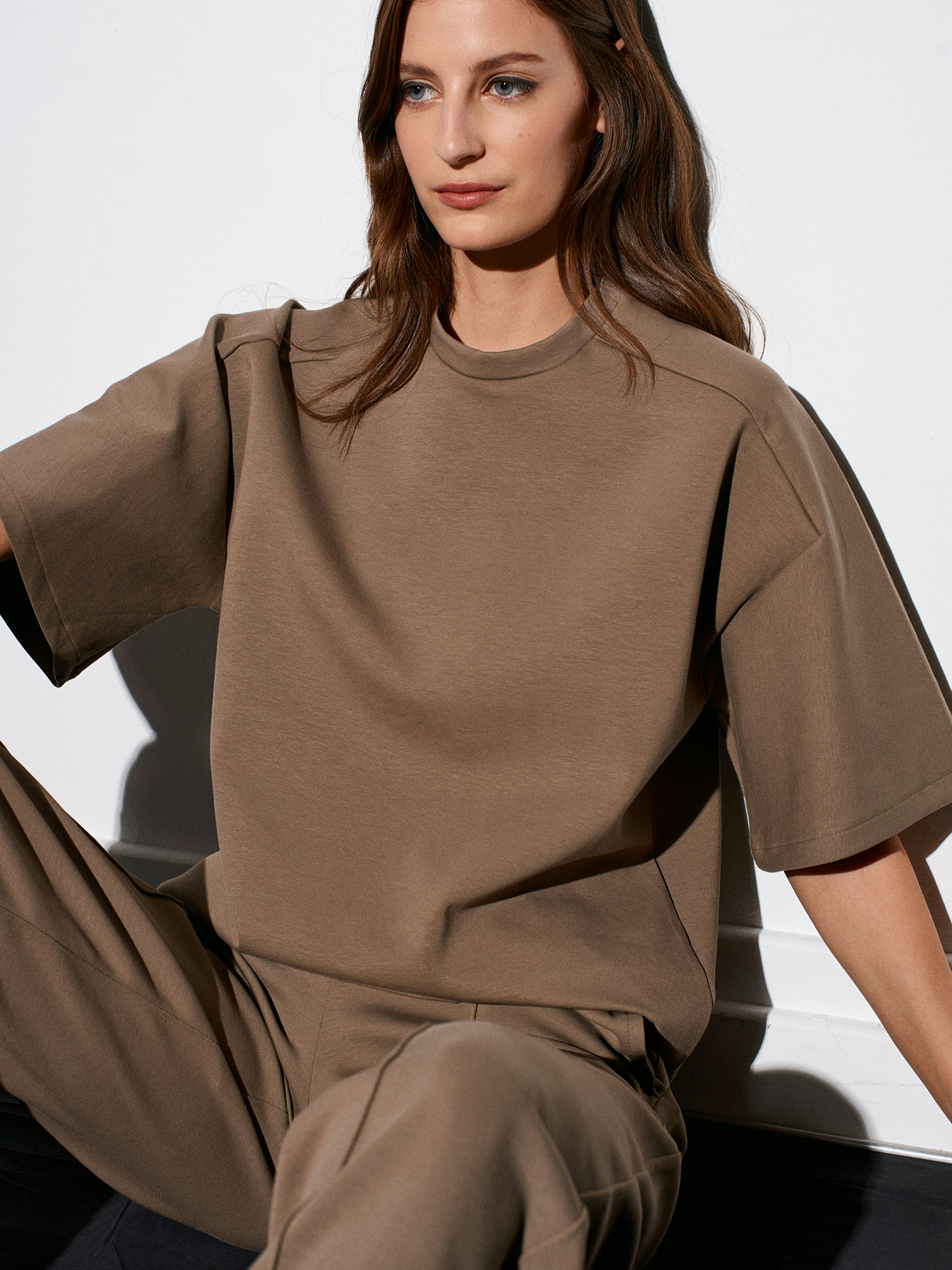 31975 Kısa Kollu Oversize T-shirt-Açık Haki