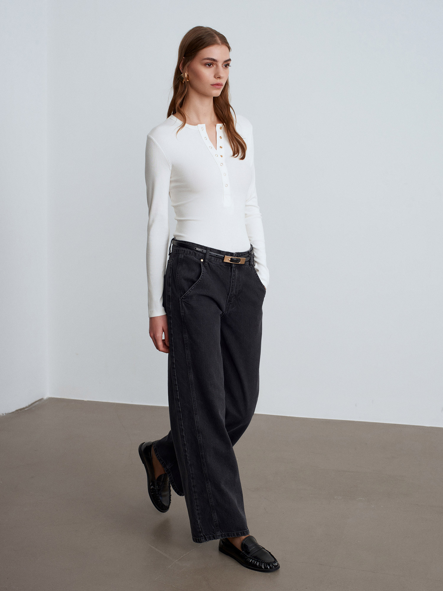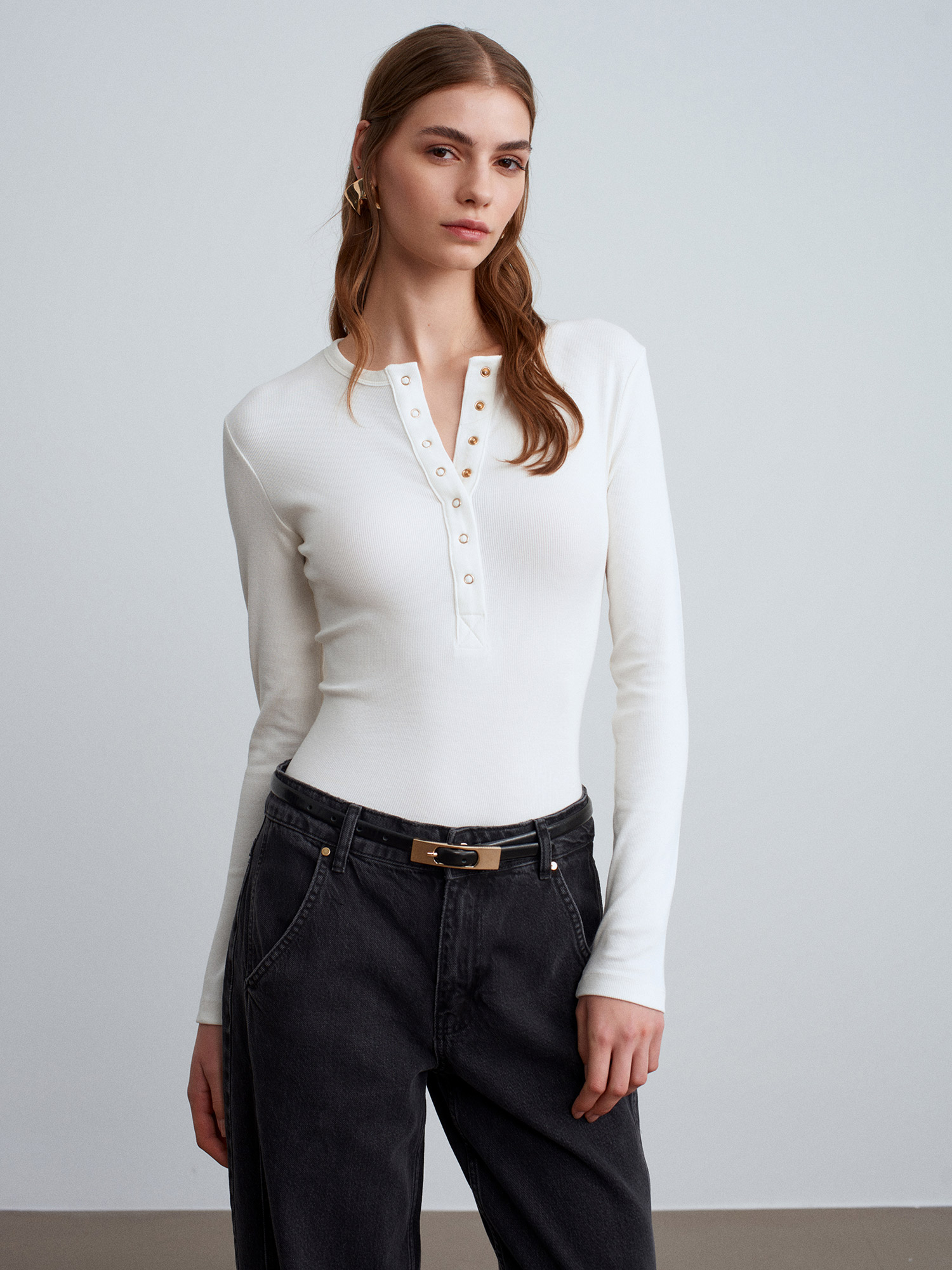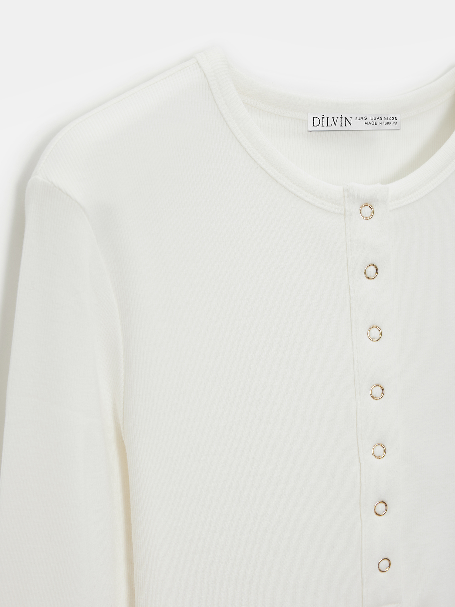 32024 Çıtçıtlı Modal Karışımlı Top-Ekru