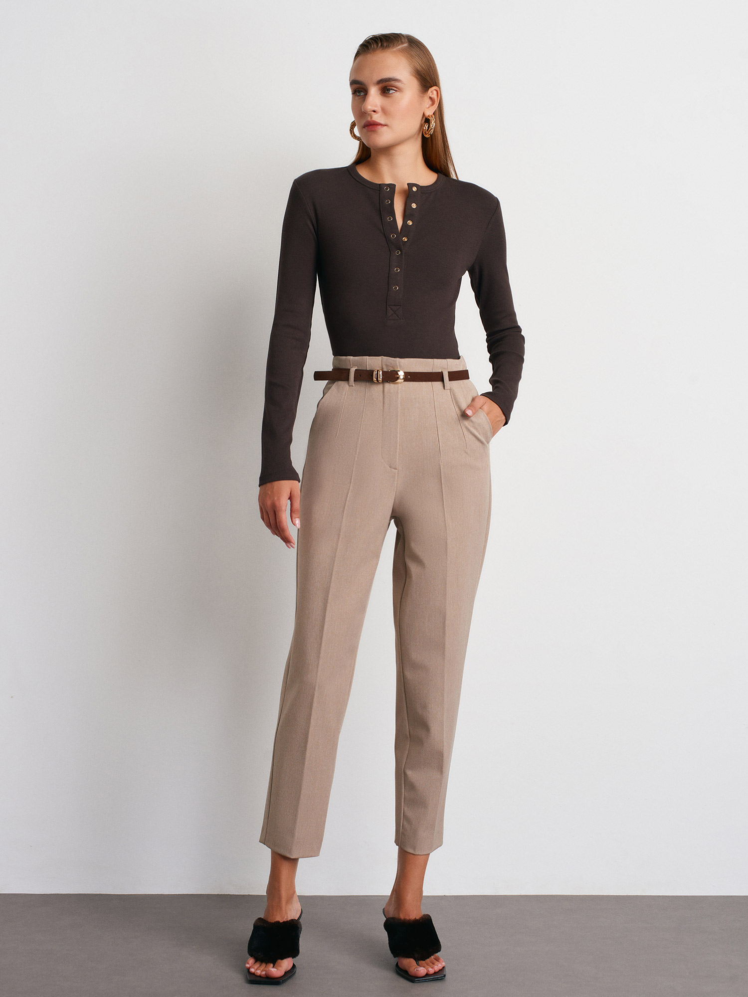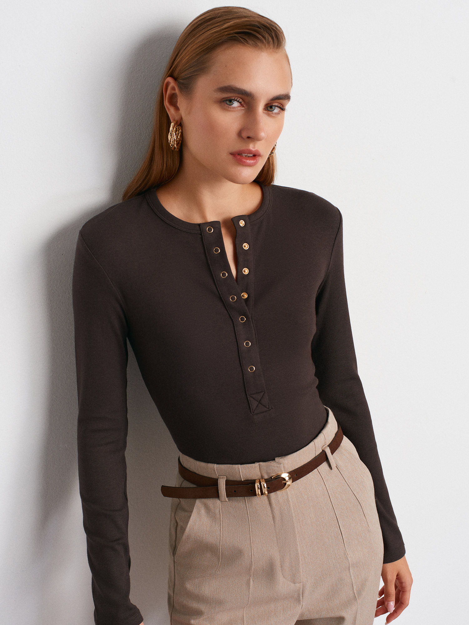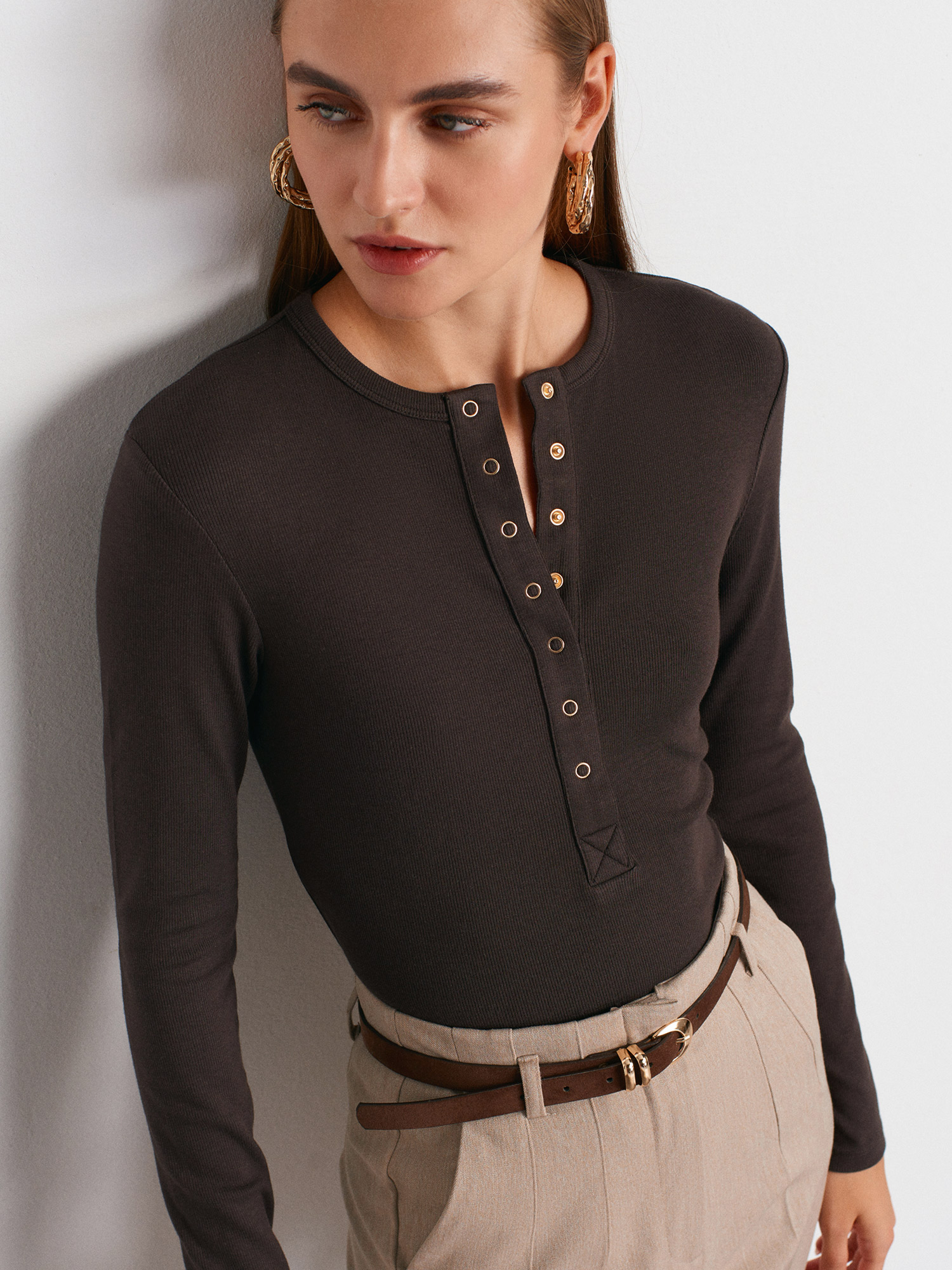 32024 Çıtçıtlı Modal Karışımlı Top-Koyu Kahve