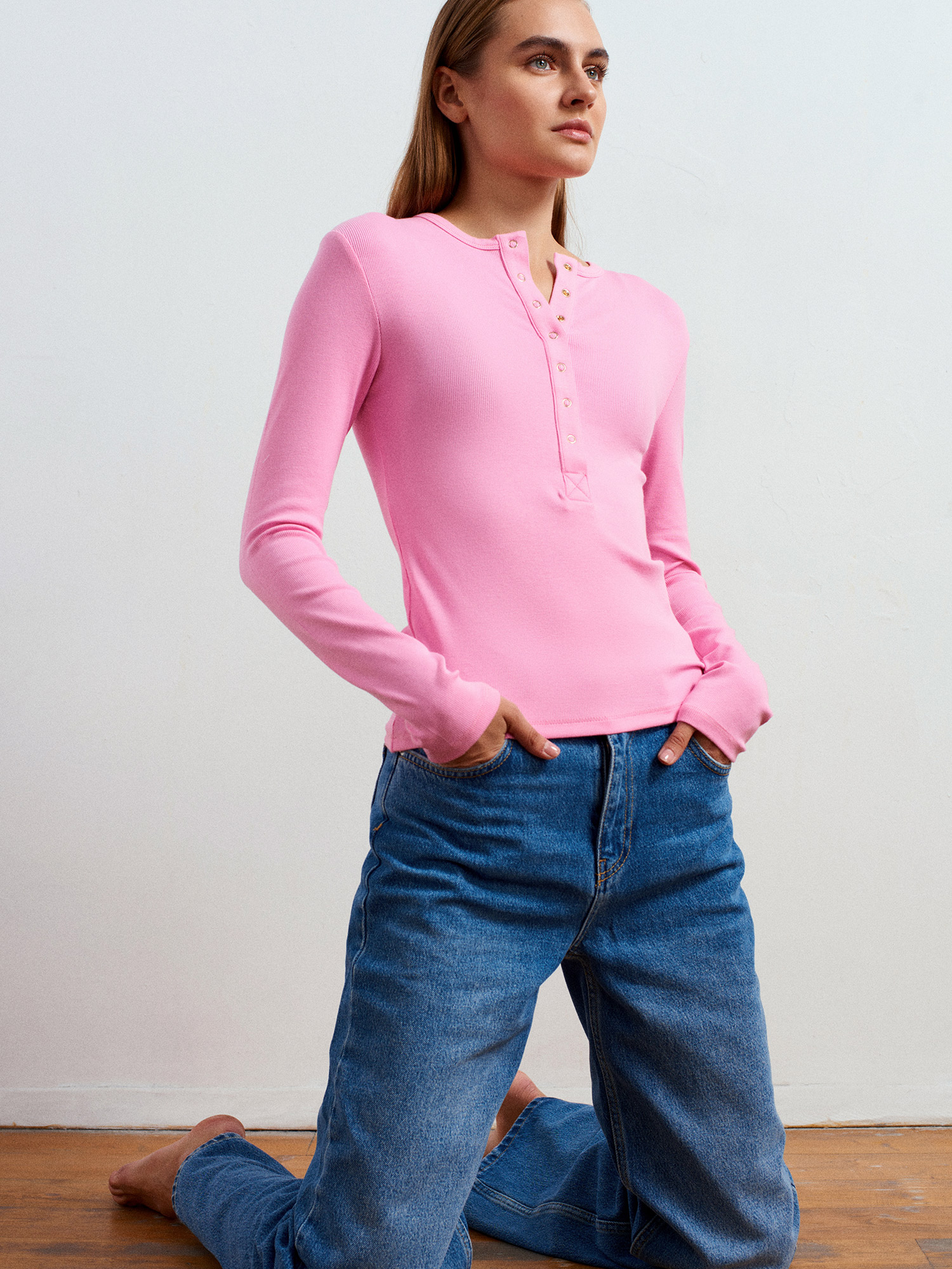 32024 Çıtçıtlı Modal Karışımlı Top-Pembe
