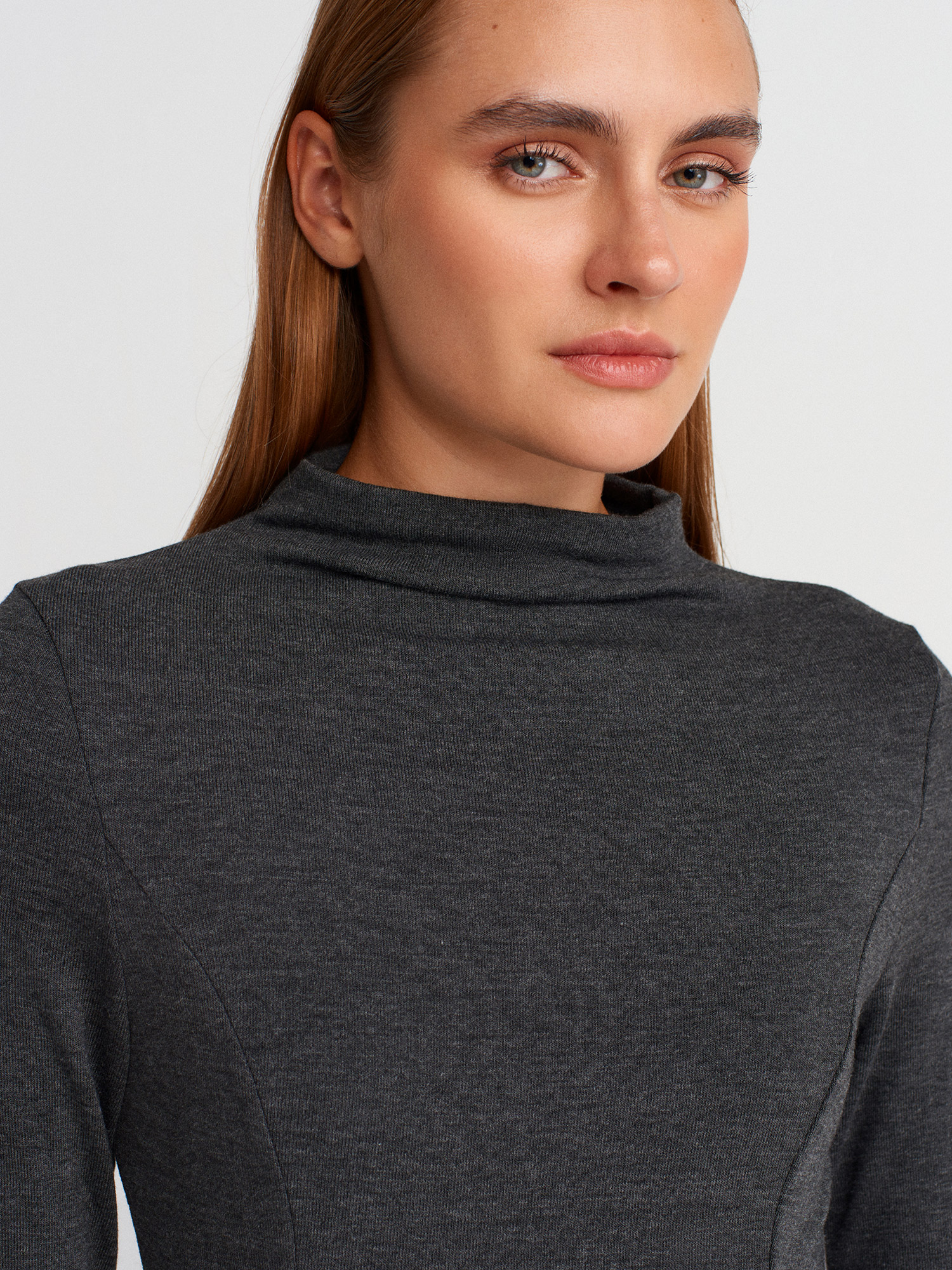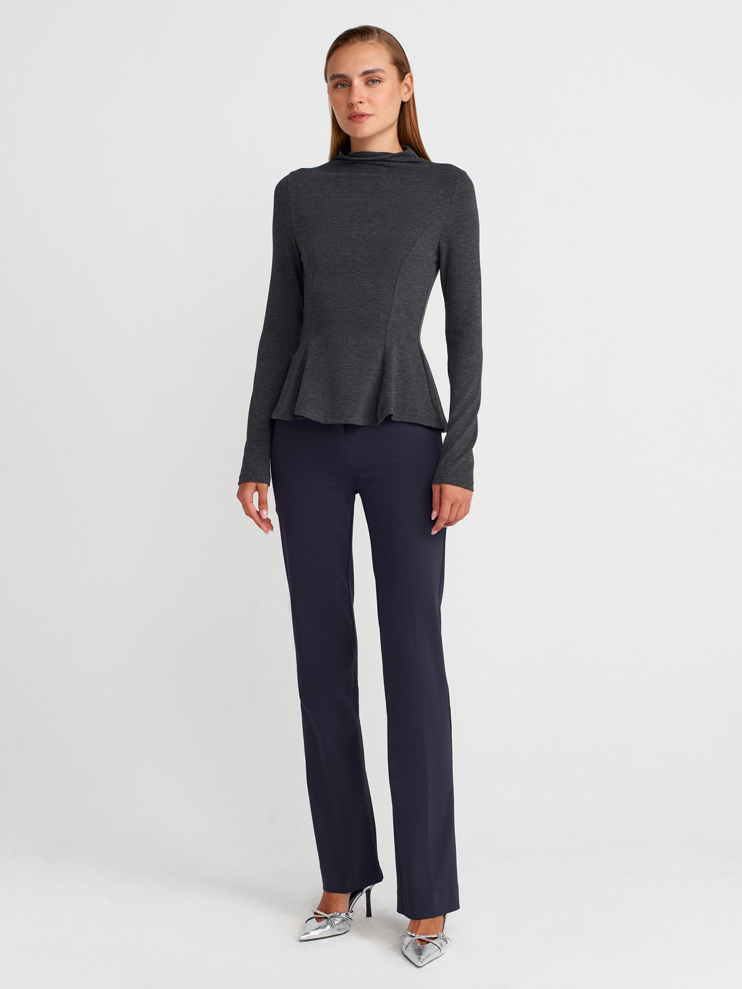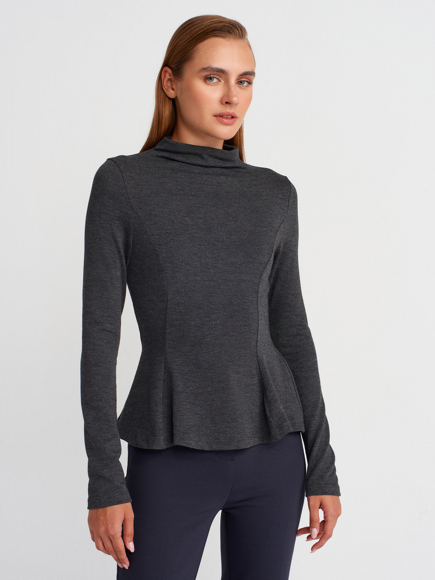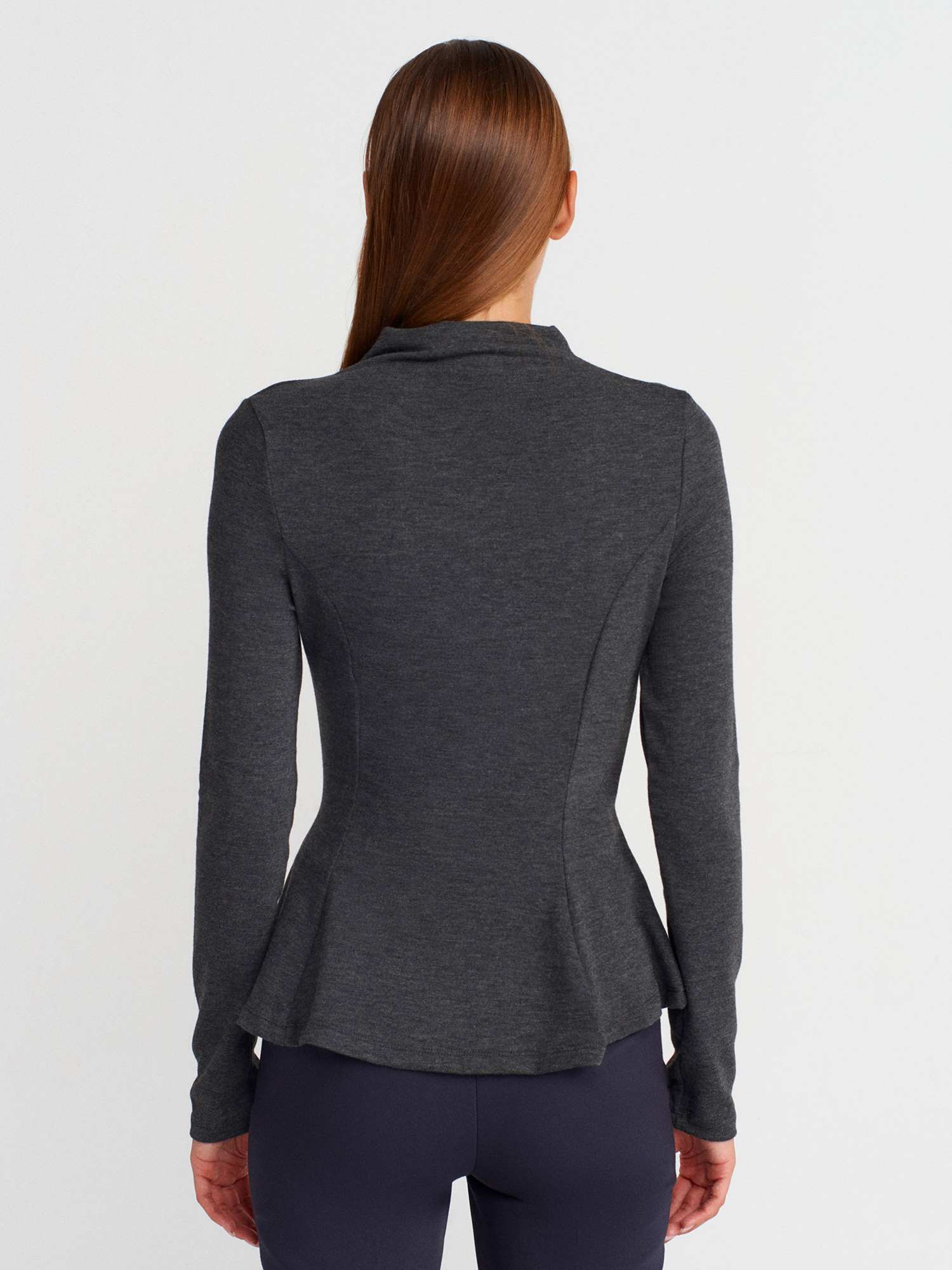 32038 Uzun Kollu Peplum Top-Antrasit M