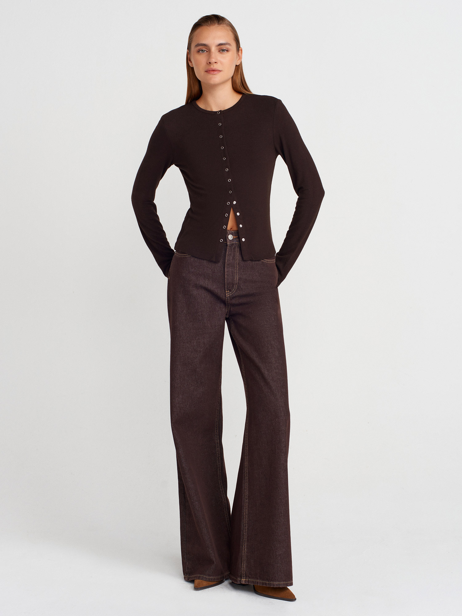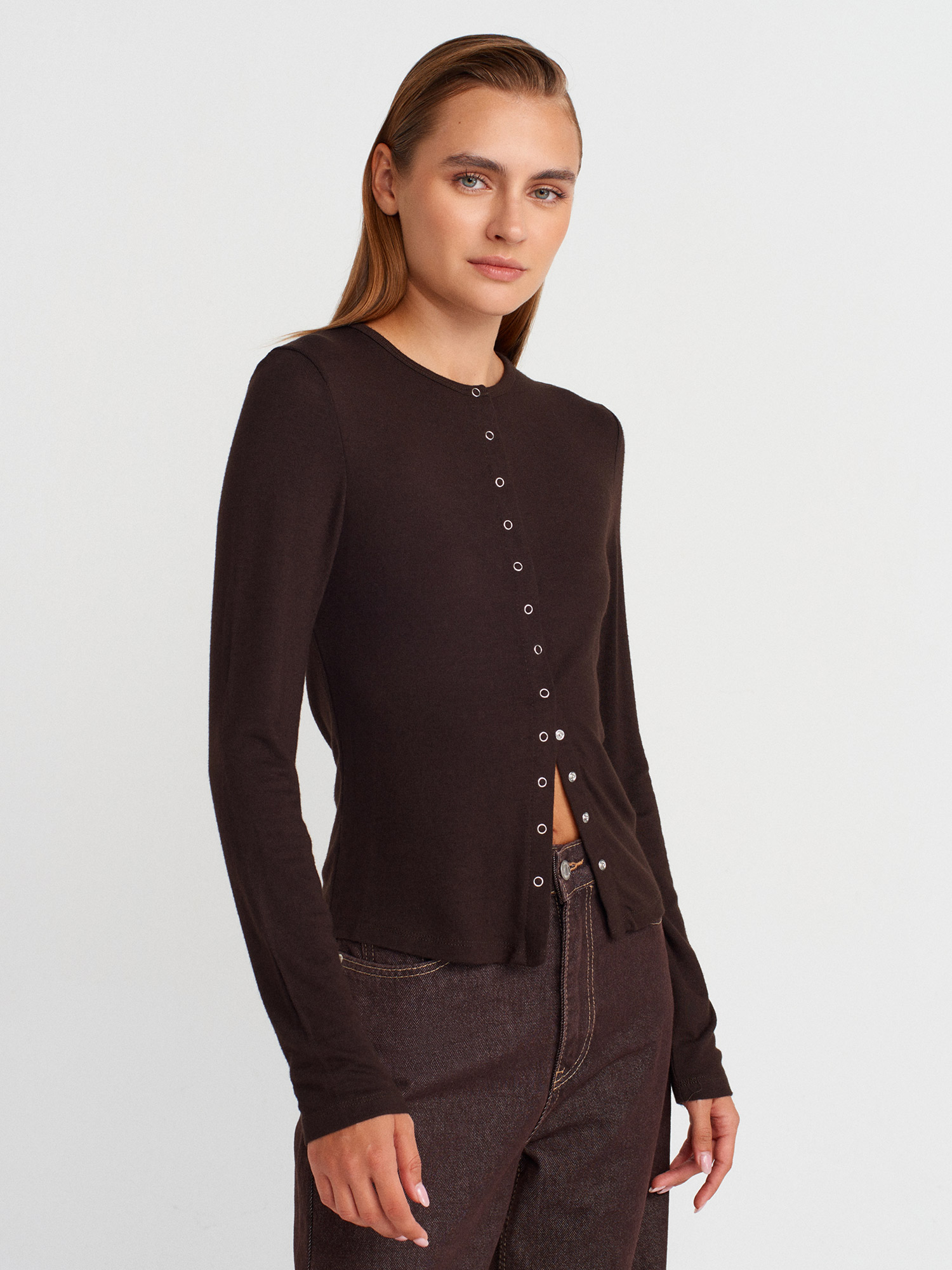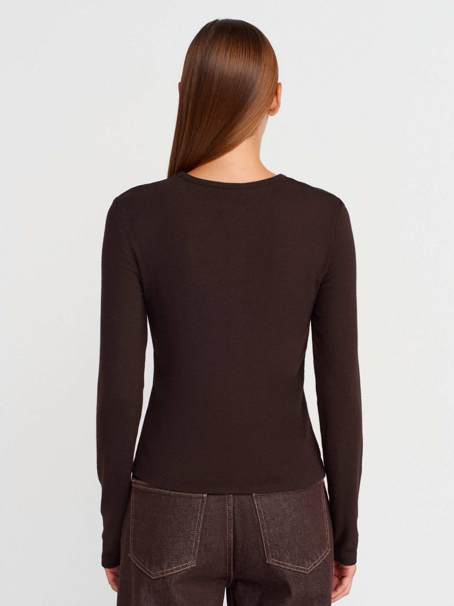 32055 Uzun Kollu Hırka-Koyu Kahve