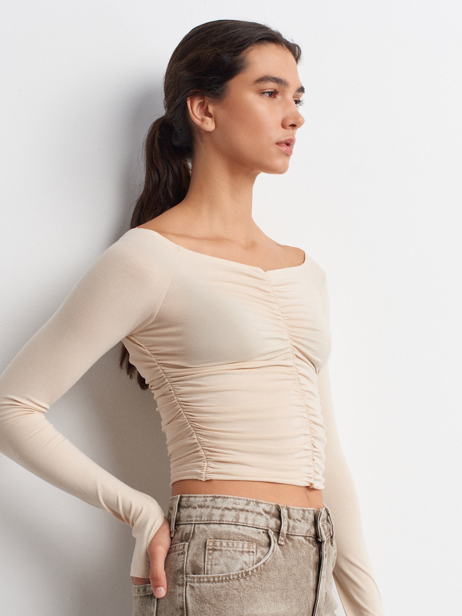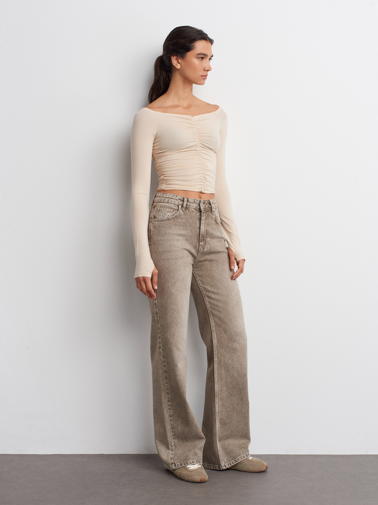 32089 Omuzları Açık Büzgülü Top-Taş