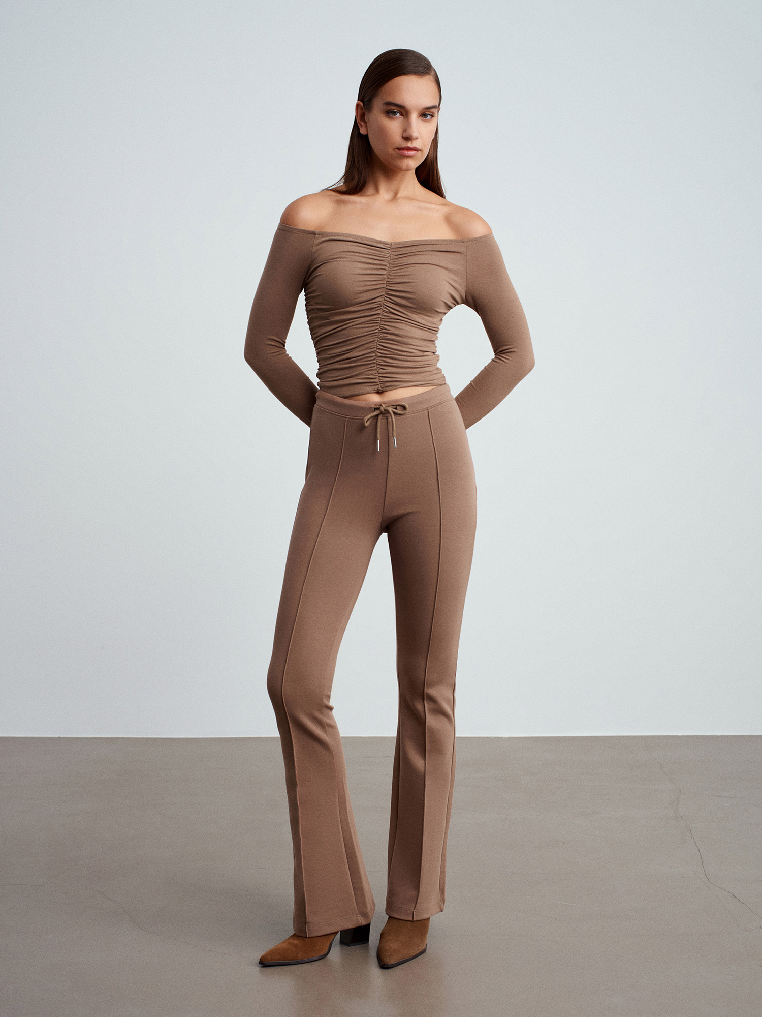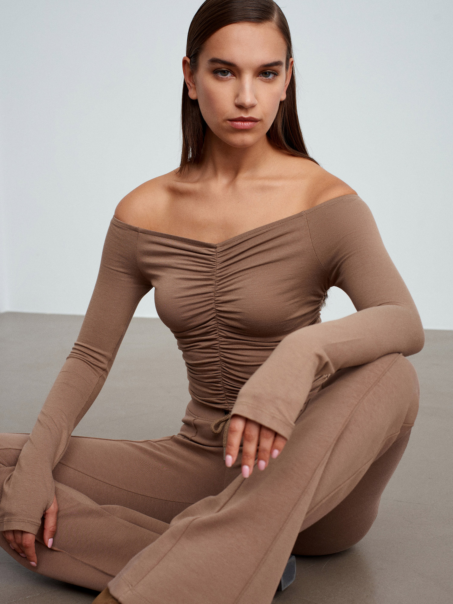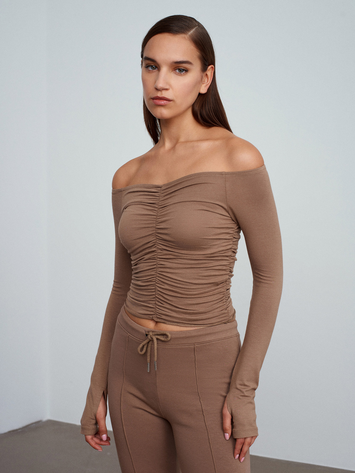 32089 Omuzları Açık Büzgülü Top-Vizon