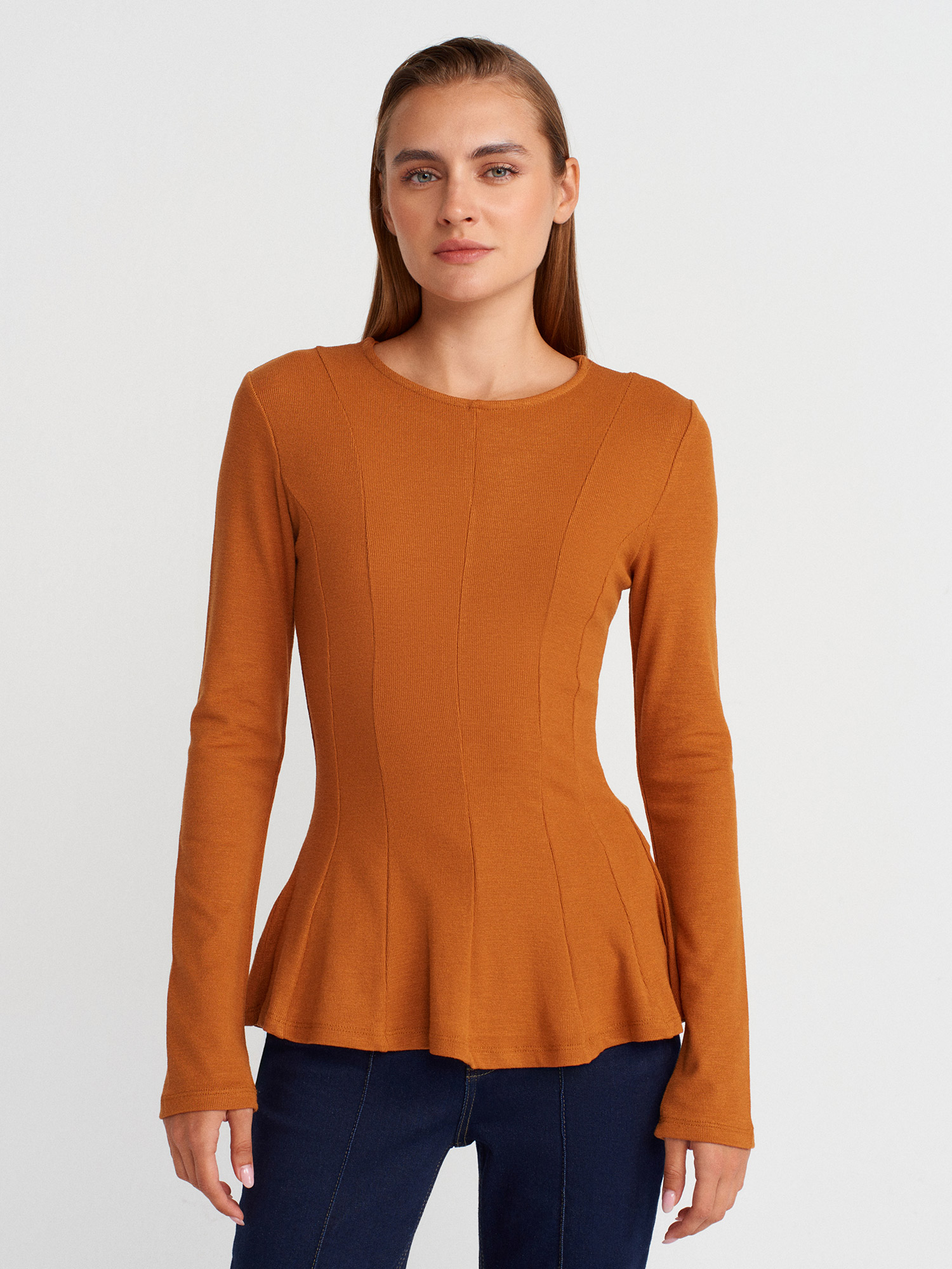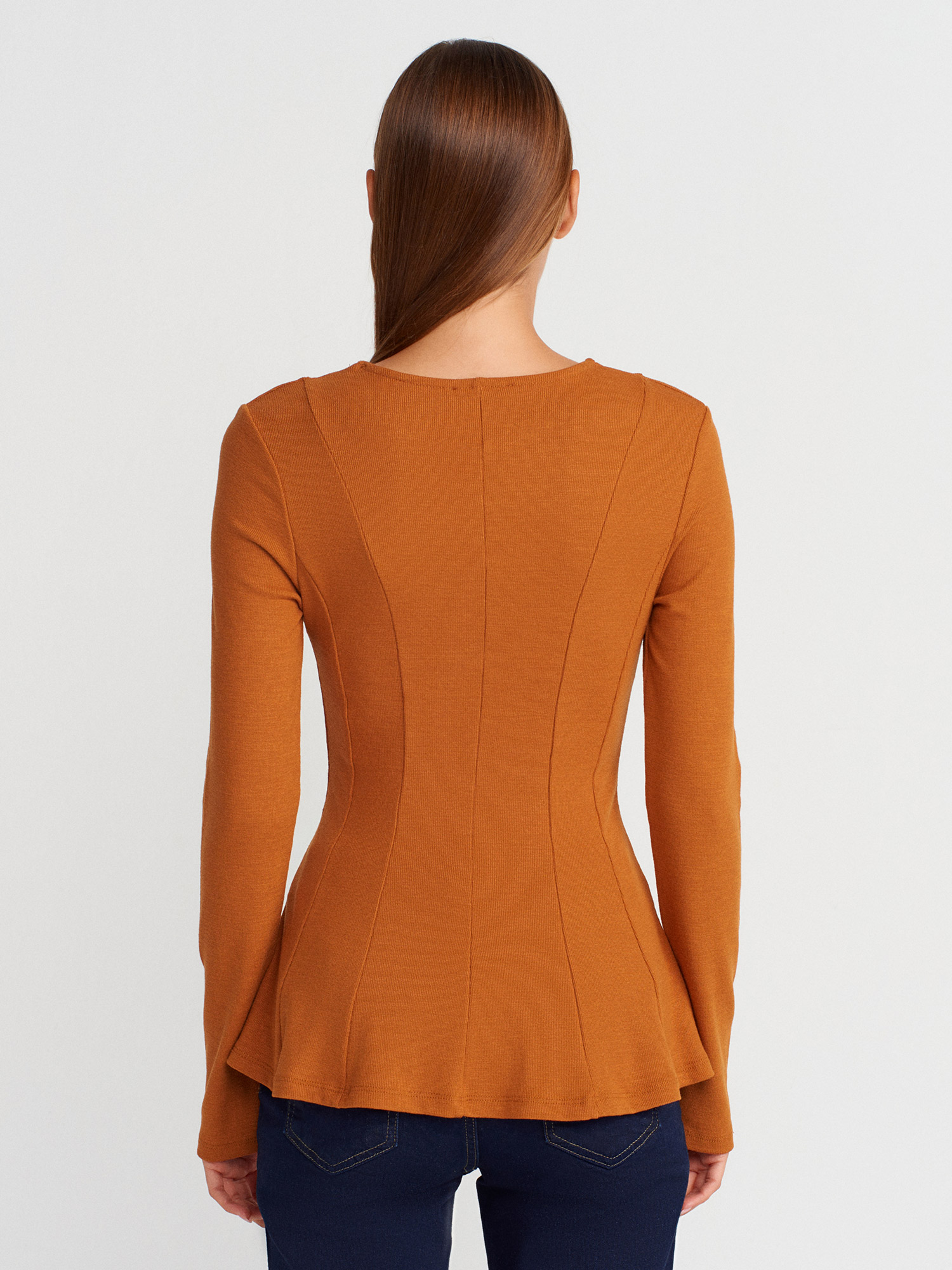 32090 Uzun Kollu Peplum Top-A.Kiremit
