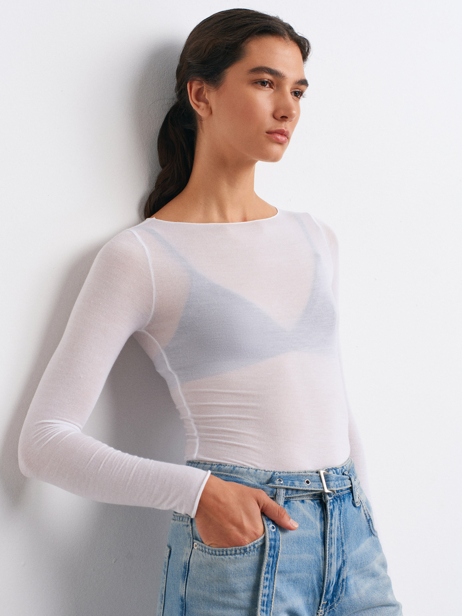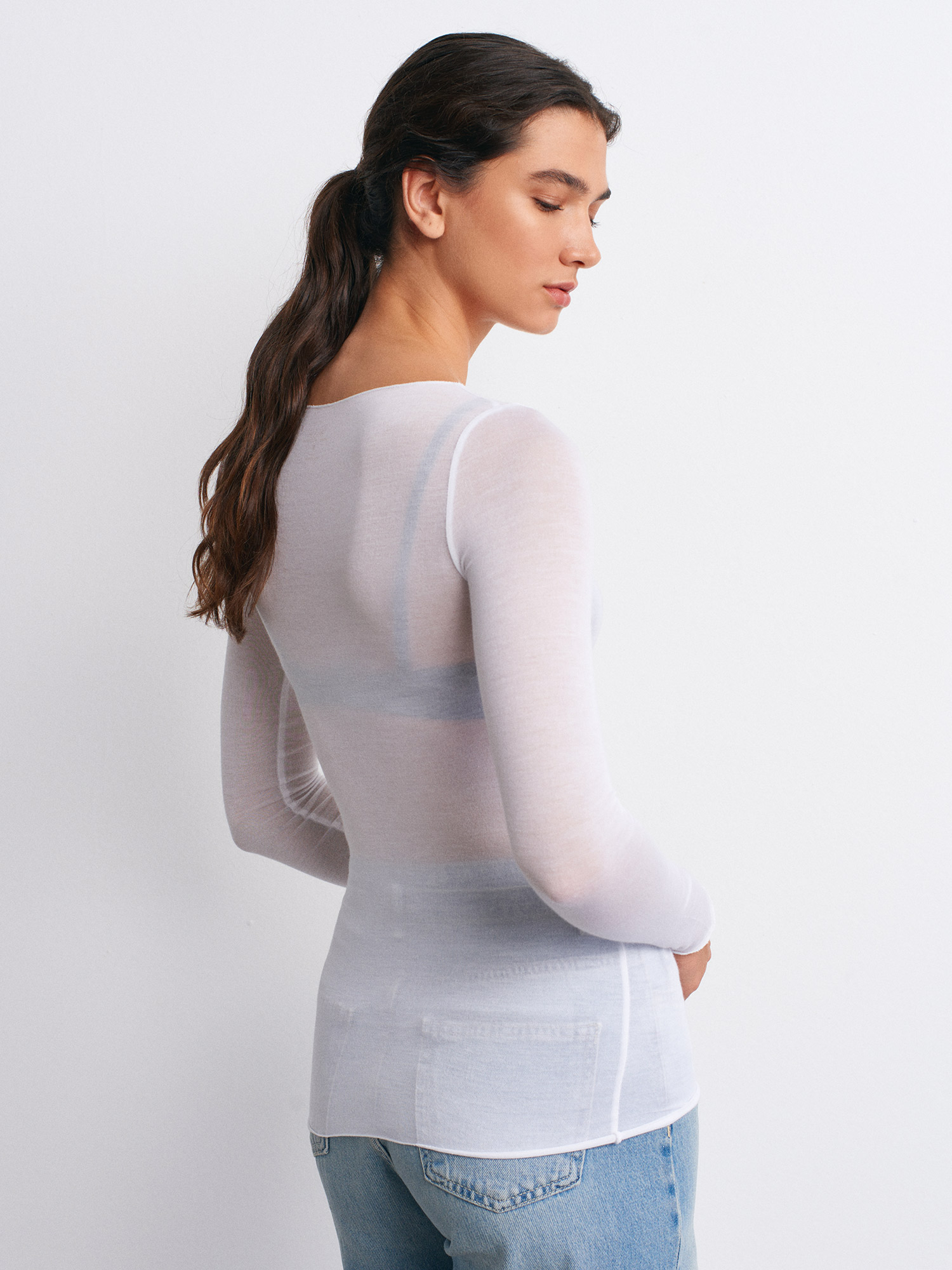 32122 Kayık Yaka Modal Kaşmir Ultra Hafif Bluz-Beyaz