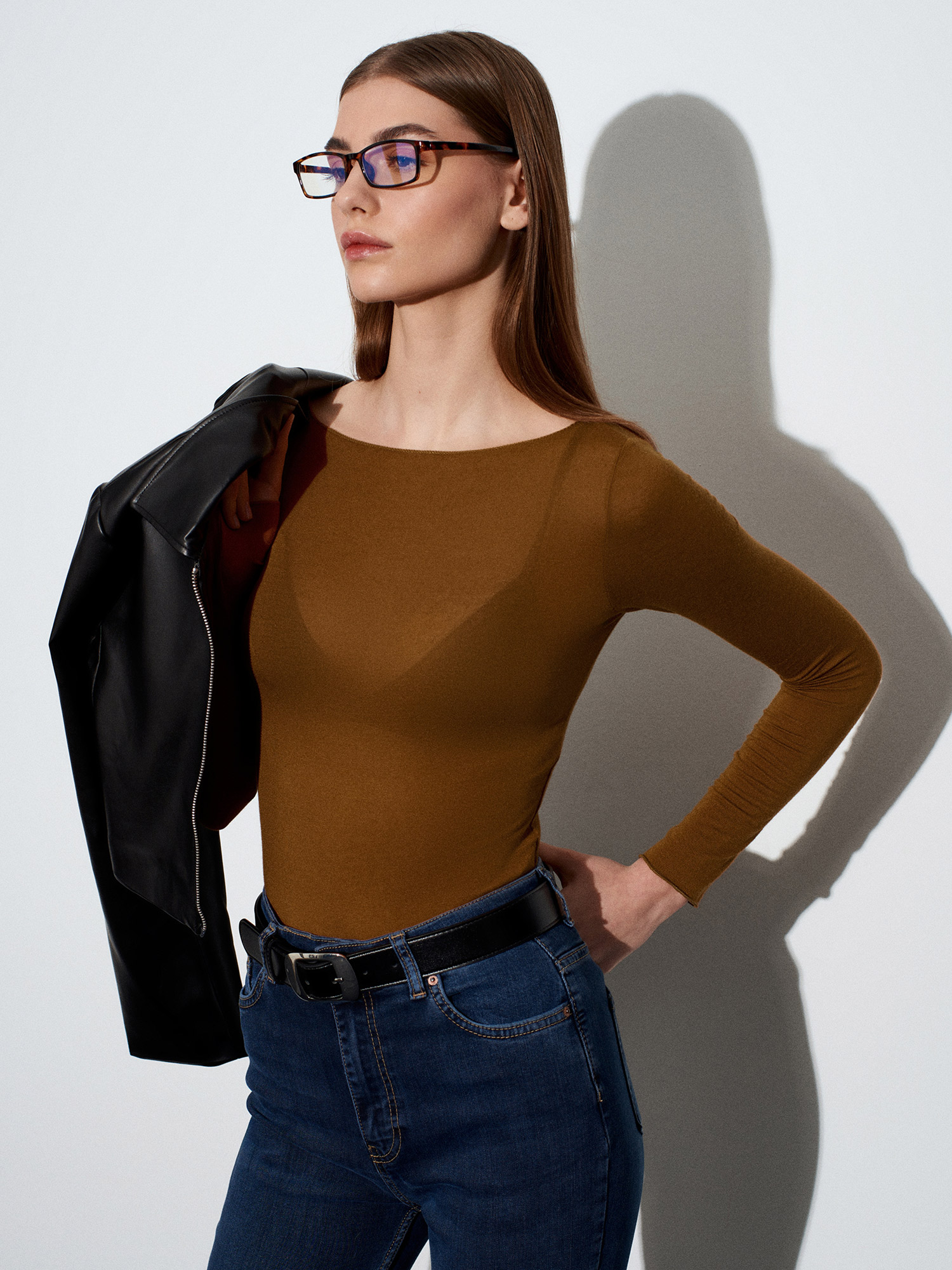32122 Kayık Yaka Modal Kaşmir Ultra Hafif Bluz-K.Kiremit