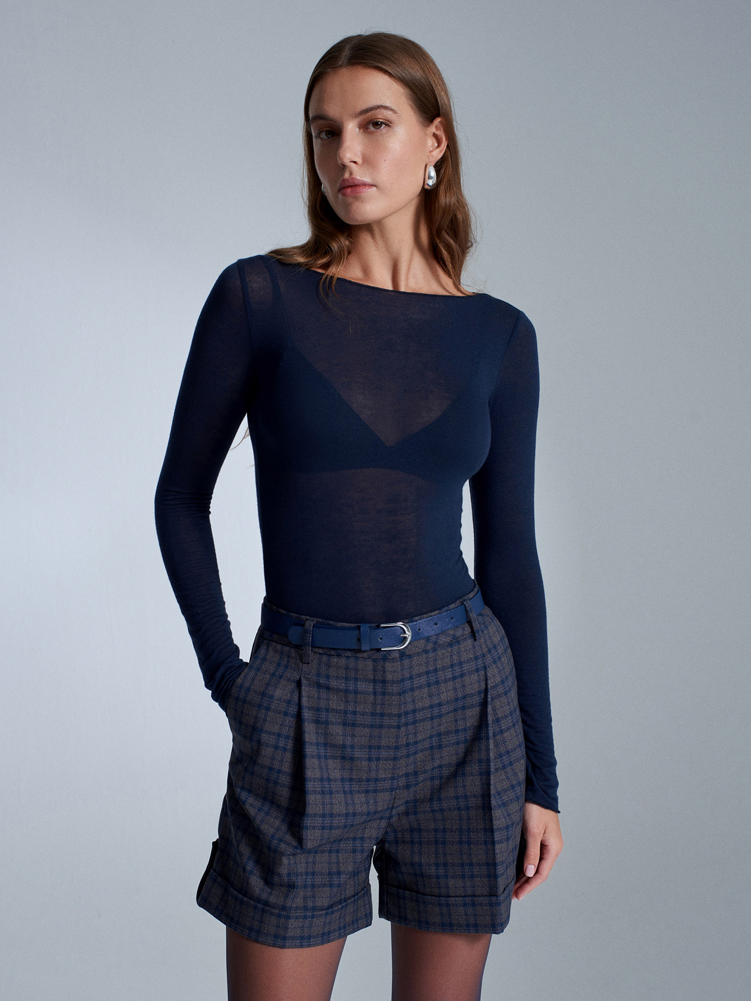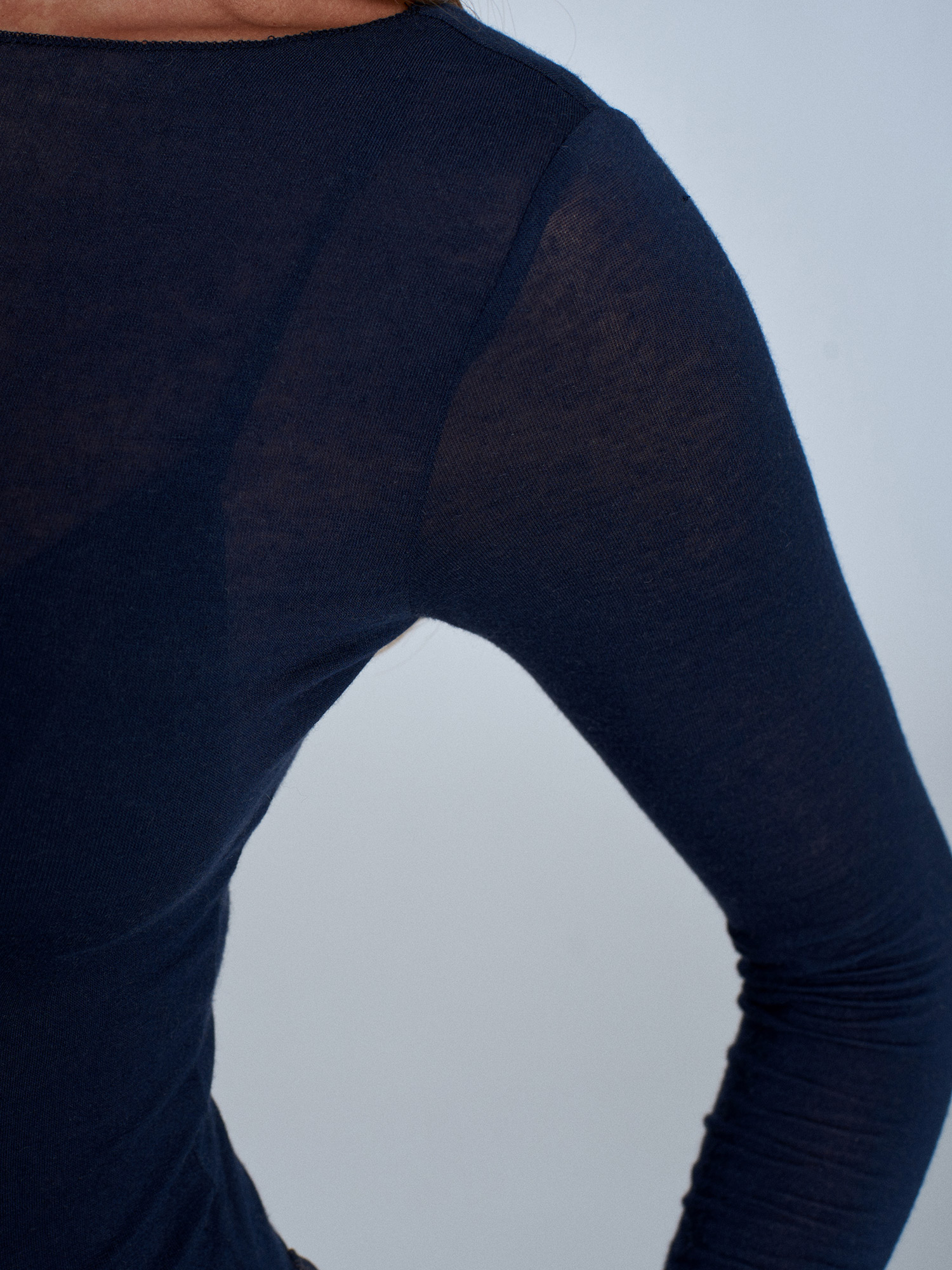 32122 Kayık Yaka Modal Kaşmir Ultra Hafif Bluz-Lacivert