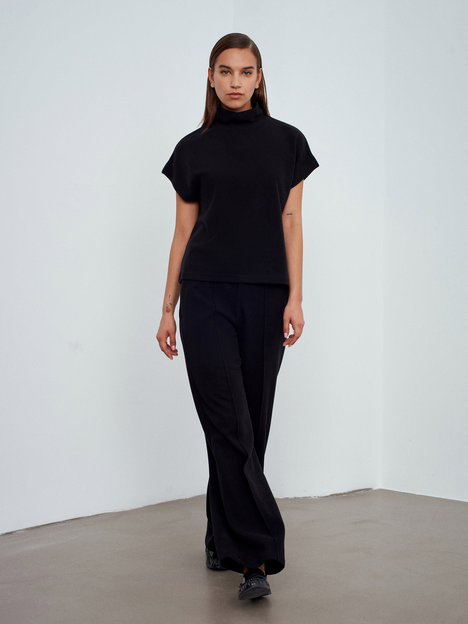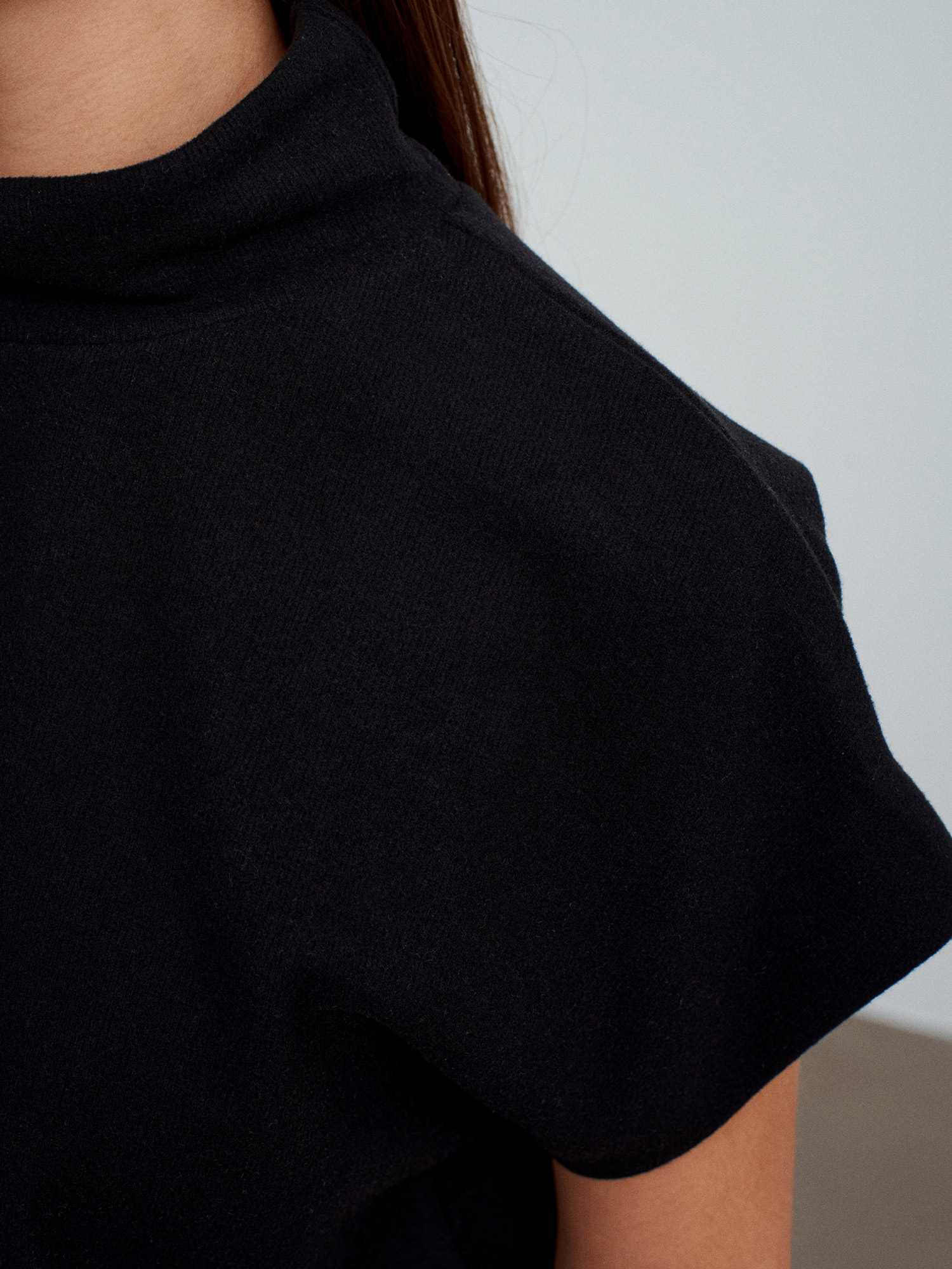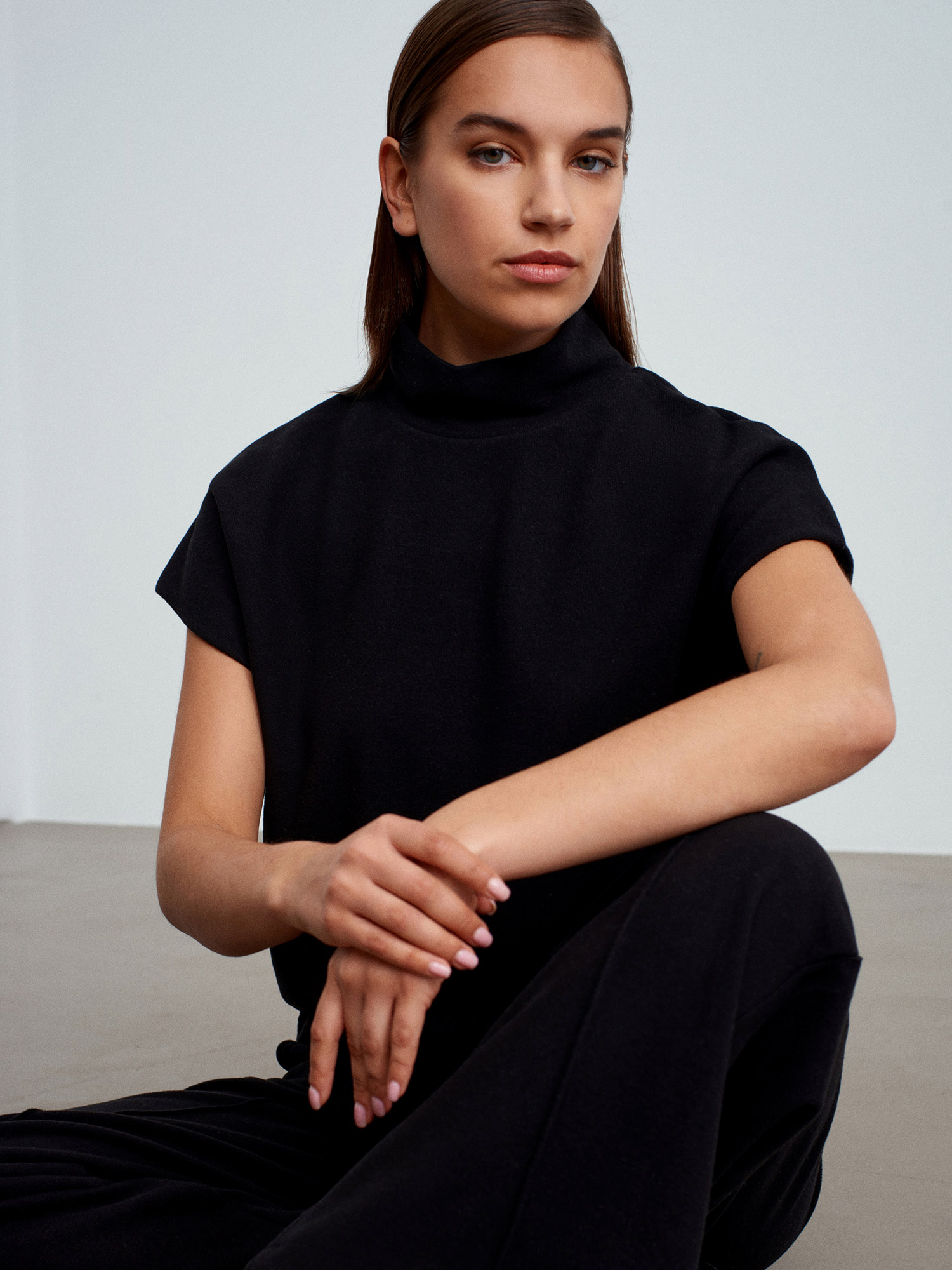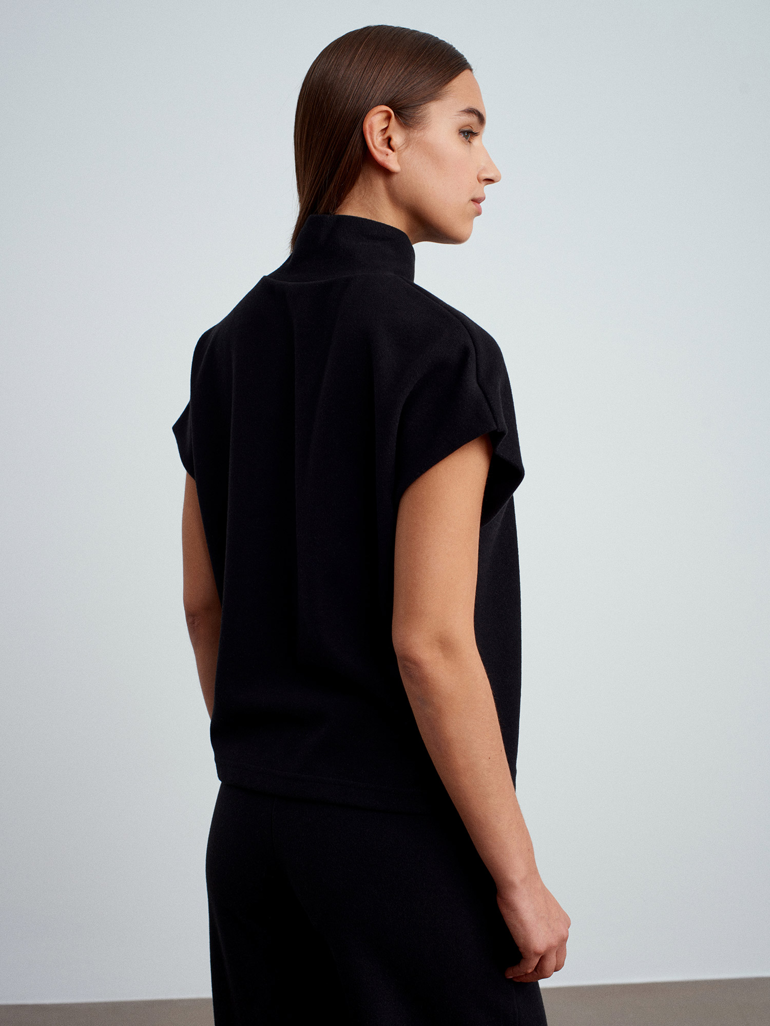 32148 Dik Yaka Örme Top-Siyah